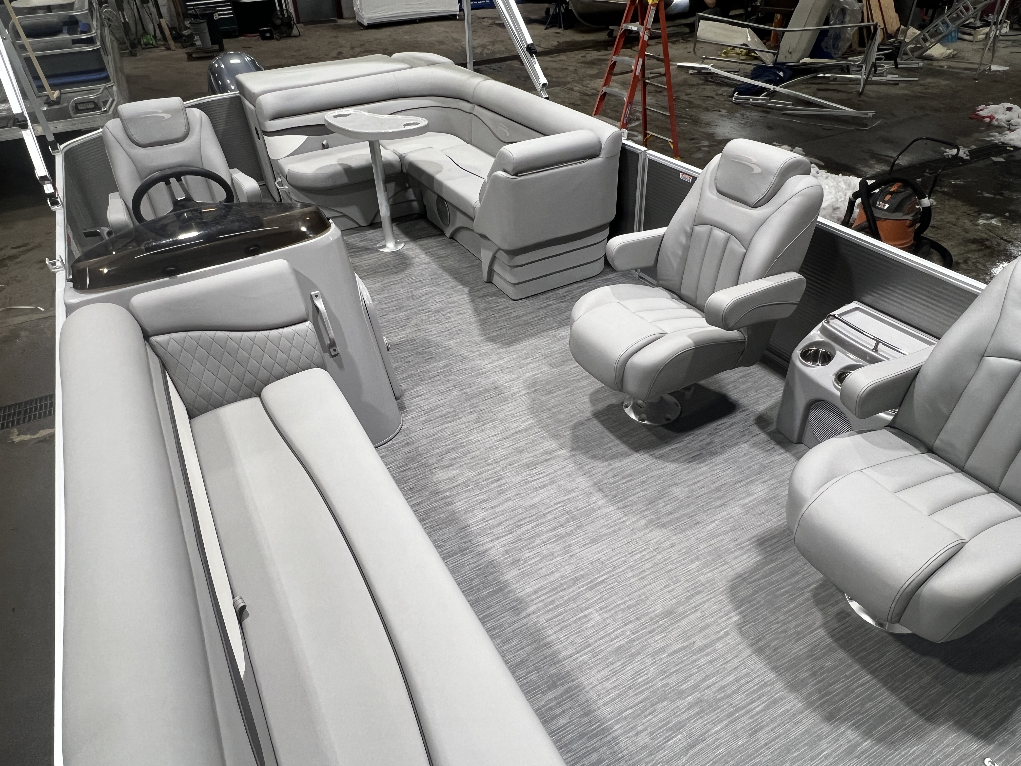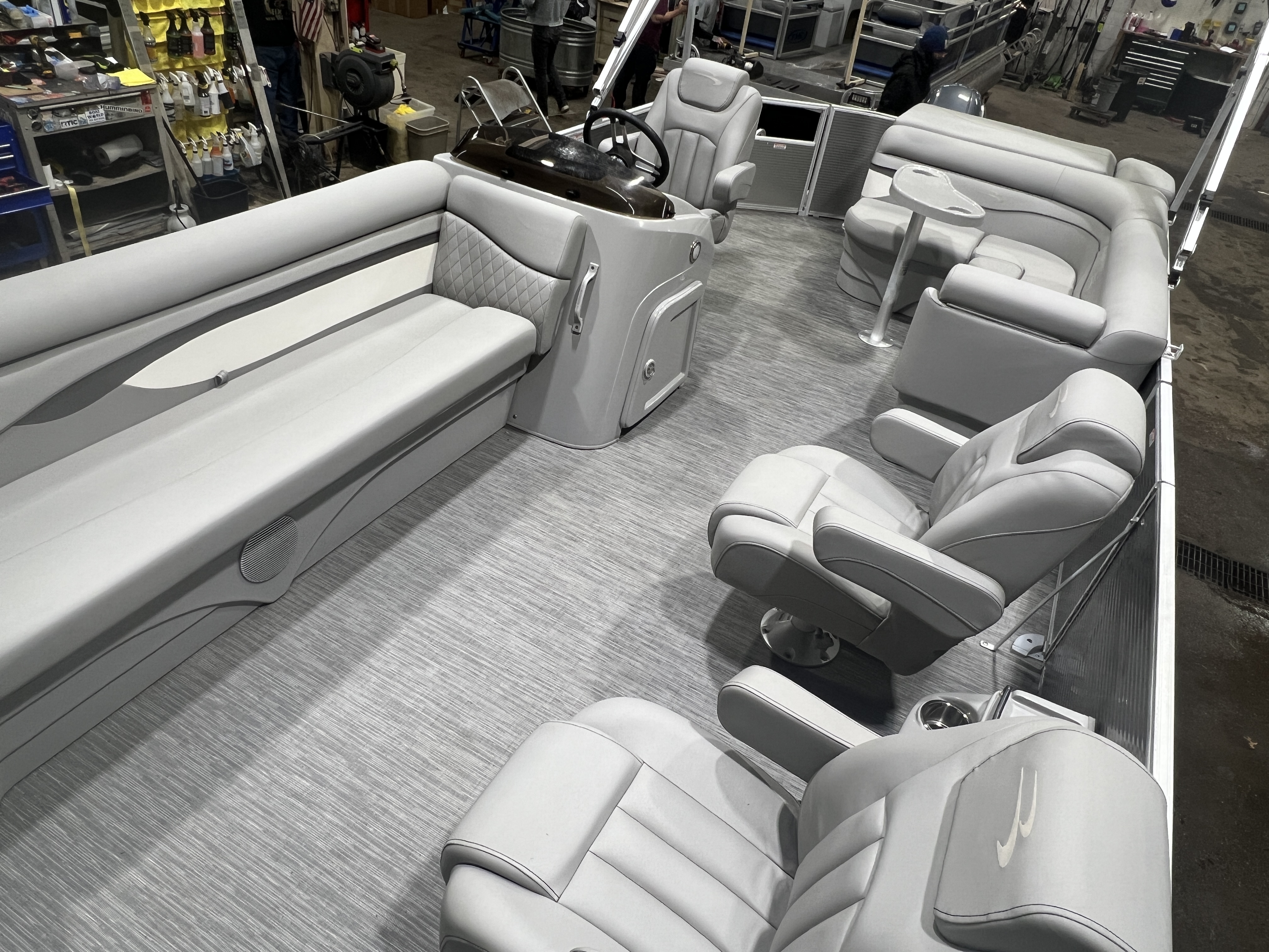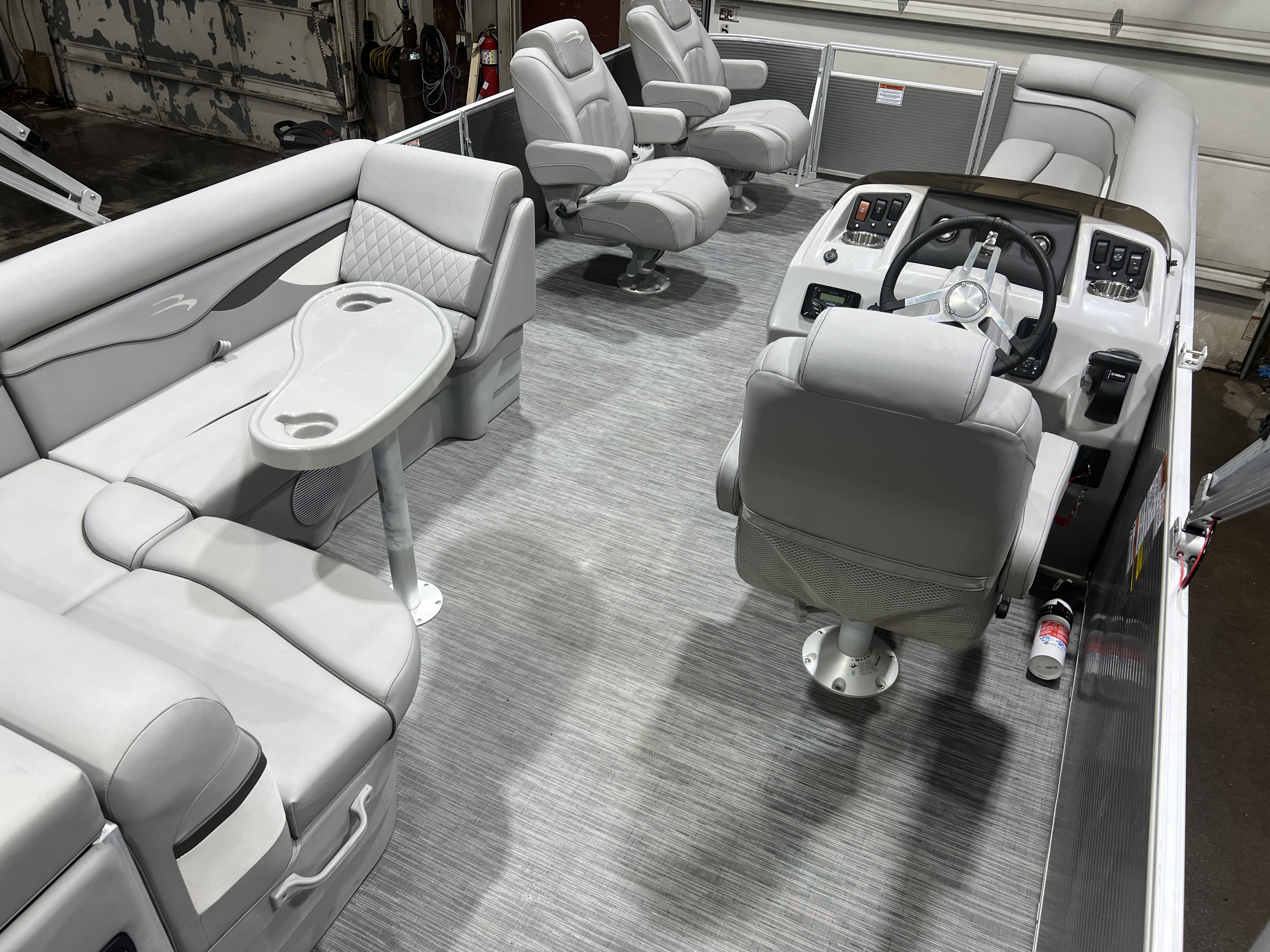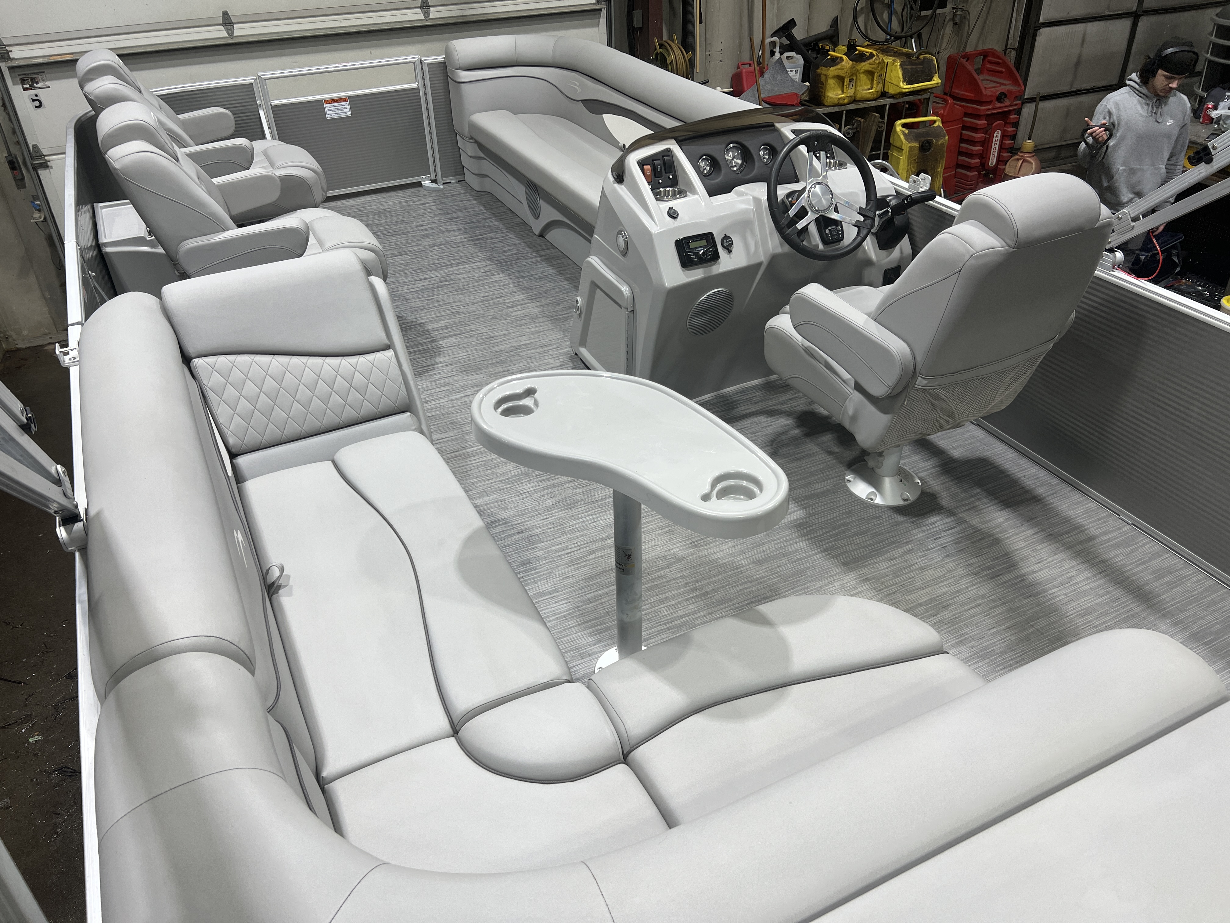 cruise model pontoon with DL front layout features Dual Lounge captain's chairs
