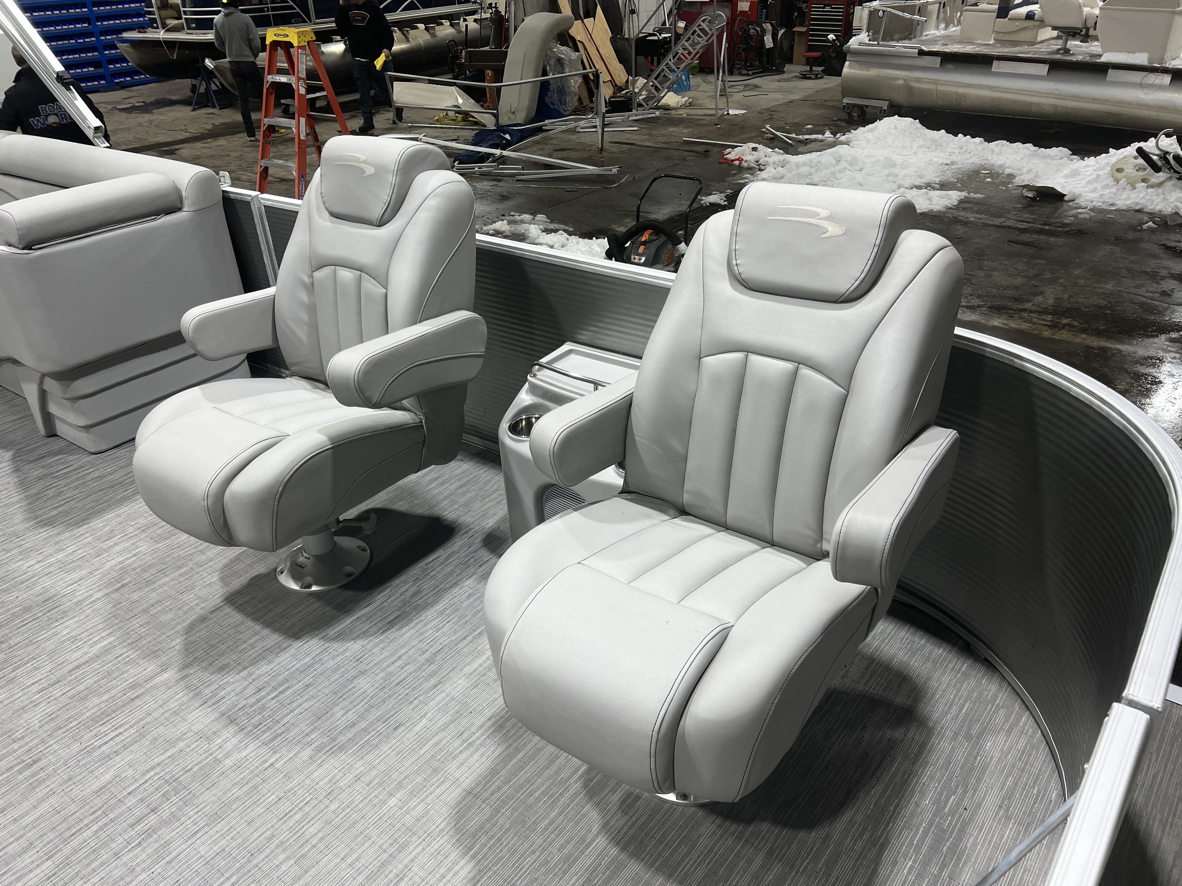 mounted on the helm. The captain's chair is a matching chair to the Dual Lounge