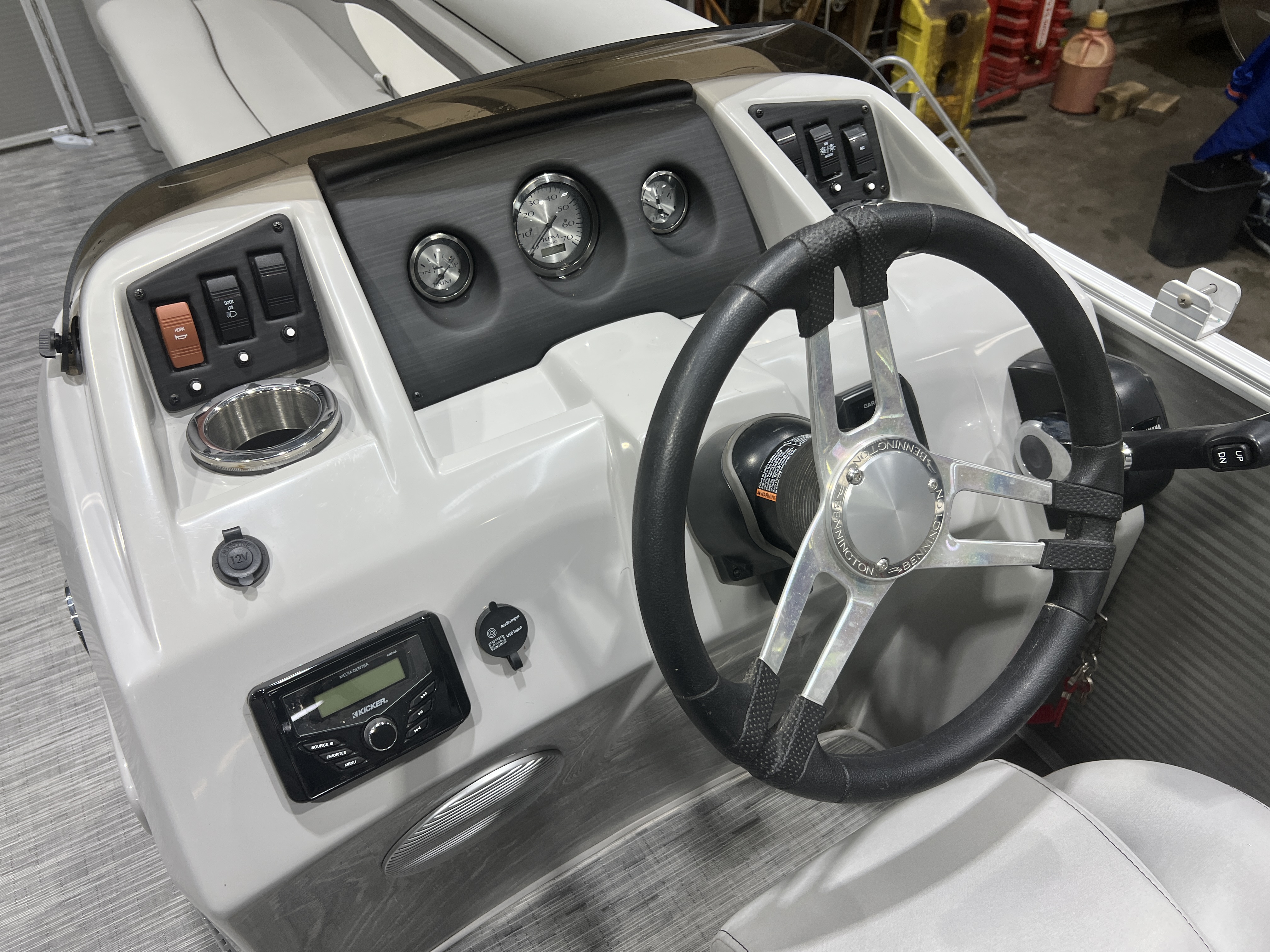 Fuel and Trim gauge. There is a Kicker Bluetooth audio stereo system with
