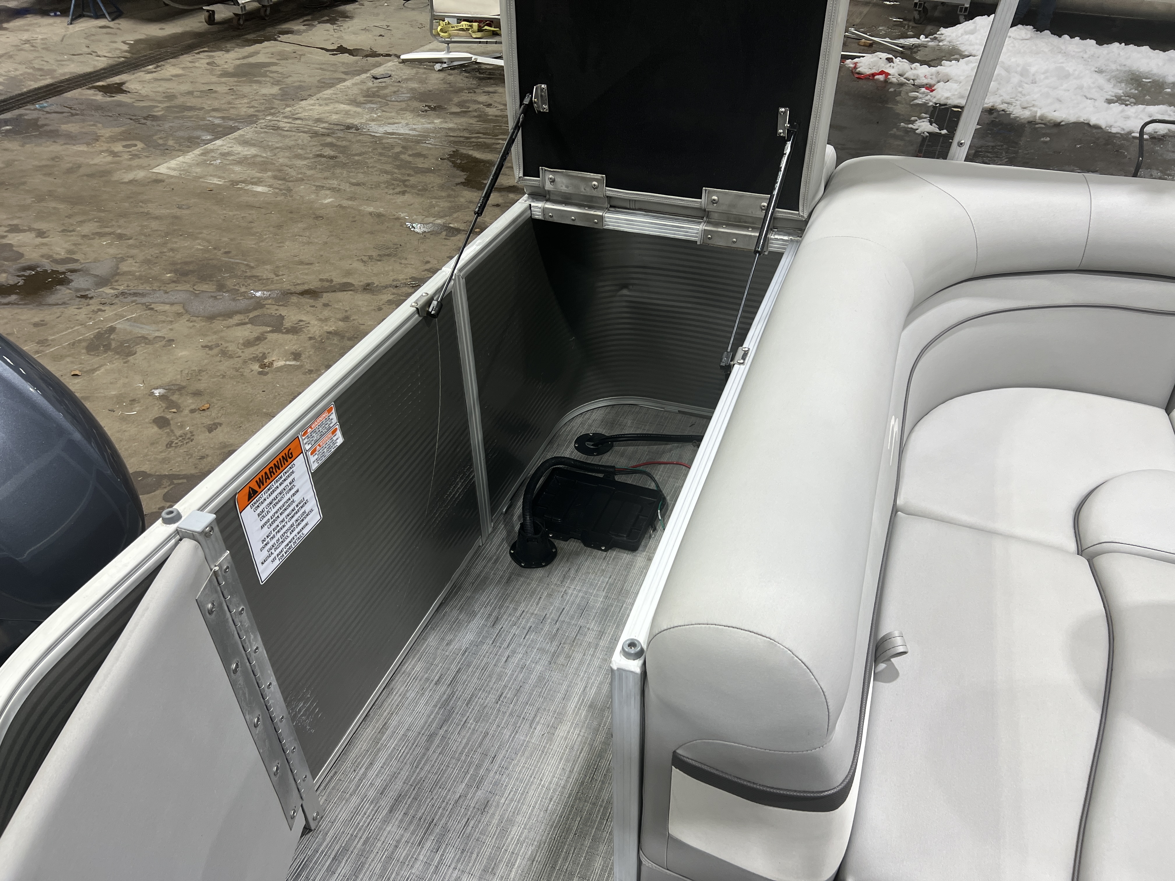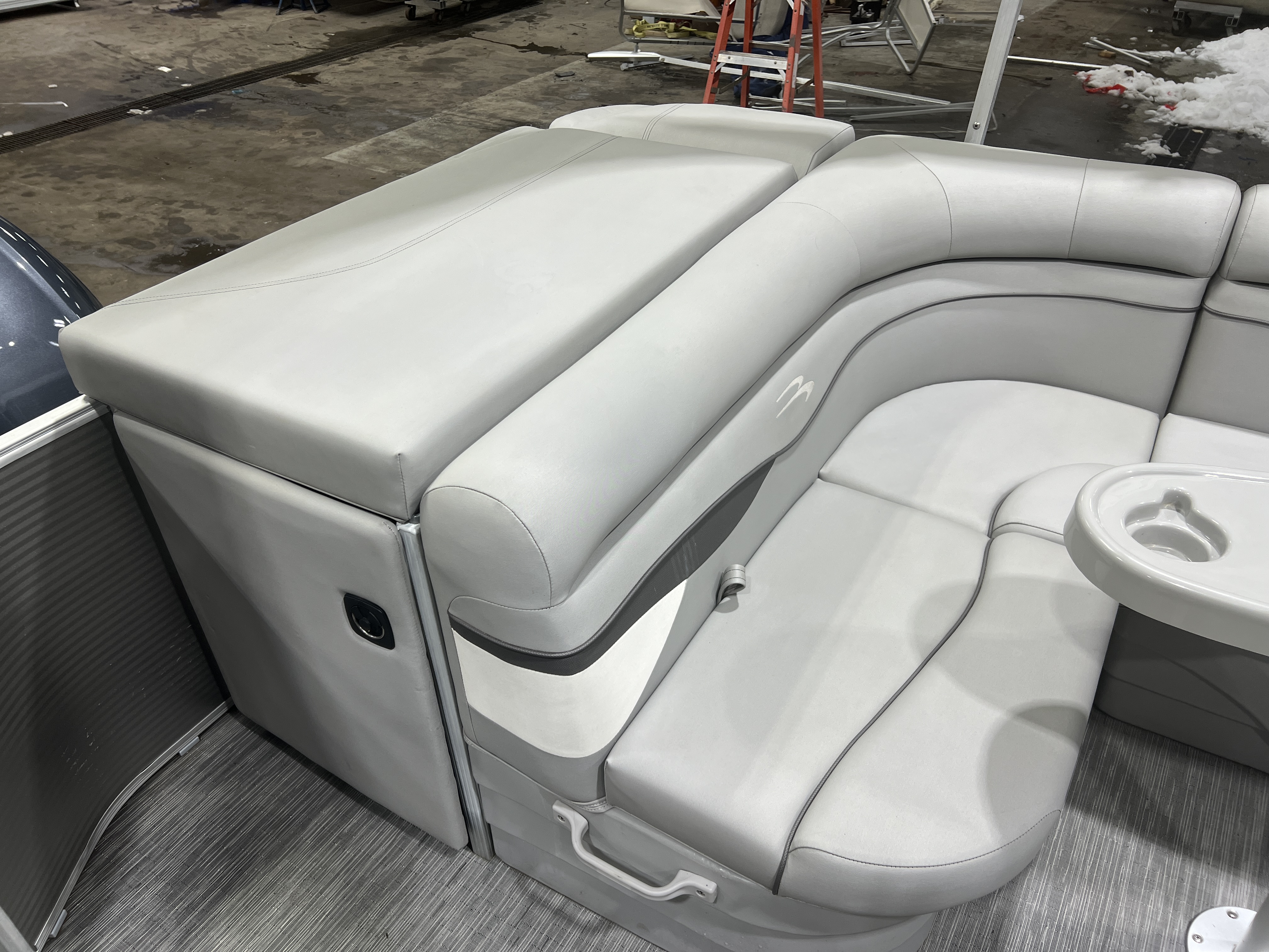 the couch with 2 cup holders. The sundeck has a large storage compartment