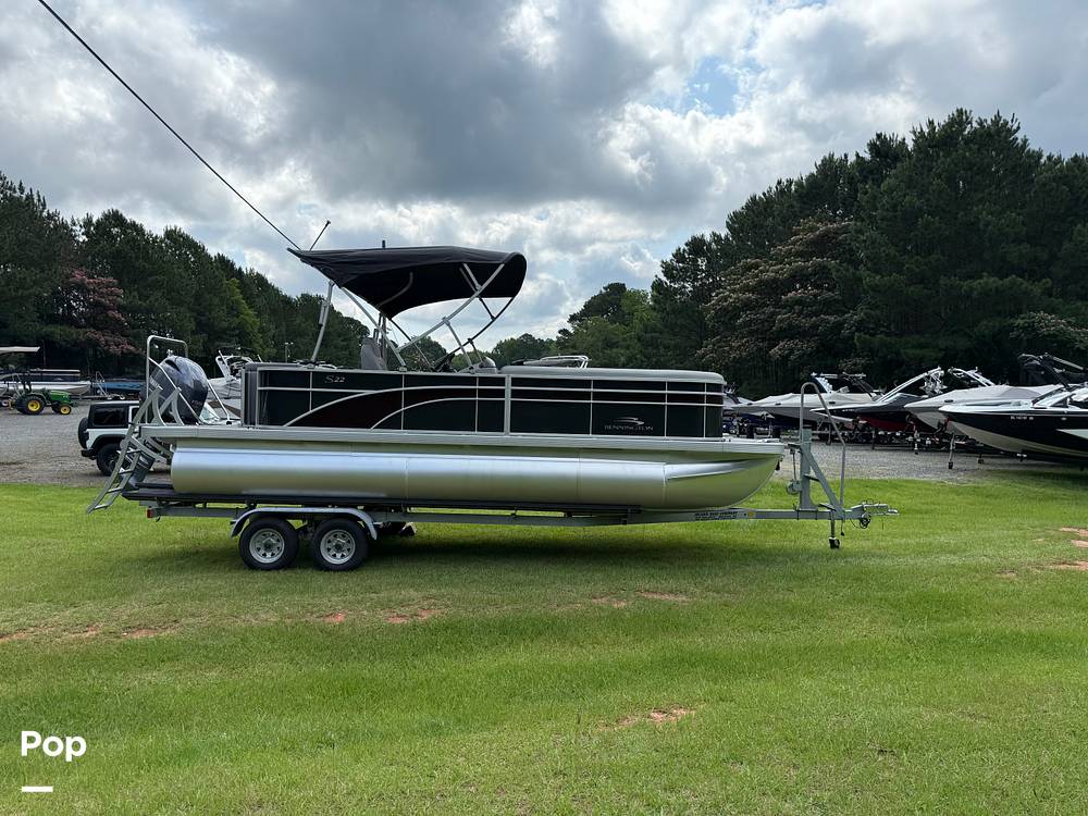 This is a brand new 2023 Bennington 22SL with a new 2022 four-stroke Yamaha 150HP outboard, and a 2023 (new) Road King galvanized trailer.
