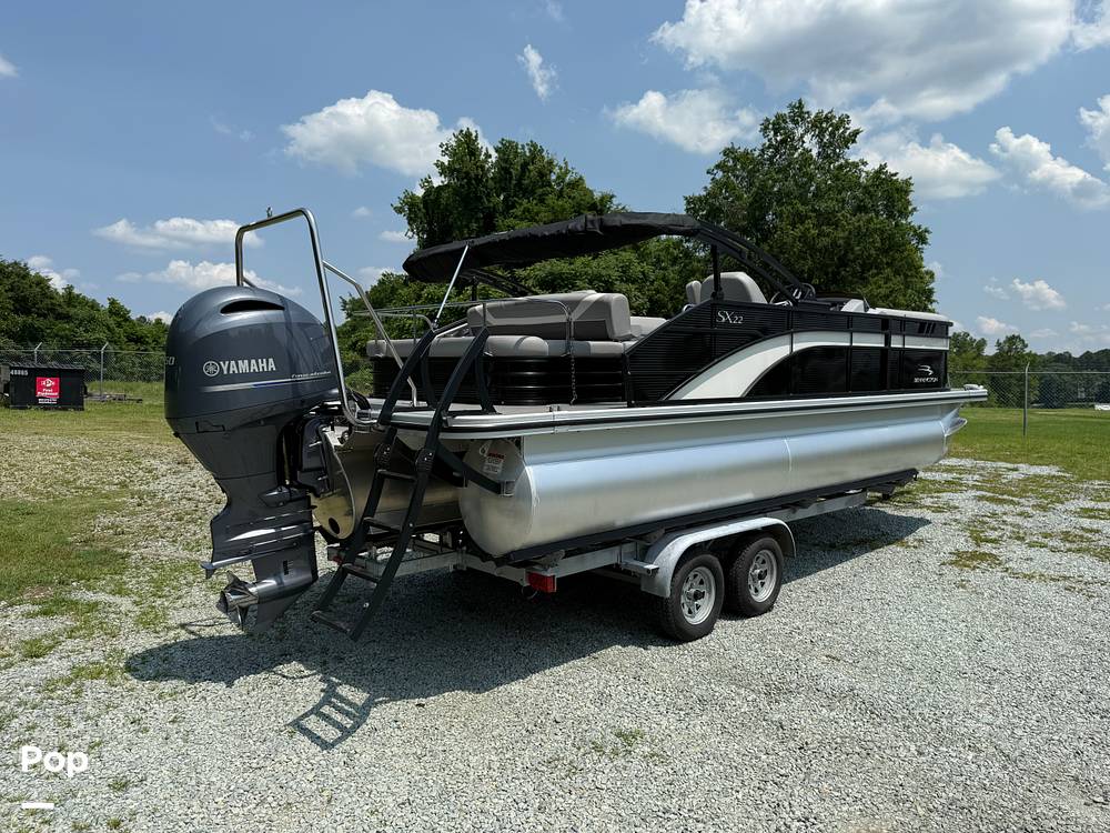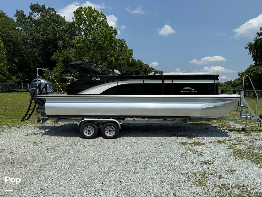 This is a new 2023 Bennington 22SXSB with a new 2022 four-stroke Yamaha 150HP outboard, and a 2023 (new) Road King galvanized trailer.
