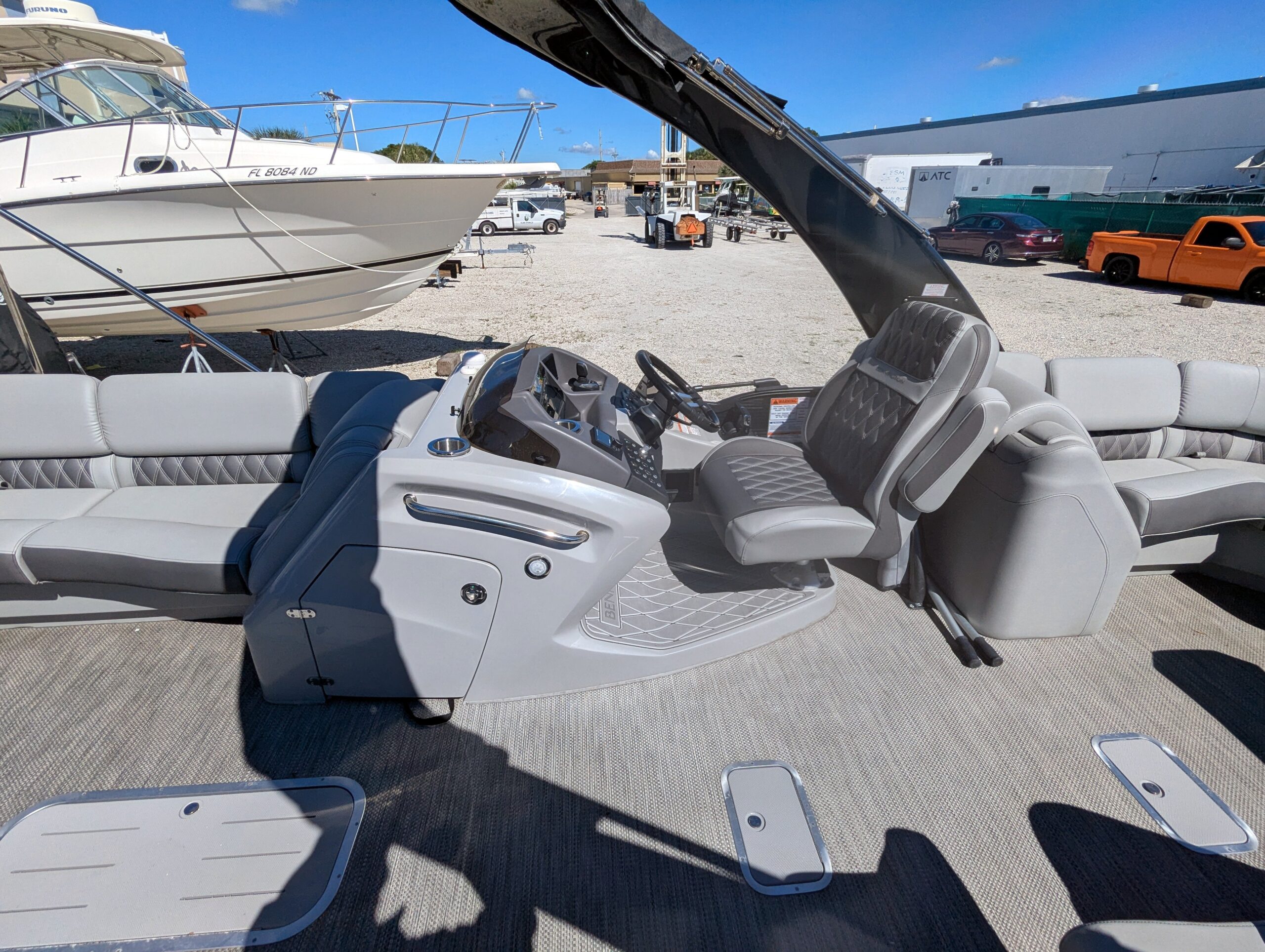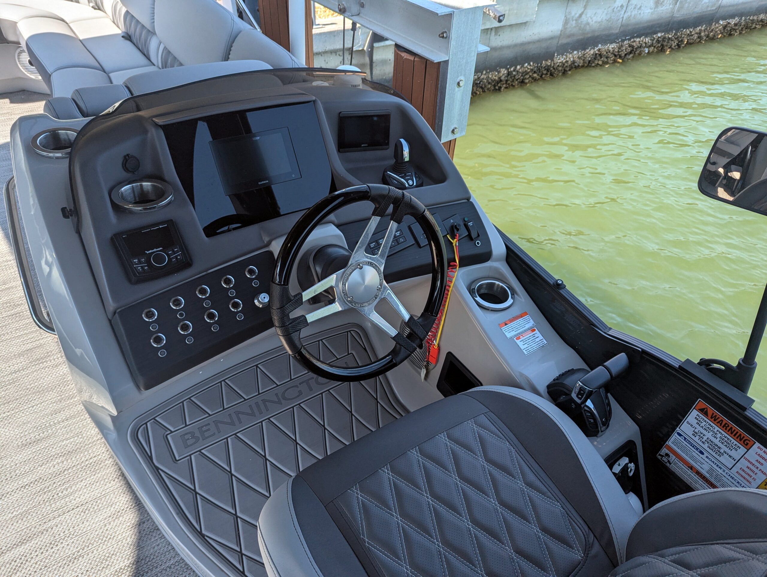 This R-Series model represents the pinnacle of Bennington’s craftsmanship, built on the ESP+ performance package and upgraded with joystick steering for intuitive maneuverability — making docking and tight handling effortless.