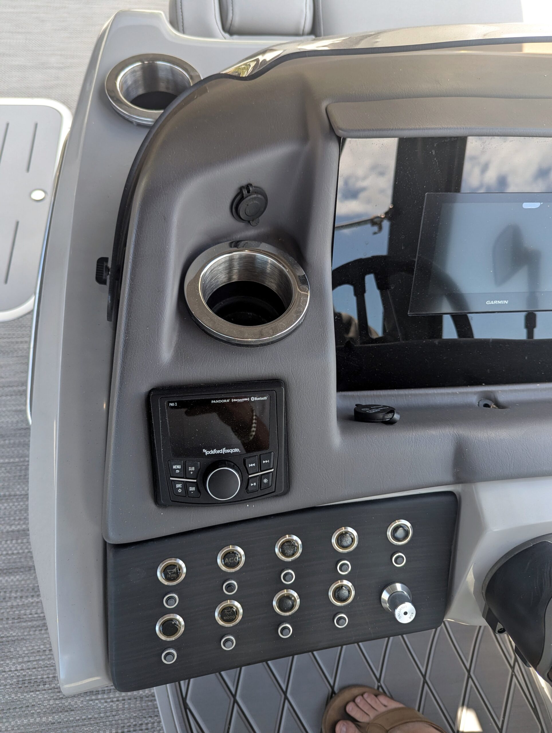 Premium multi-zone marine stereo with Bluetooth®, USB, and AM/FM, driving high-performance speakers for crystal-clear sound throughout.
