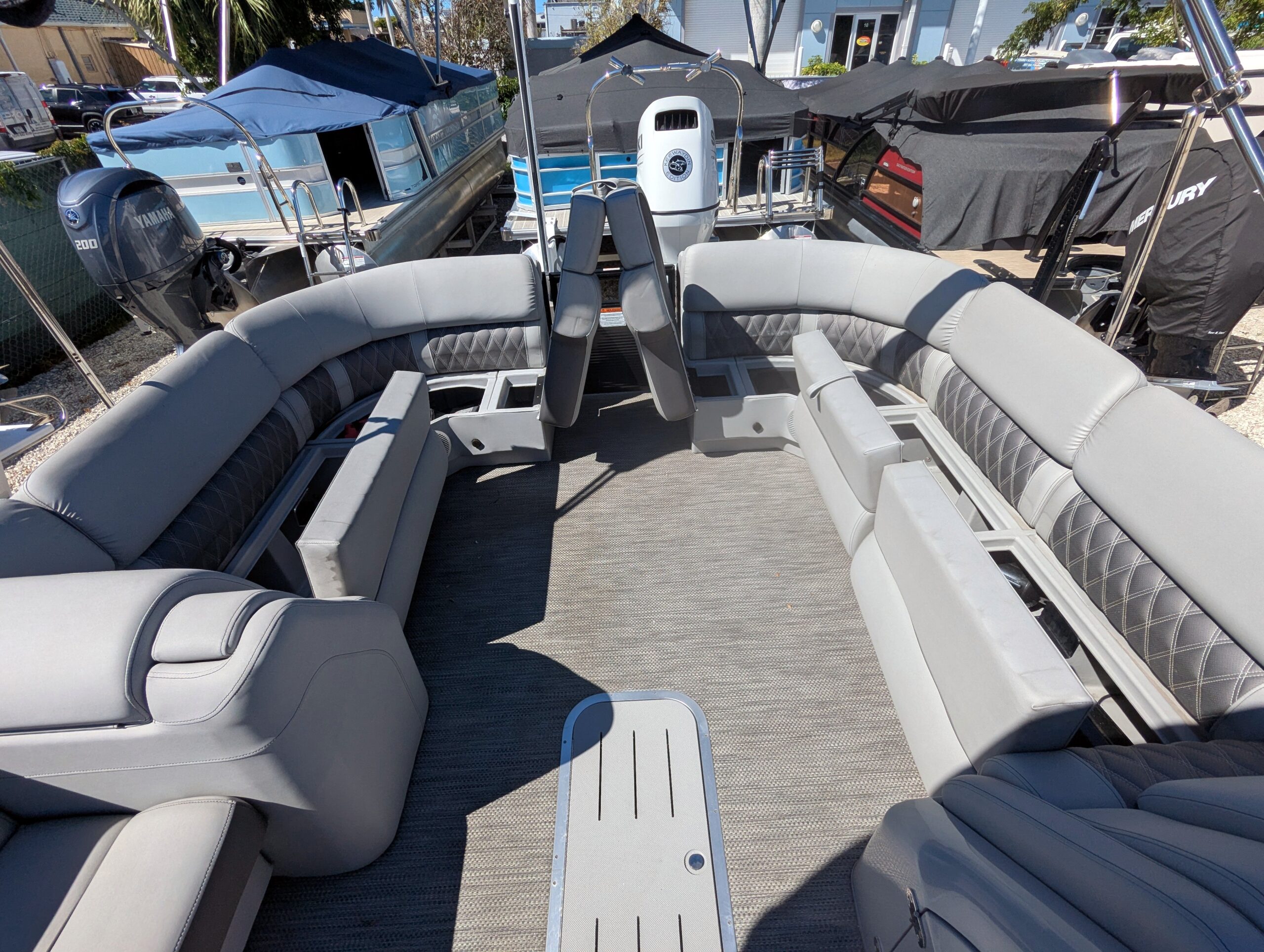 Command the water in style and comfort with this 2023 Bennington RSRAX2, a 27-foot wide-beam luxury tri-toon designed for those who demand the very best. Featuring twin Yamaha 300HP outboards, 10-foot beam, and an elite suite of electronics, this vessel offers an exceptional blend of performance, technology, and luxury.