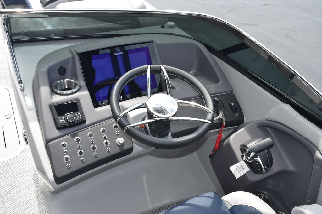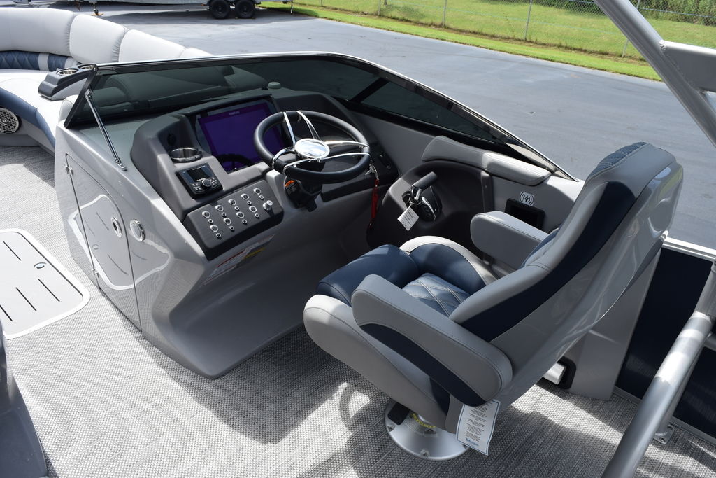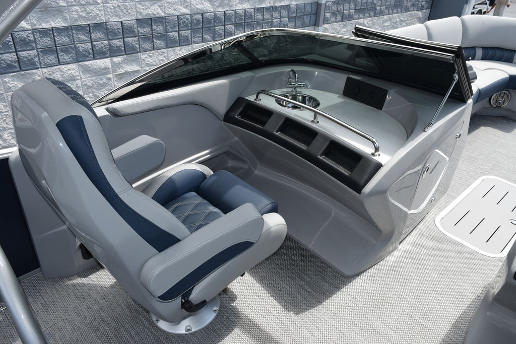 Cut Through the Chill- Don’t let cooler weather or an evening chill cut your boating short. Bennington's sleek low-profile windshields paired with a captain and co-captain dual console design delivers protection, comfort, storage, and optional stainless-steel sink, all with sport-infused style.