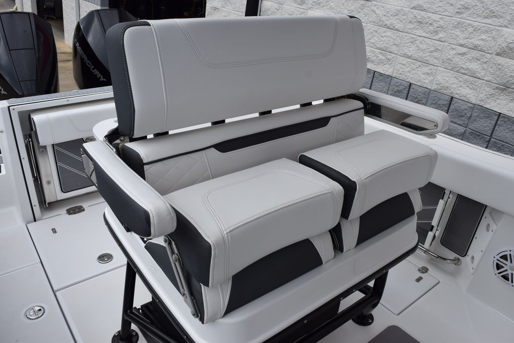 No matter what your destination is, the 252CC will take you there in style and comfort. Designed for everyday performance and fishability, the 252CC’s unique hull design offers a smooth, dry, top performing ride. The 252CC is equipped with a fiberglass hardtop & leaning post with a command center featuring a custom-designed helm seat with flip-up bolster, high protective windscreen, gunnel and hardtop mounted rod holders, baitwell and in-floor macerated fish-boxes with pump-outs, making the 252CC perfect for handling your big offshore fishing adventures. Standard features and amenities such as u-shaped bow seating, fold-away transom seating, and a spacious head compartment help to provide everything you need for the whole family to enjoy their time out on the water.
