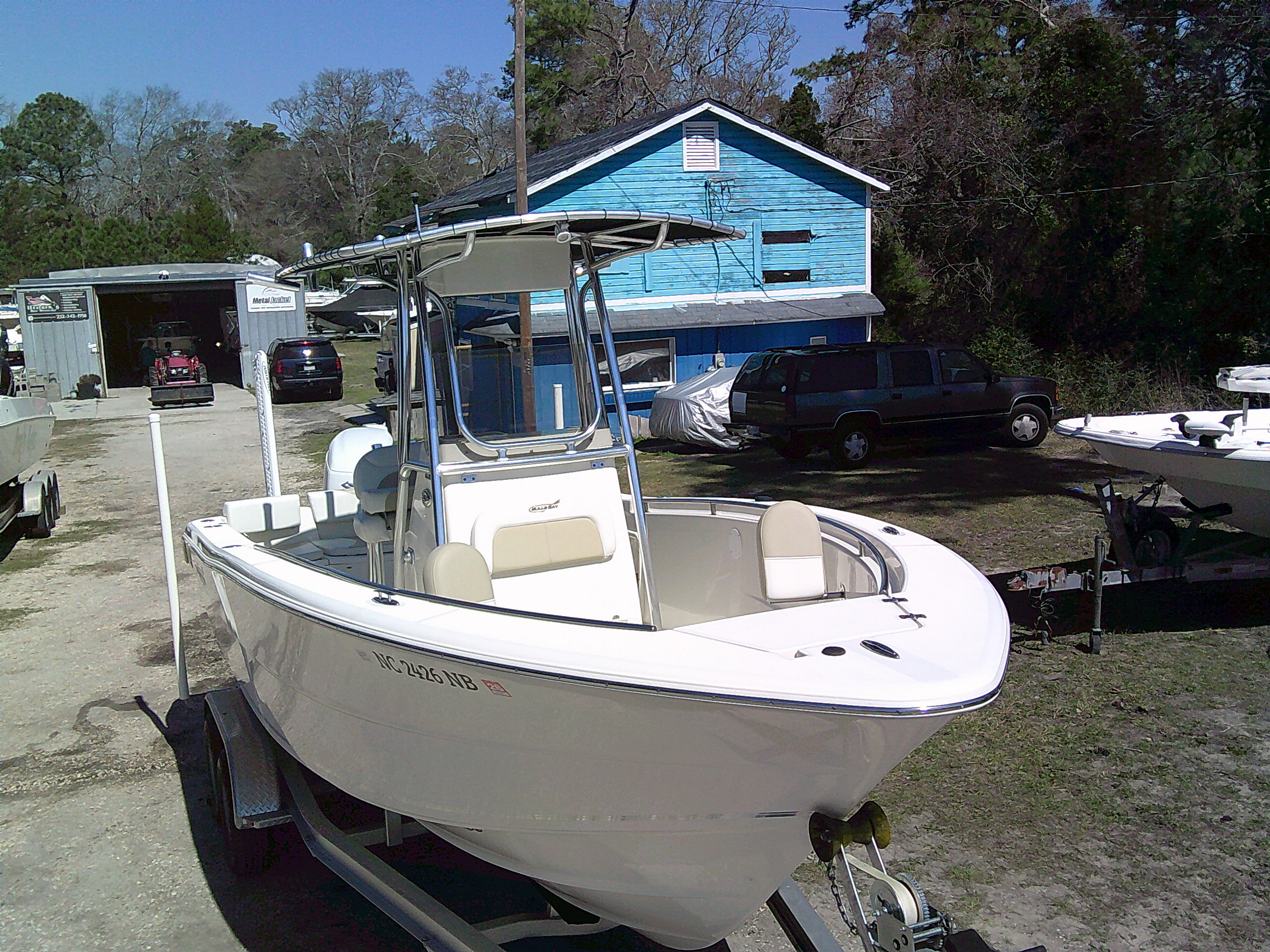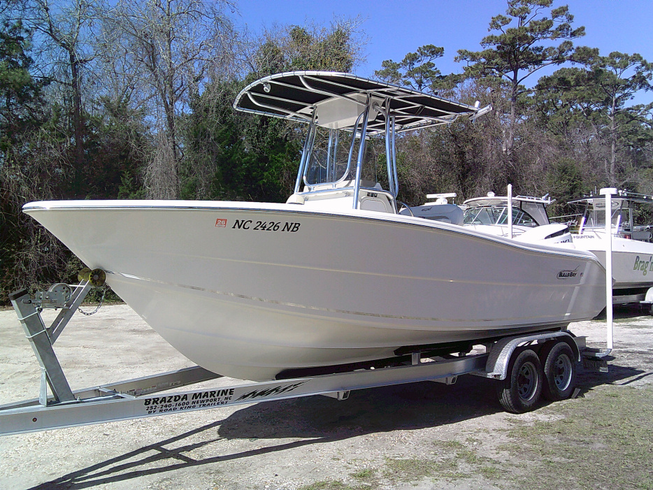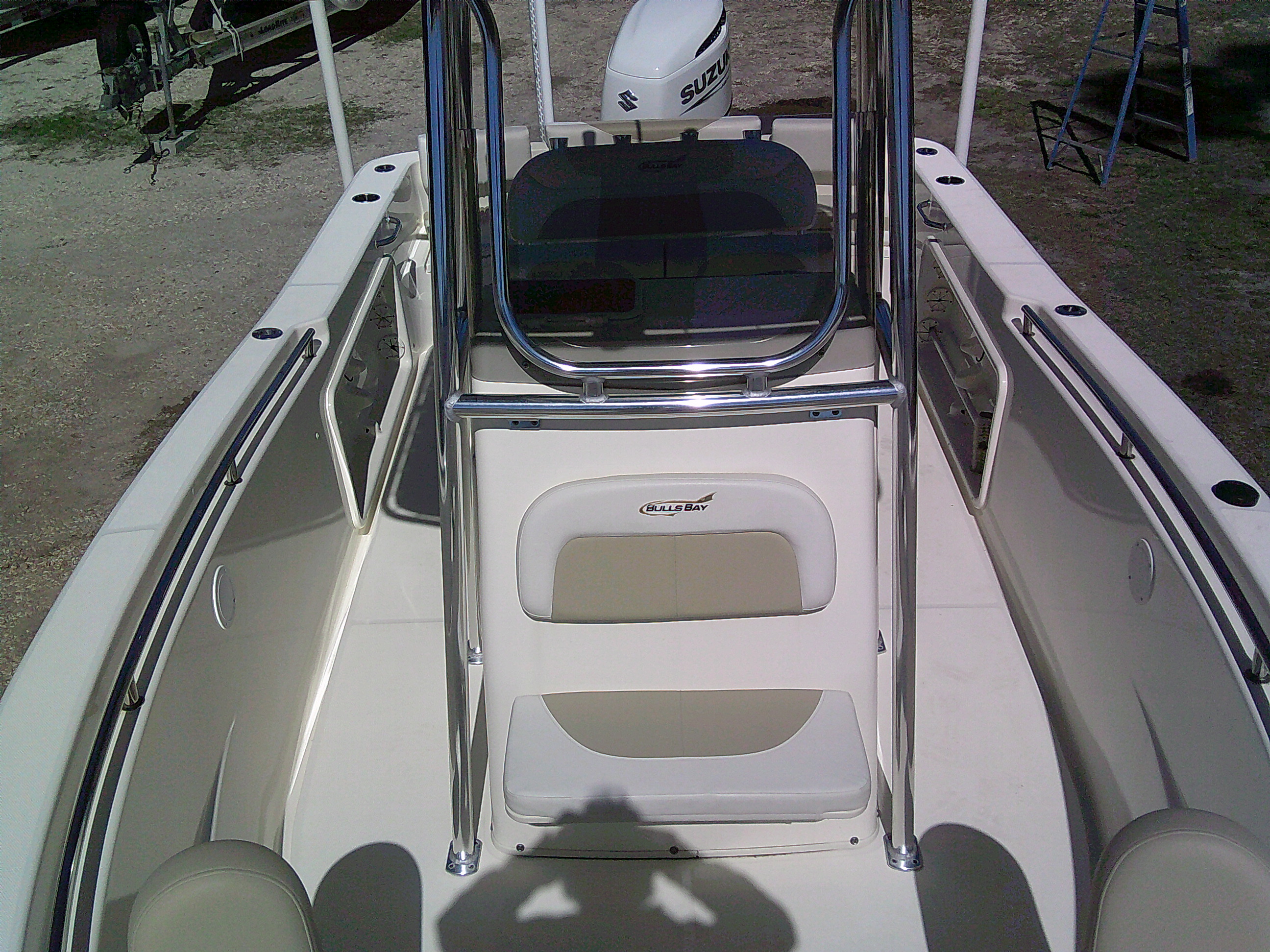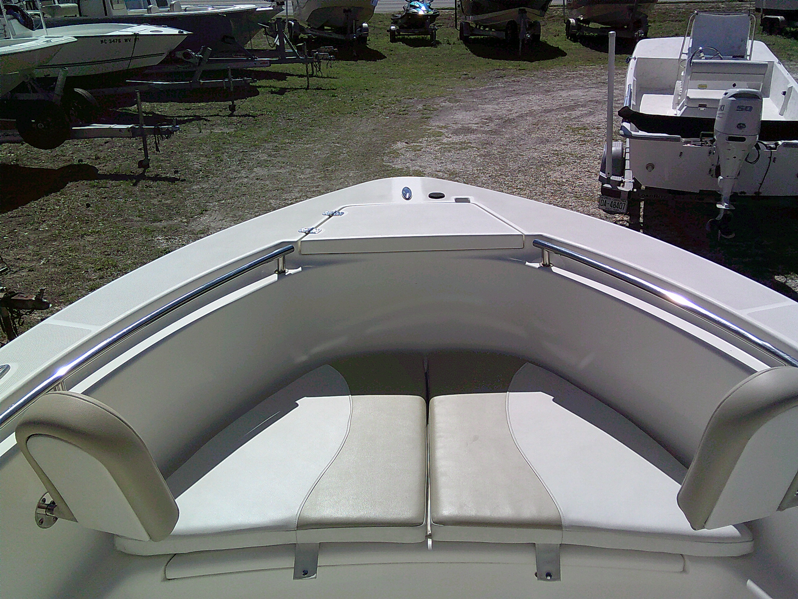 Vessel Info: Bow Deck w/Anchor Locker, Pop-Up Cleats / Cushioned Forward Seating w/Removable Back Rest, Grab Rails, Storage / Large in Deck Storage/Fish Box / Forward of Console Cushioned Folding Seat w/Back Rest / T-Top w/Electrical Box Forward and Aft Spreader Lights, Grab Rails, 6 Rod Holders / Console w/Wind Screen, Grab Rails, Gauges, Controls, Switch Panel, Stainless Steel Helm w/Hydraulic Steering, Console Storage Large enough for a Porty Potty, 2 Cup Holders, Foot Rest / Cushioned Leaning Post w/Folding Bolsters, Back Rest, 4 Rod Holders, Cooler Storage / 4 in Gunner Rod Holders / Under Gunner Rod Storage / Cushioned Aft Seating w/Back Rest, Storage, Live Well, Cup Holders, Grab Rails / Self Bailing Deck / 2 Batteries w/Switch / RAW Water Wash Down / Aft Platform w/Swim Platform, Folding Swim Ladder / Blade Power Pole / Trim Tabs