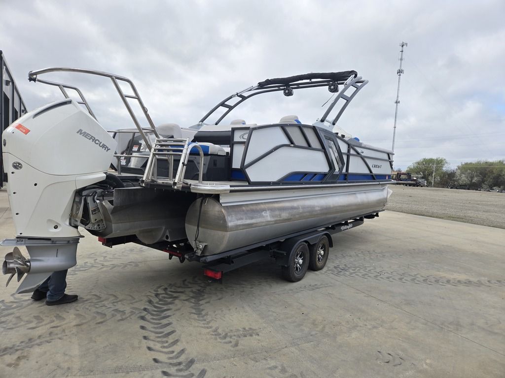 Powered by a Mercury 300 HP engine, this boat delivers excellent performance for cruising, water sports, or spending long days on the lake with family and friends. The Crest RS hull design provides a stable, smooth ride even in rougher water.