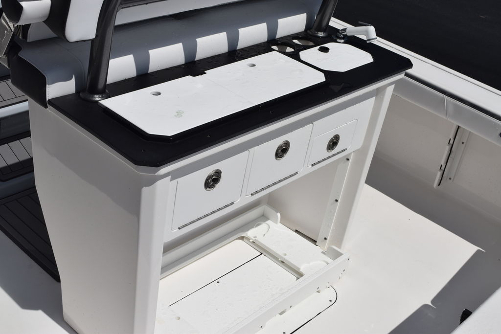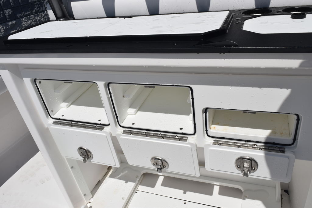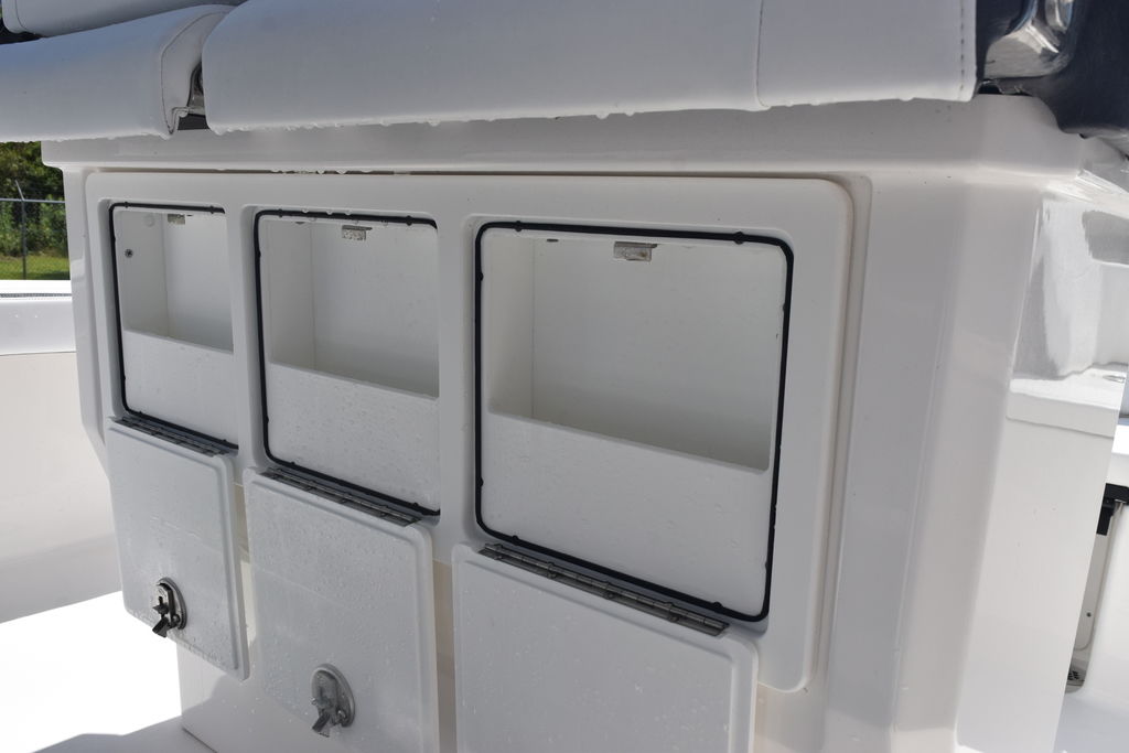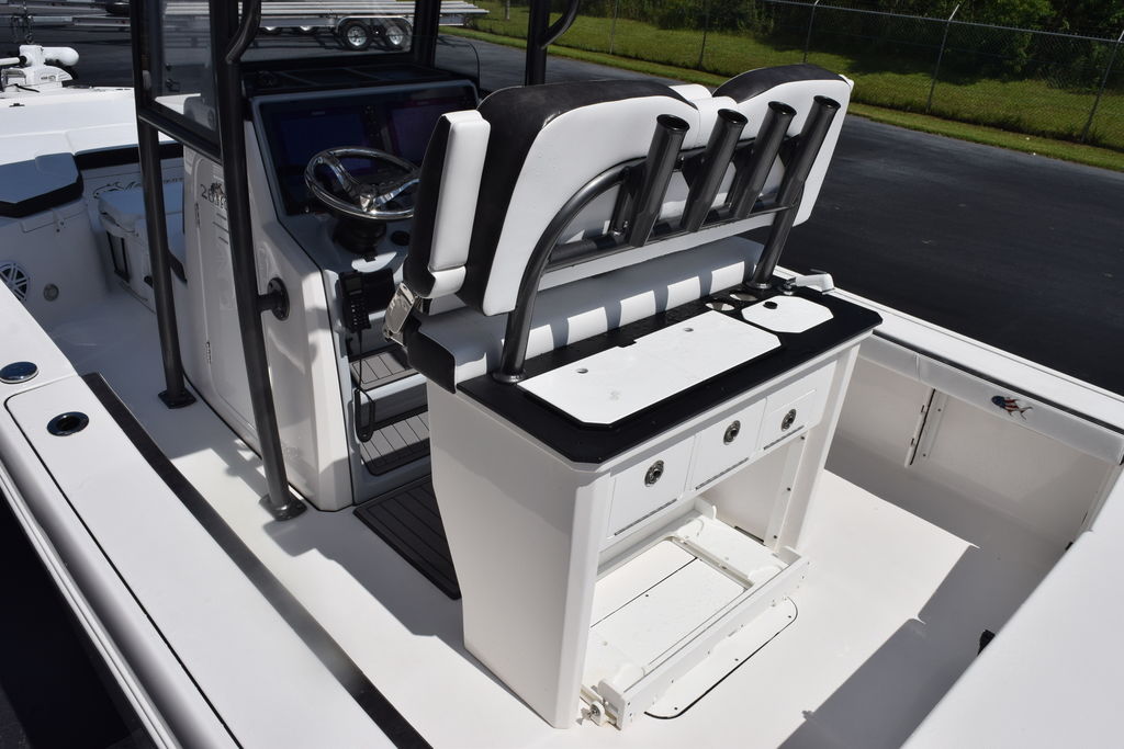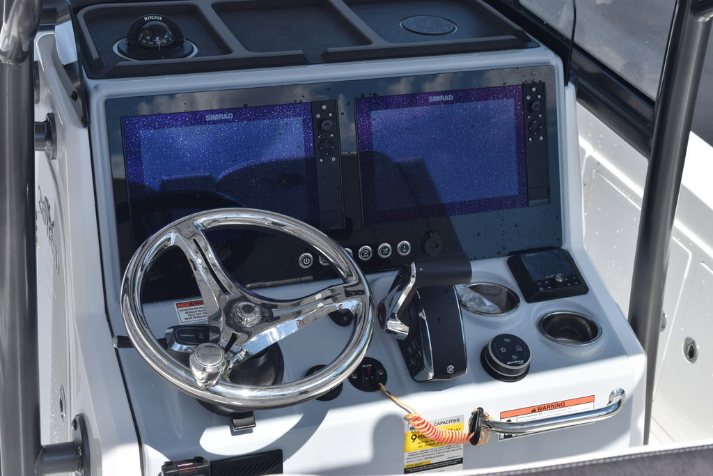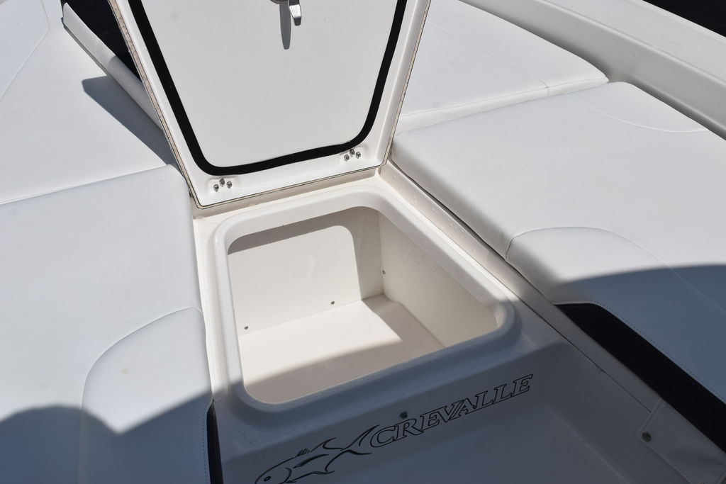 This one-owner 2023 Crevalle 26HCO is ready for immediate delivery. This is one of Crevalle’s most popular builds. The 26HCO is ideal for inshore, coastal, and nearshore waters. This Boat is well equipped to include Sea Star Jackplate, Freshwater System, Minn Kota Rip Tide I pilot 112lbs, Trim Tabs, Dual 12in Simrad Screens, Grey Powder Coating, Fiberglass T-Top, Underside T-Top Color, Compass, Slide Out Cooler, On Board Charger, Freshwater Misting System, Bow Backrests, and Power Pole. The Mercury 350 only has 95.5 hours and Mercury Platinum Warranty through 11/18/2028.