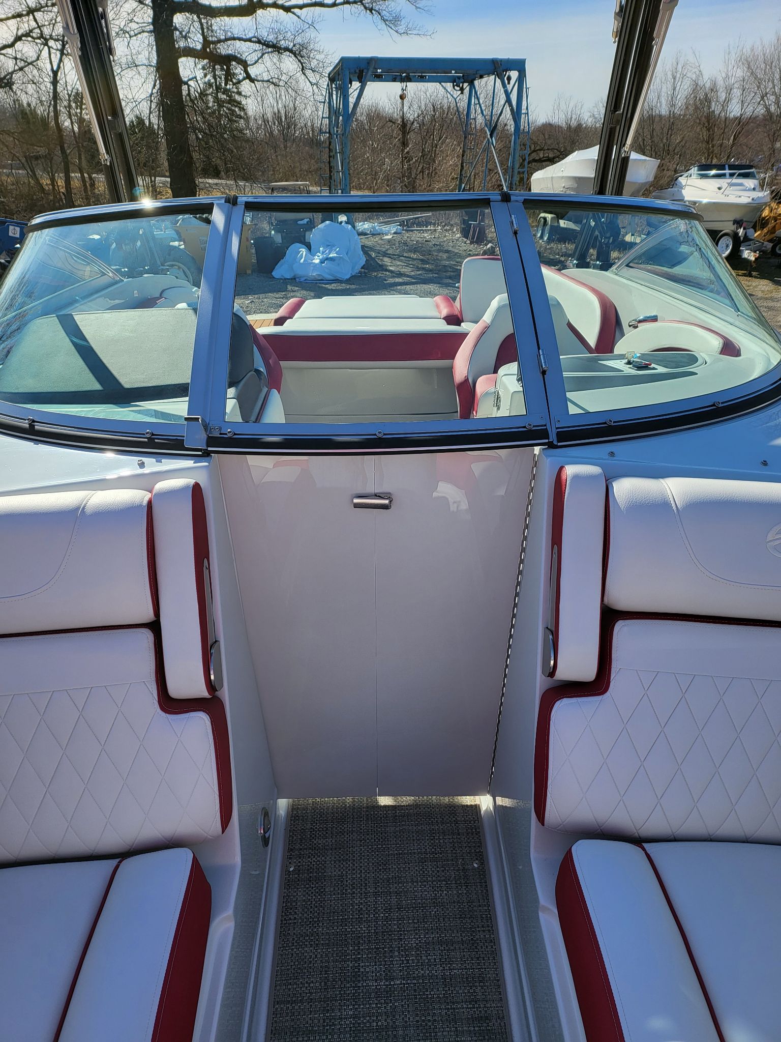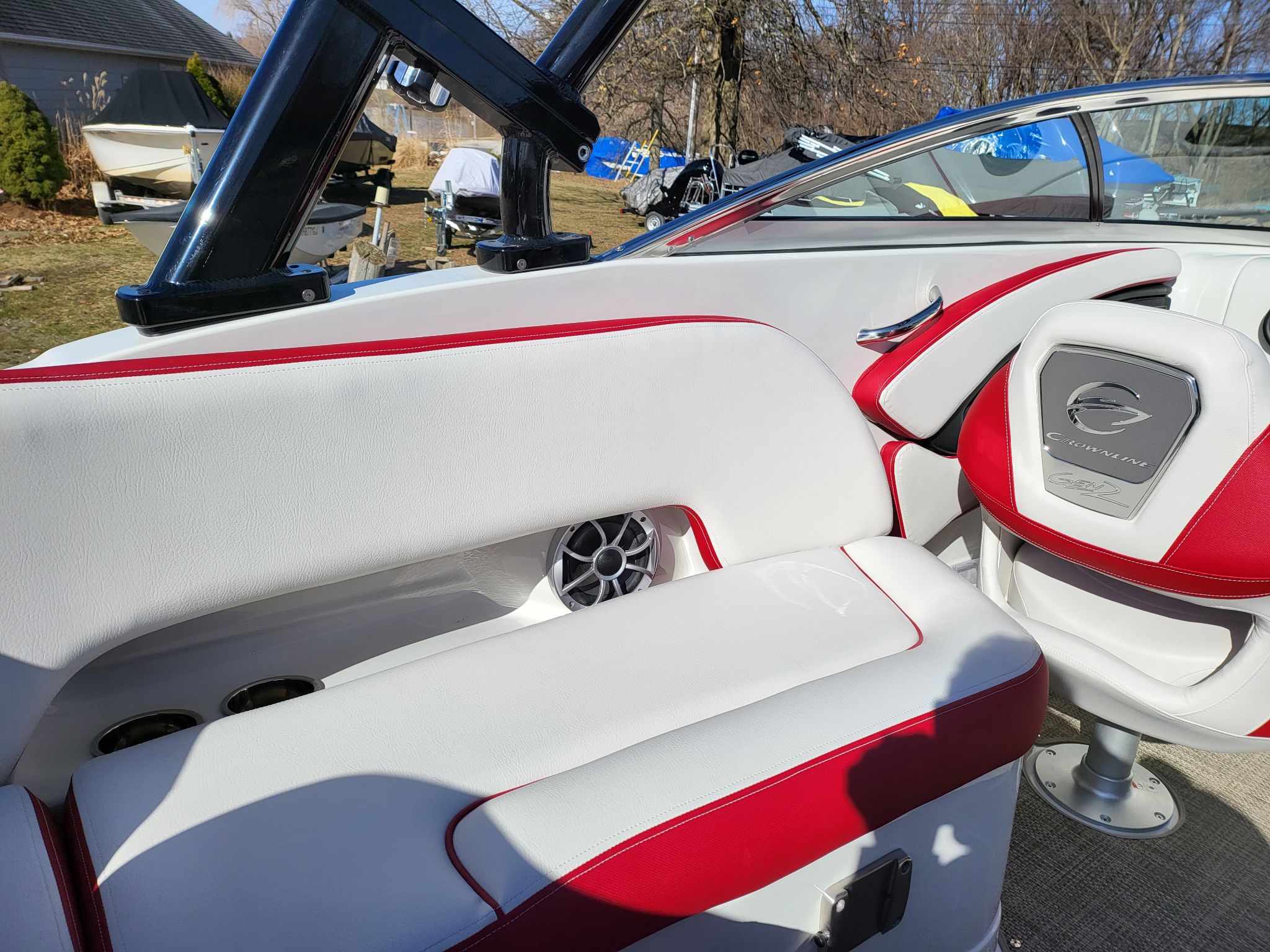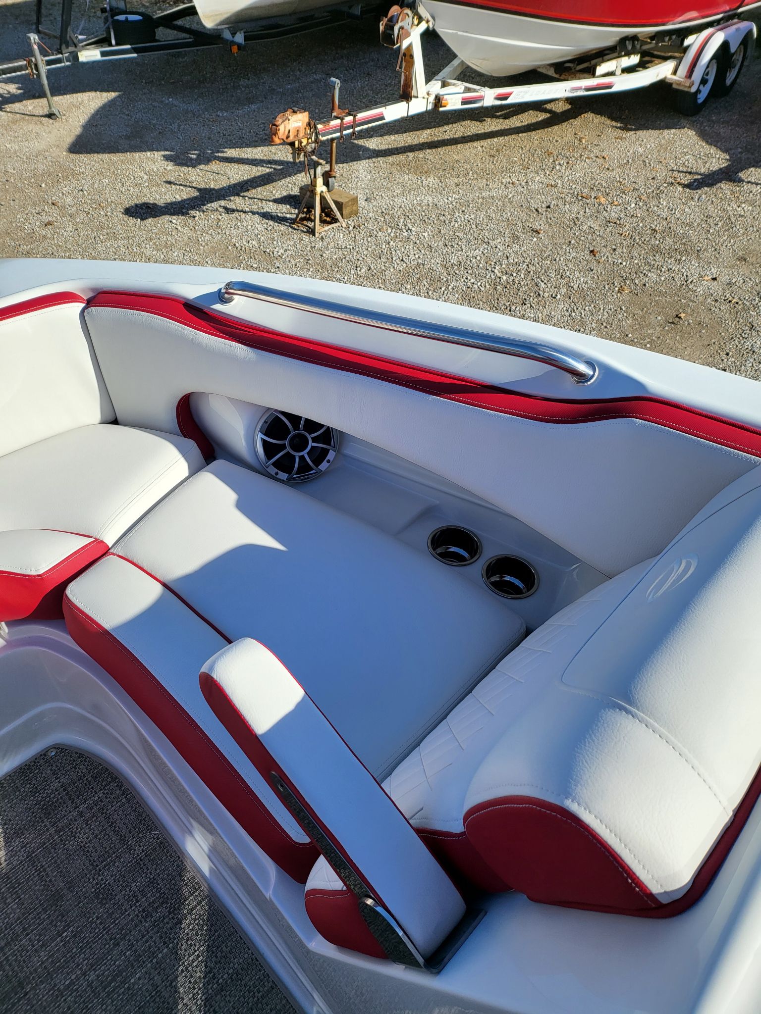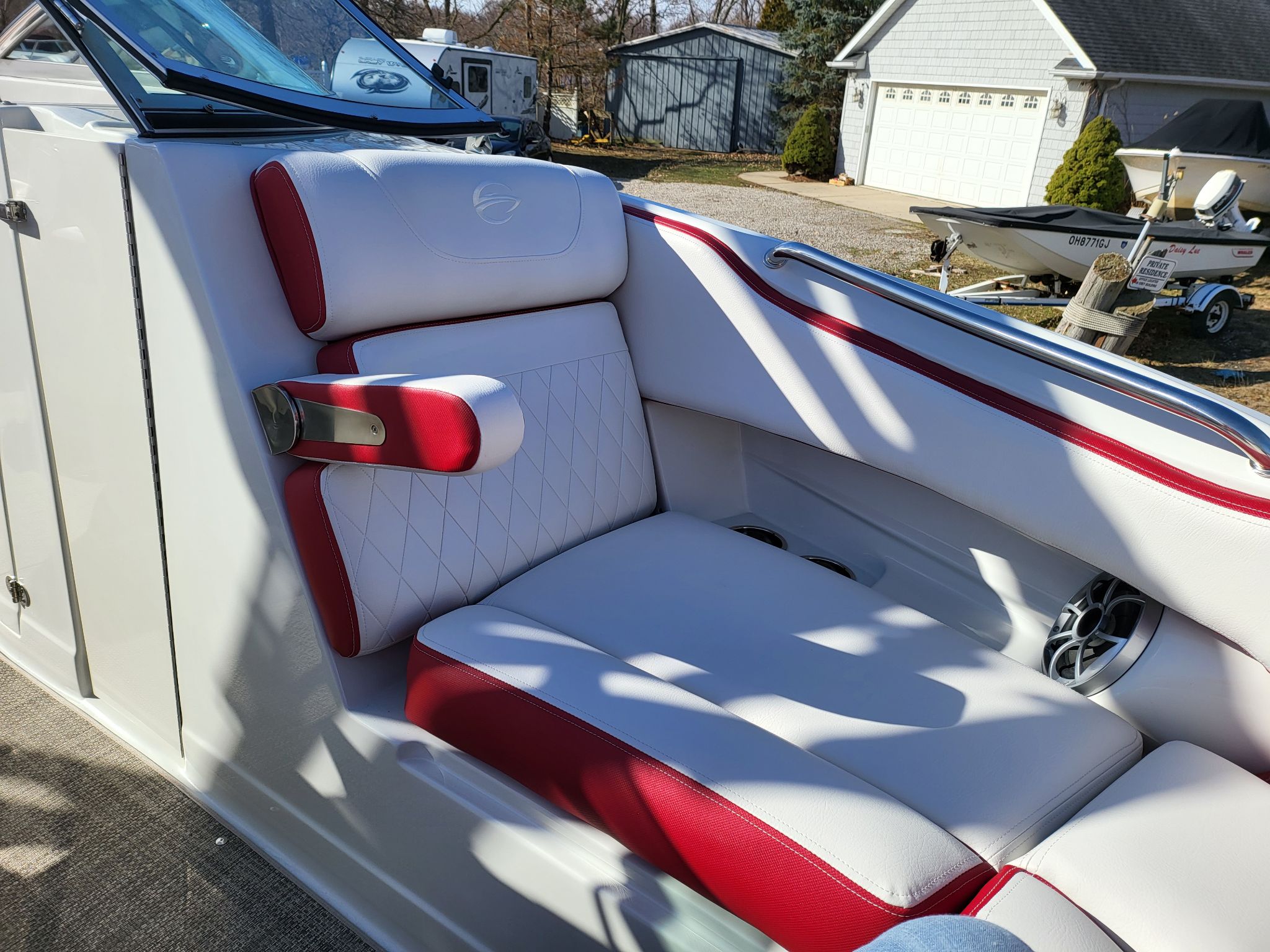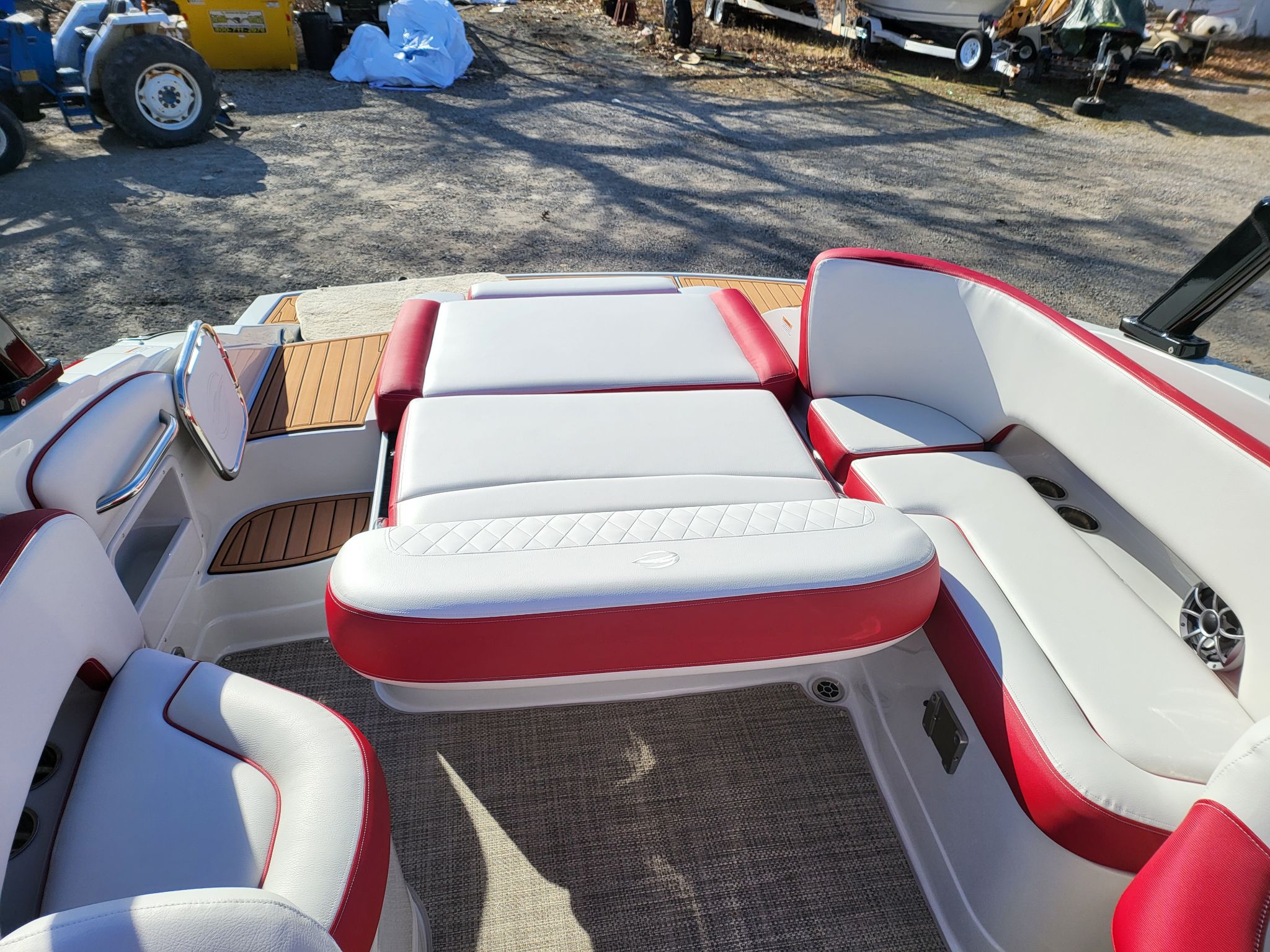 Low Low Pricing! This Crownline includes all the standard Crownline features plus: Pump out head, separate bow and cockpit cover, foldable wakeboard tower, teak look flooring. 35 Gallon Fuel Tank. Includes custom matched Heritage trailer with deluxe wheels and fenders.MERCRUISER 6.2L Bravo III (300HP)