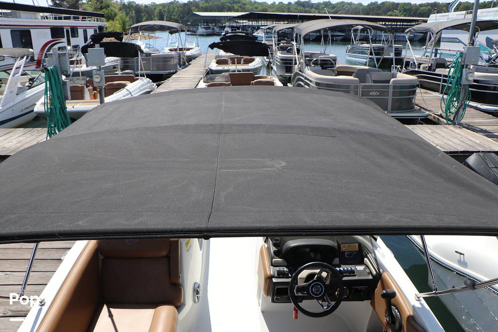 Roomy layout! There is plenty of room for the whole crew. There is lots of comfortable seating and storage, and a sizable bimini top to shade from the elements. The interior of this boat is roomy and very comfortable, thanks to the generous amount of cushion and the premium upholstery and materials used by Crownline.