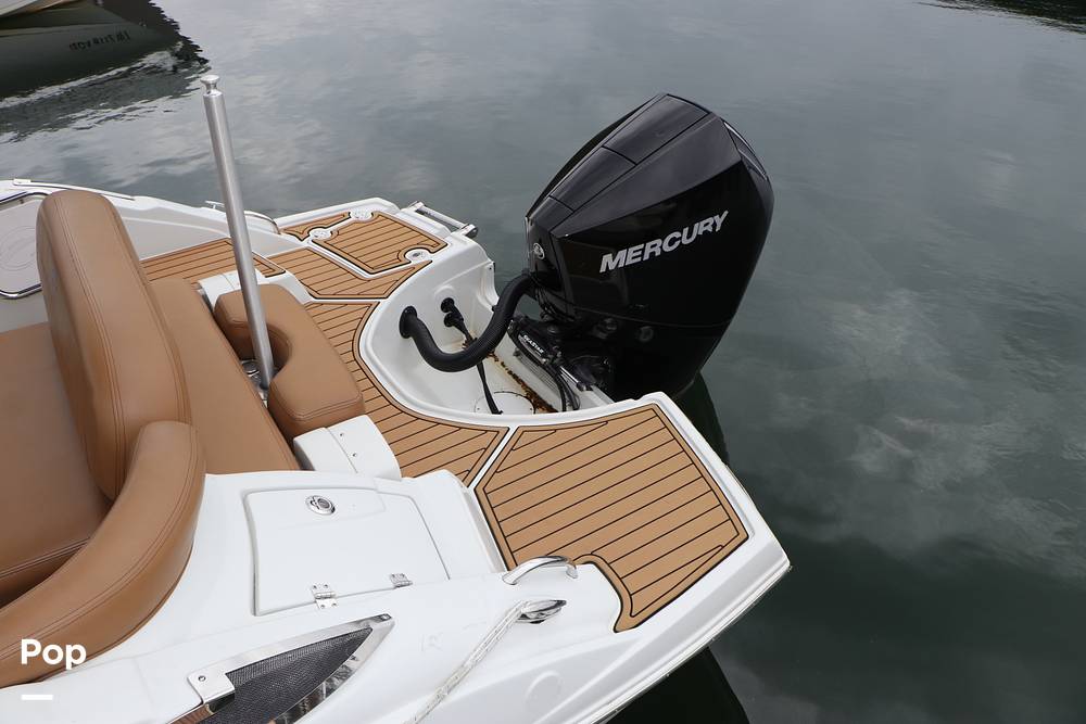 In the rear, you will find a spacious adjustable aft sun pad for hanging out on the water. Easy water access is provided via a large integral aft swim platform with a sea-deck mat and a telescoping stainless steel swim ladder.