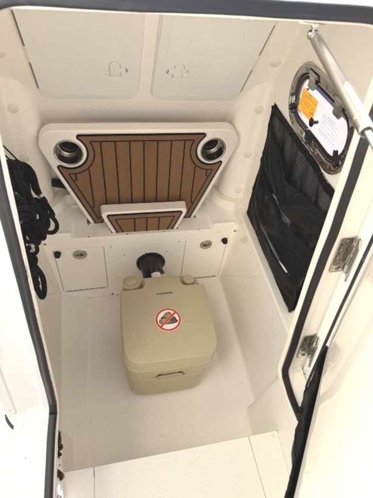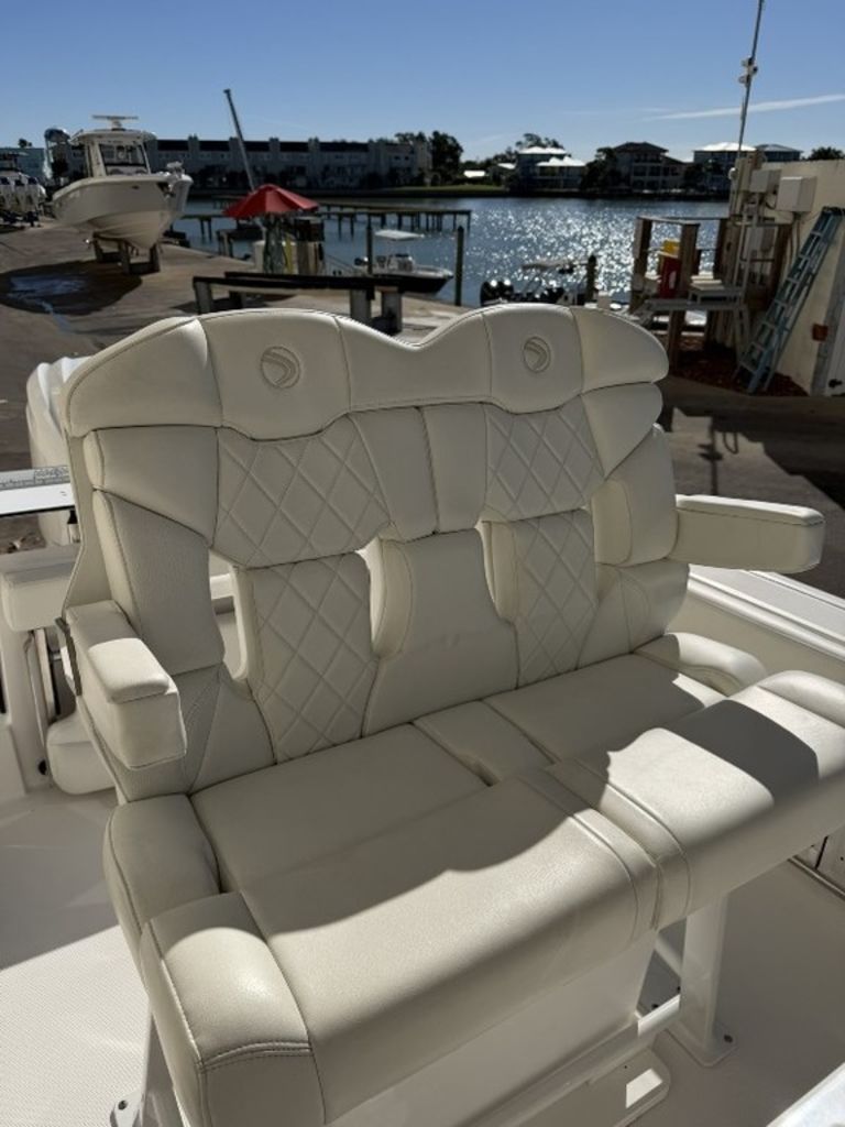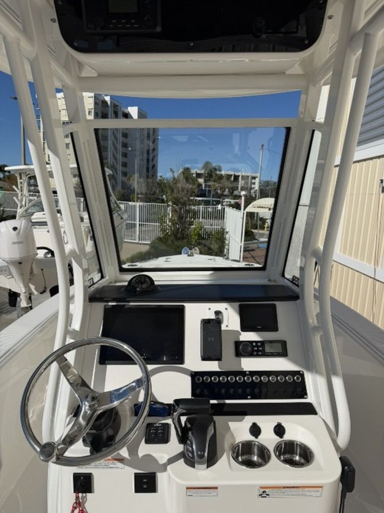Garmin 8612 MFD, GXM54 Sirius/XM/Weather, Curtain enclosures and console and leaning post covers, portable head with dockside pumpout, Windlass, White awlgrip painted engine, DES and Helm Master EX Digital Controls.
