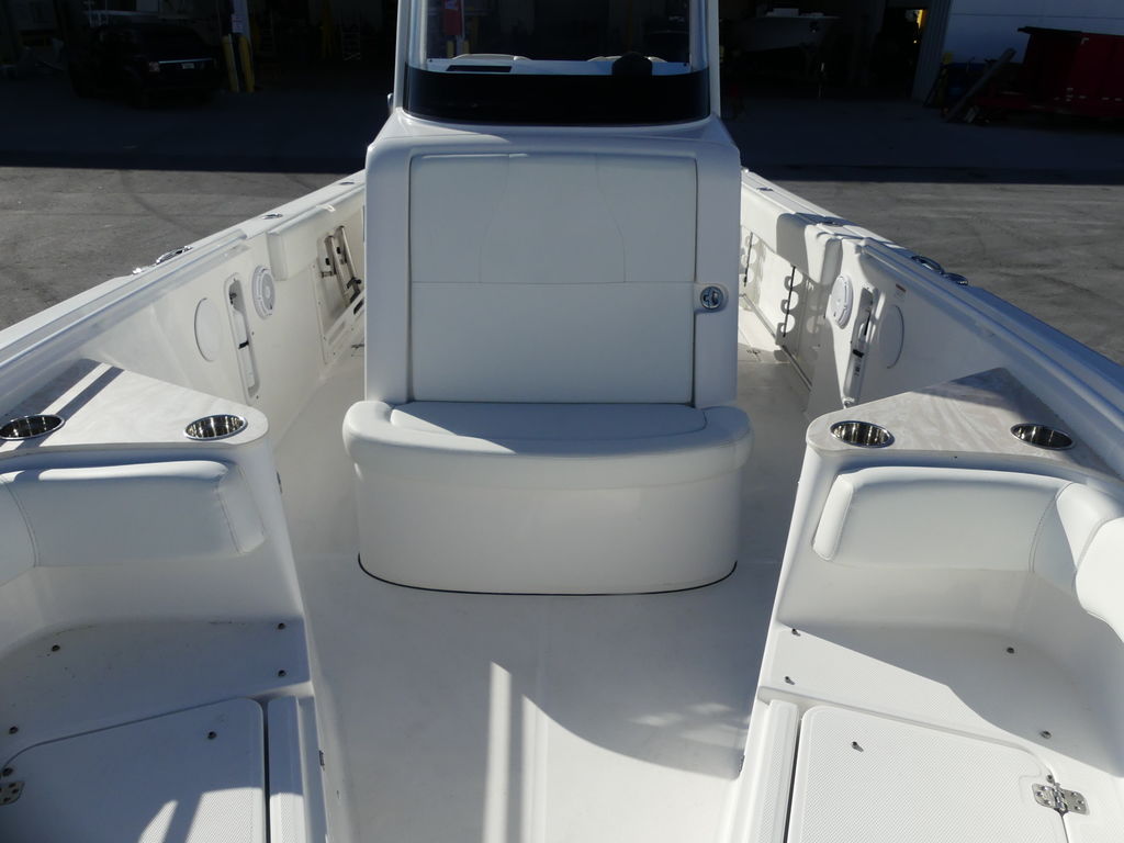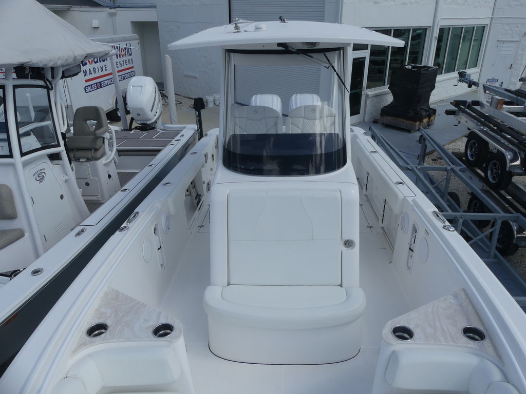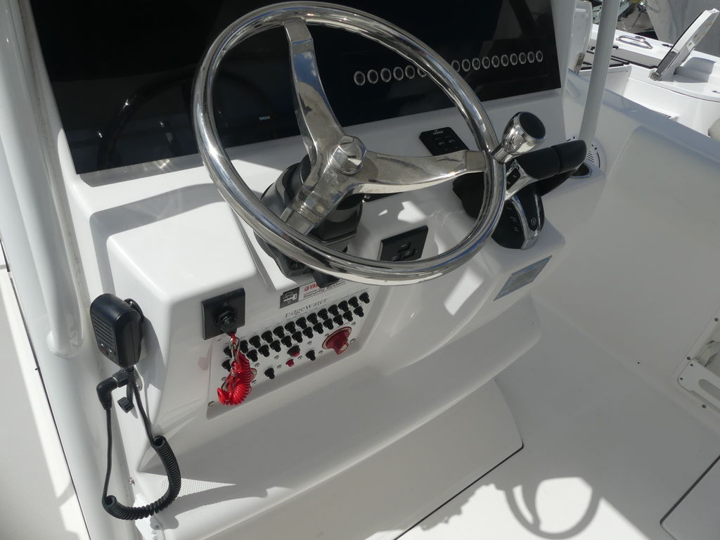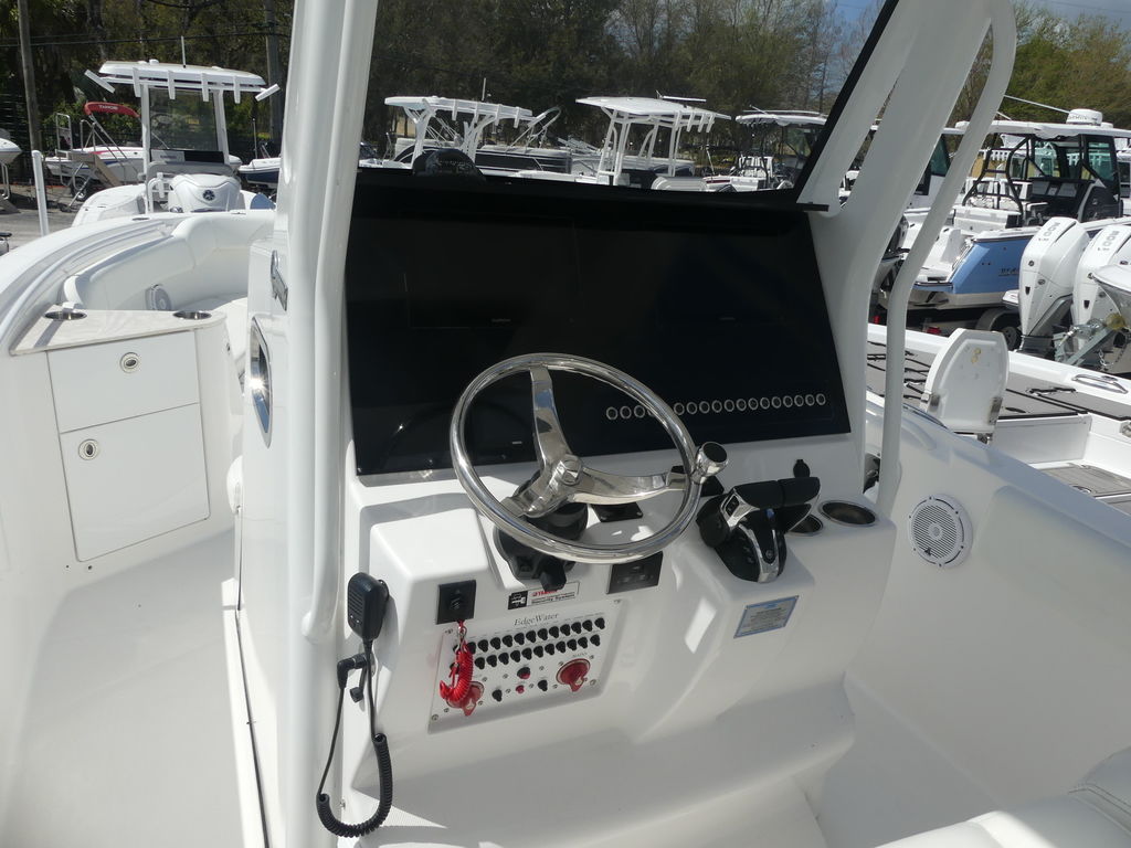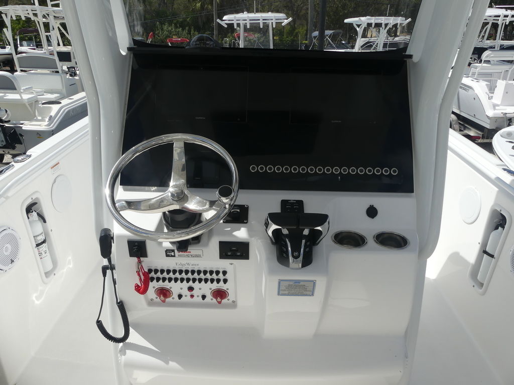 This center console lets you know in a big way that rugged is standard with the offshore boats of EdgeWater.