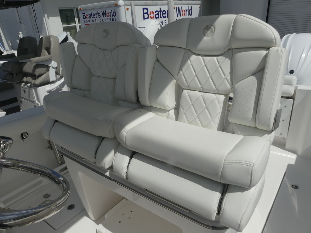 - Fiberglass Leaning Post w/ Premium Cooler, Premium Fiberglass Back Flip Bolster Adjustable Seats w/ Armrests, Stainless Steel Sink, Cutting Board & Storage Box