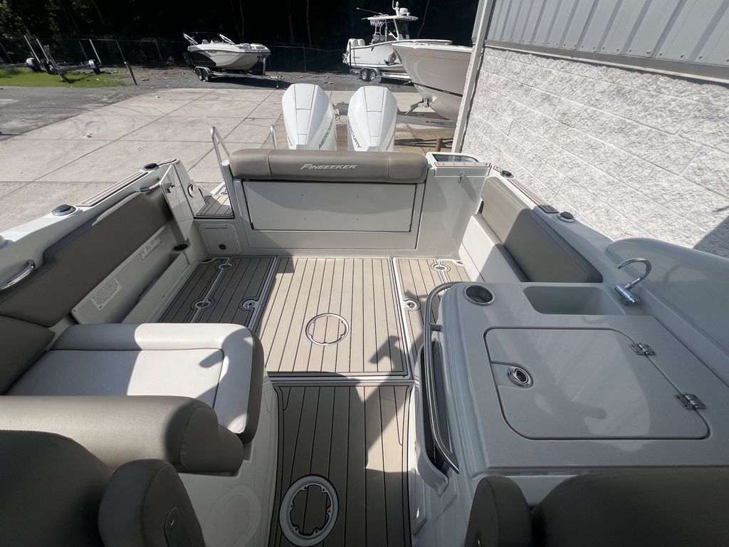 Premium finishes, a high-end sound system, and advanced Garmin electronics make this 28-footer as smart as it is stylish. Turn heads at the dock and dominate offshore—this Finseeker 280 DC is ready for your next adventure.