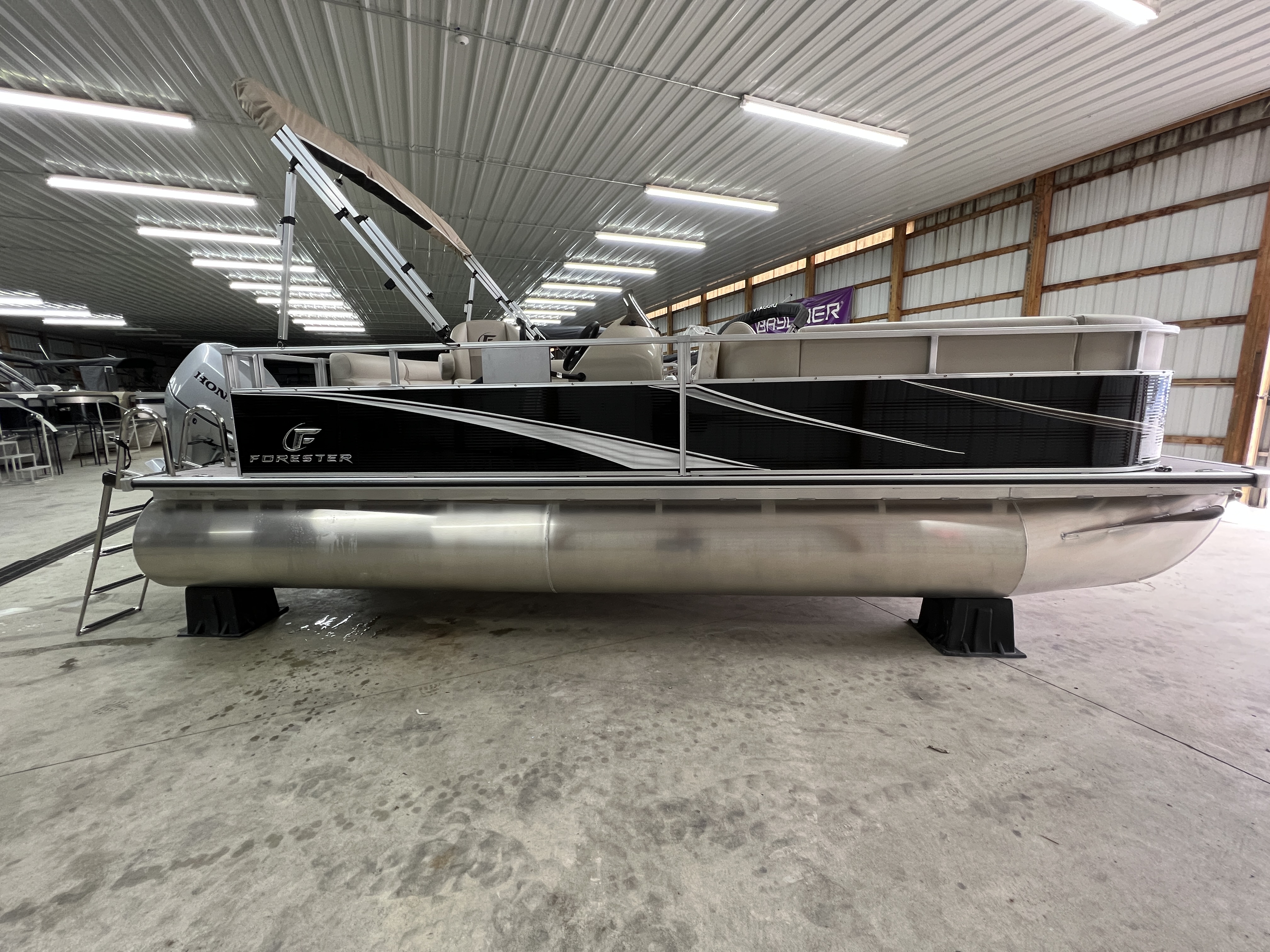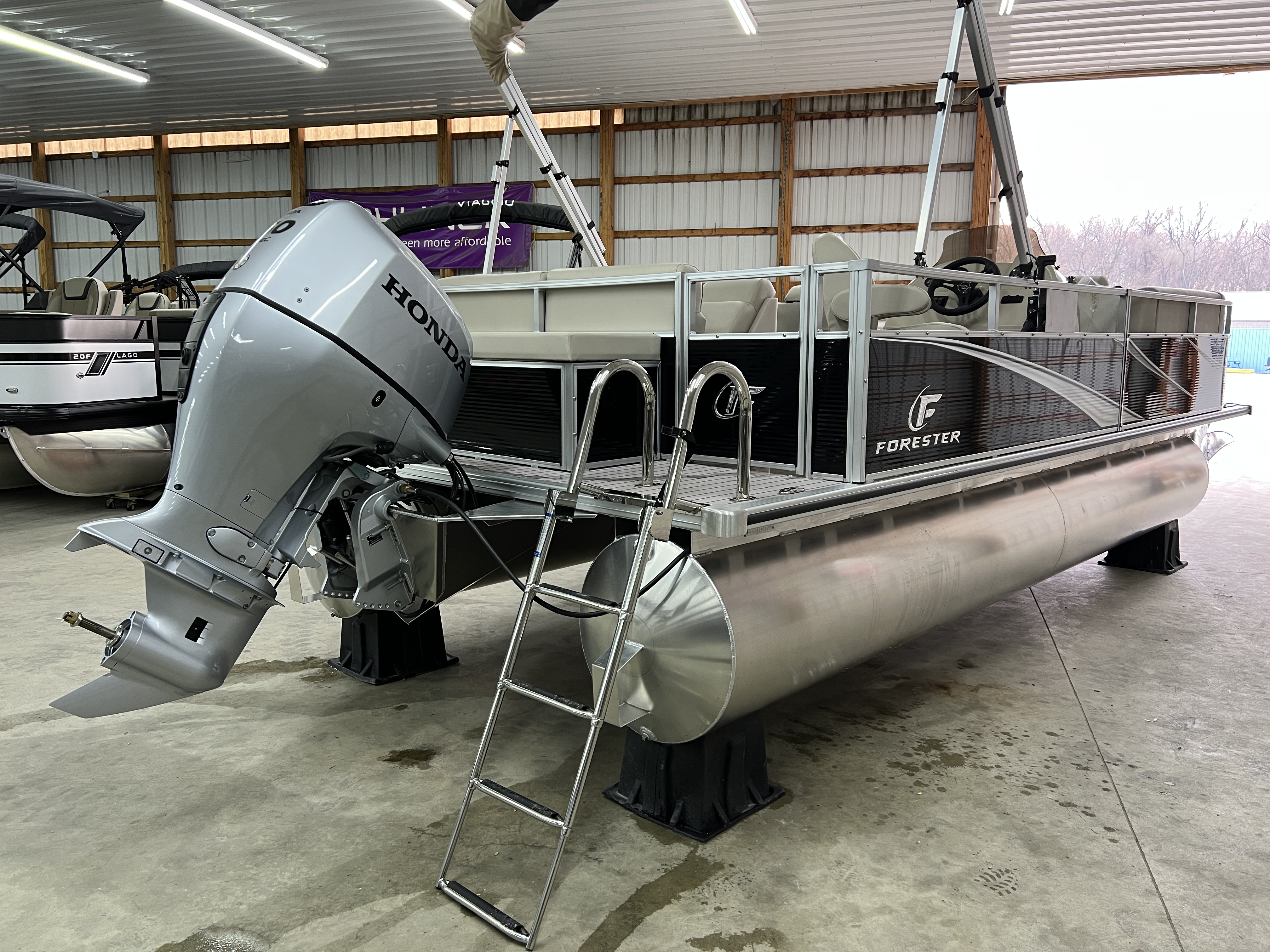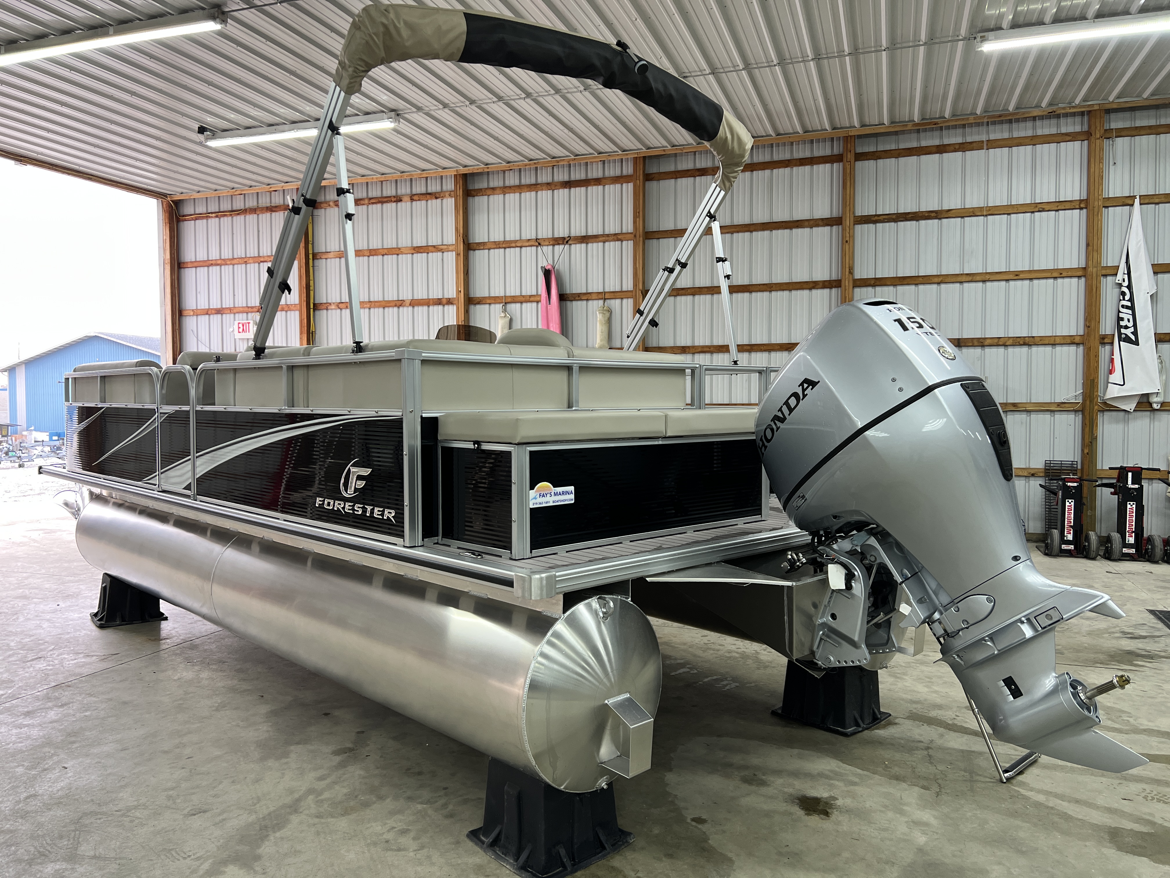 New Forester 2238 C Pontoon w/ 150 HP Honda & Power Steering at For Sale at Fay's Marina, La Porte, IN.