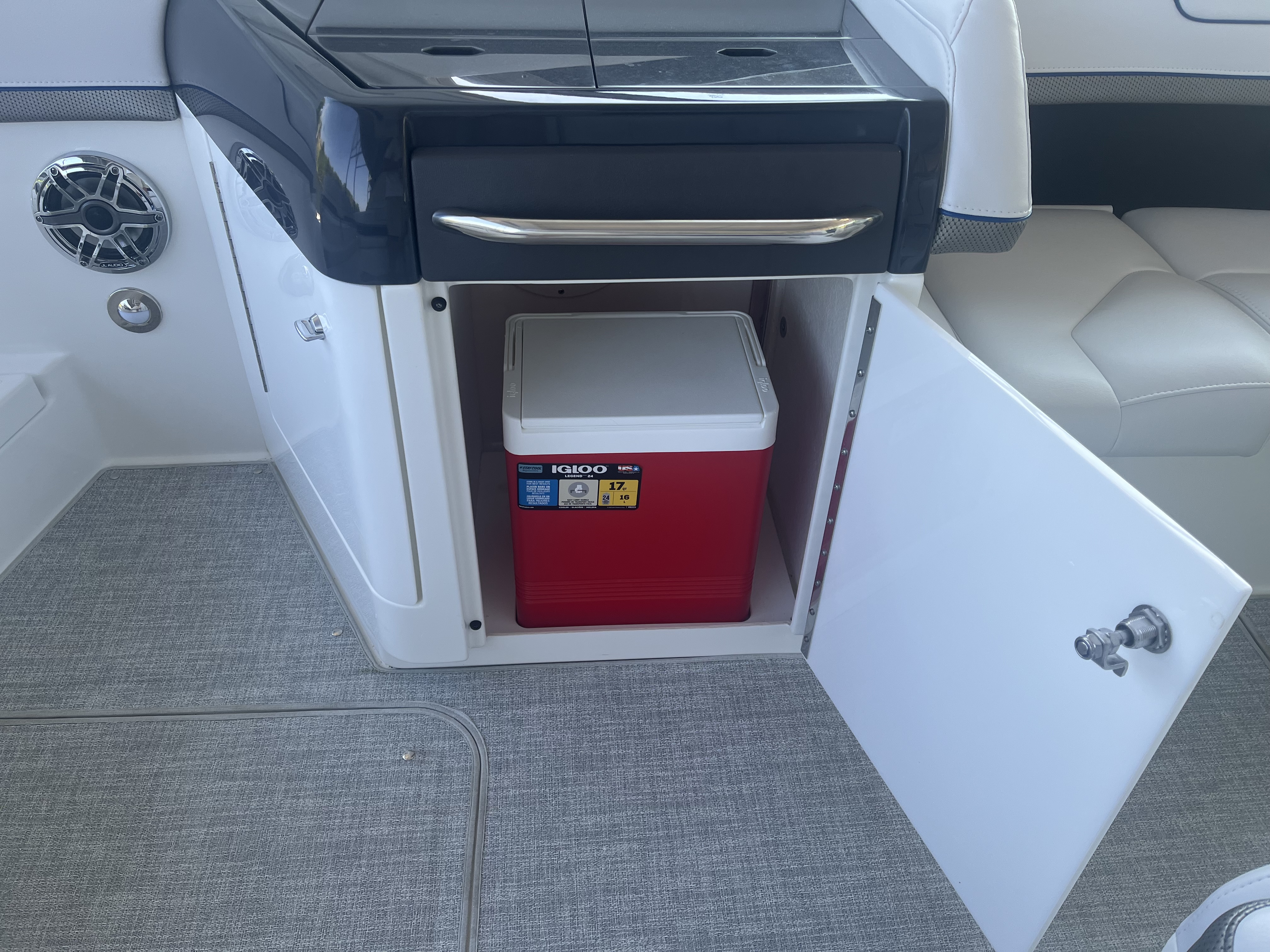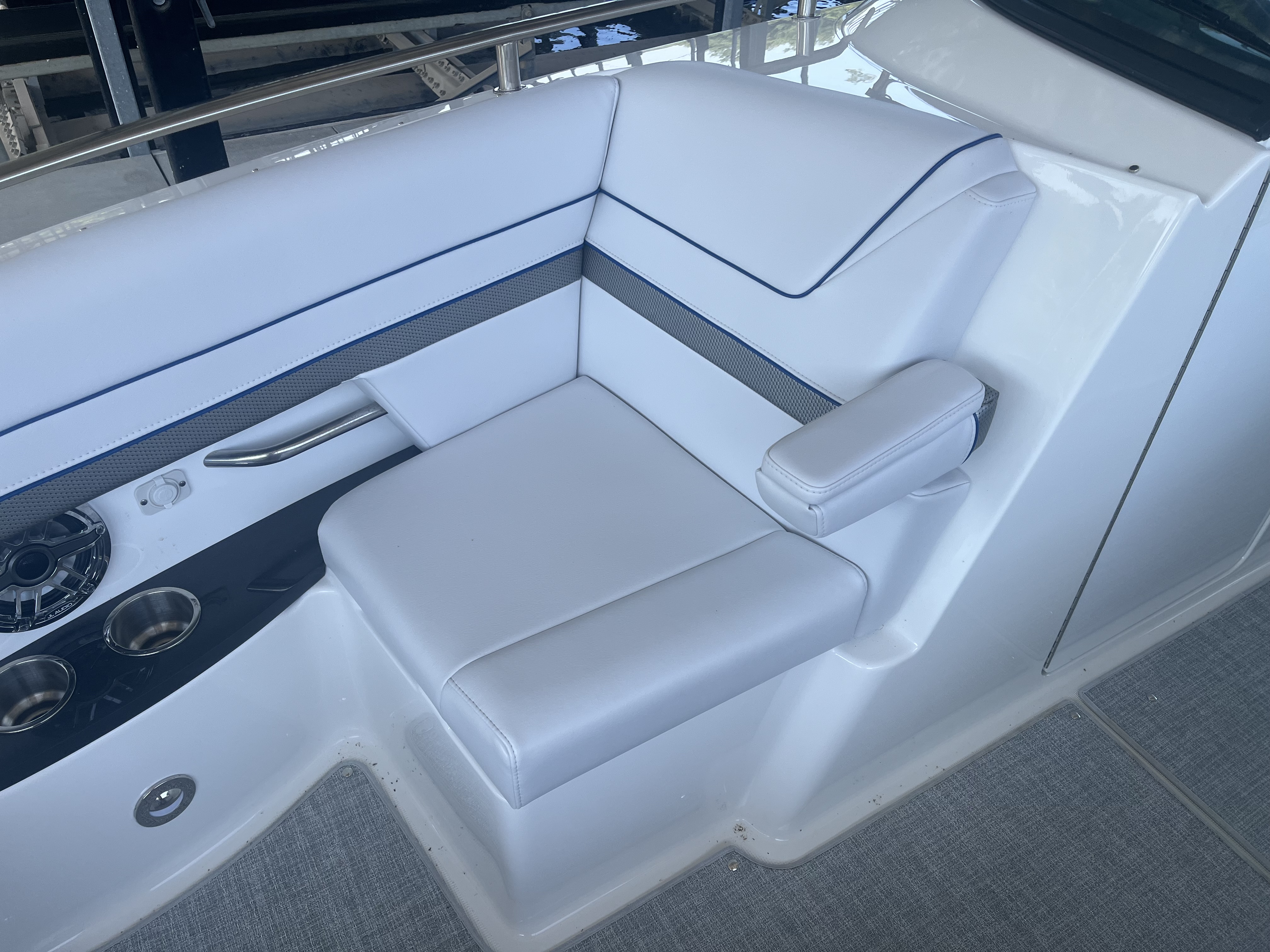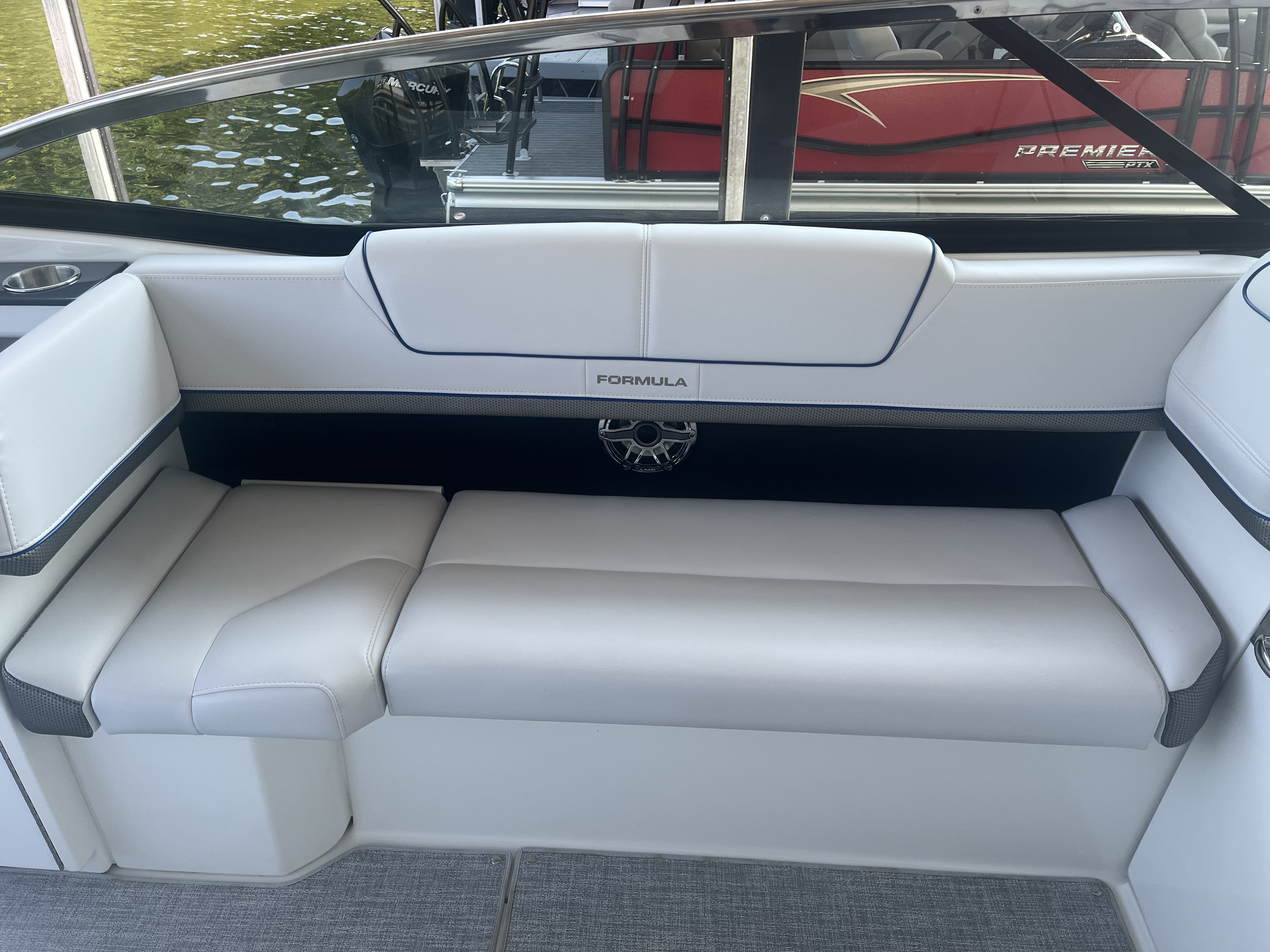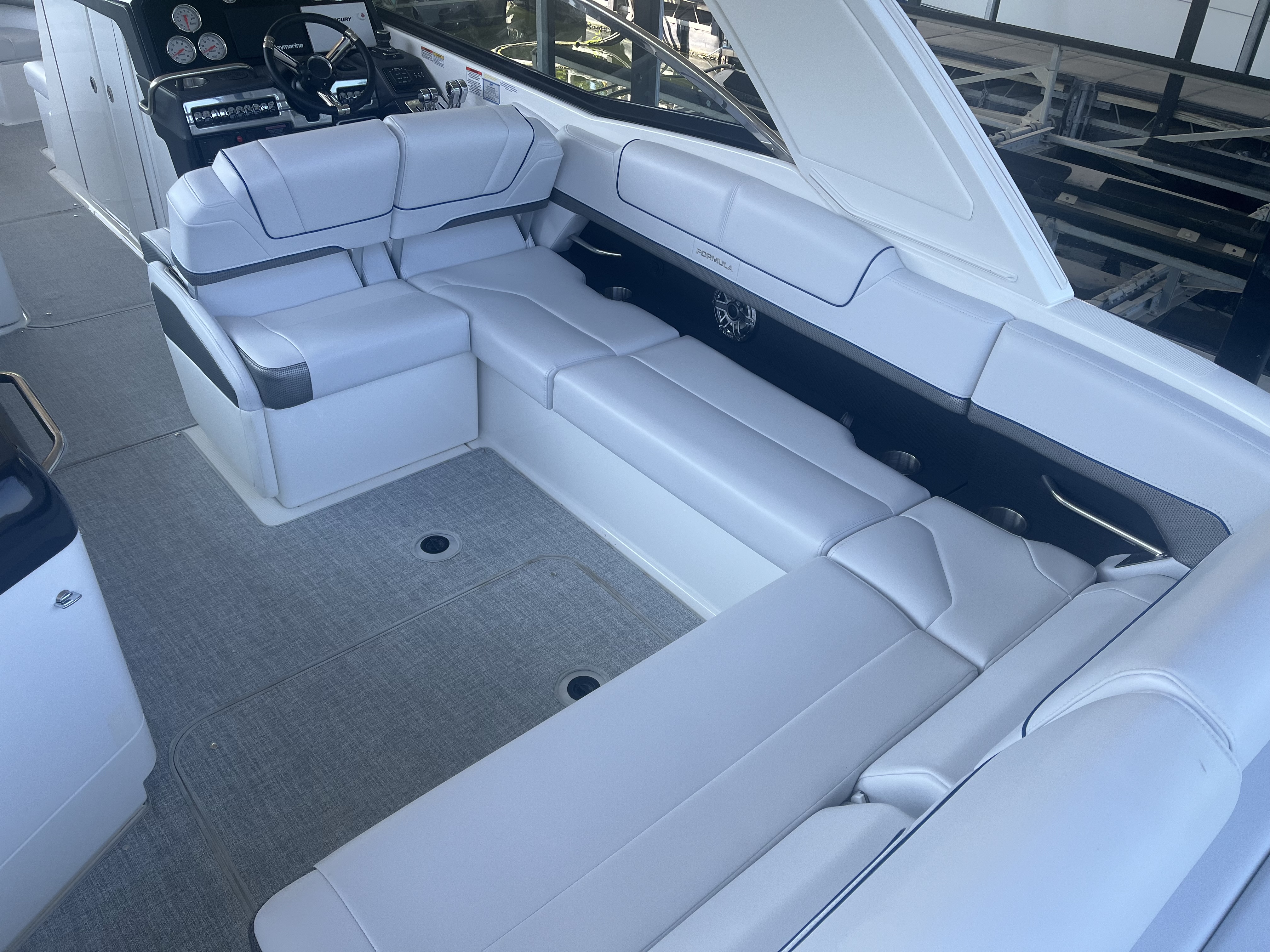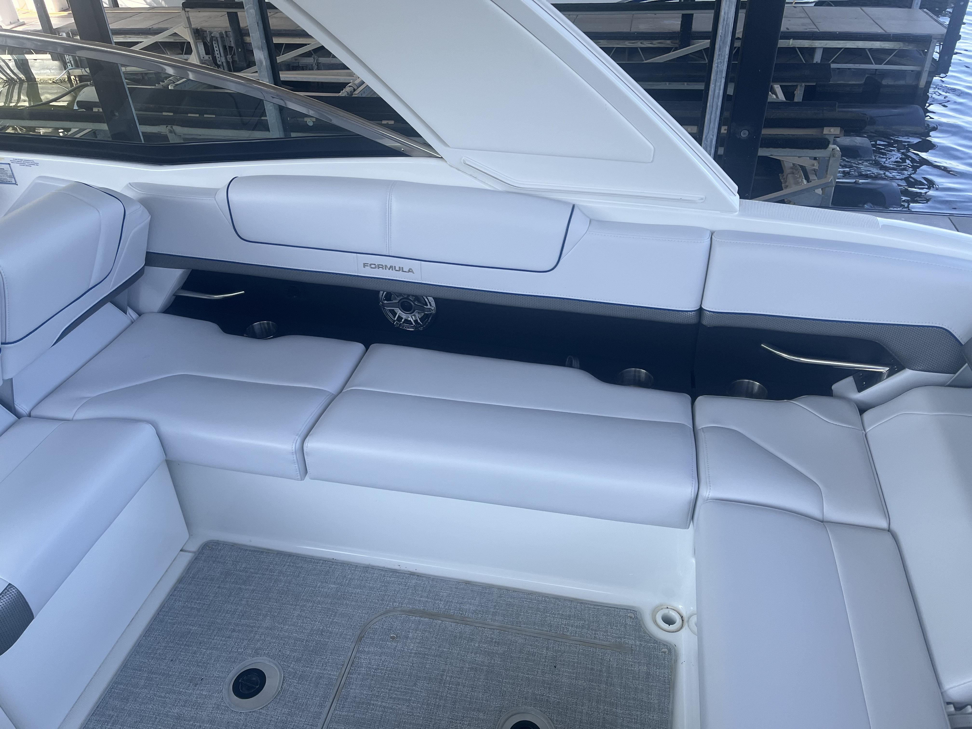 The Formula Bowrider 310 is roomy and comfortable with a classic interior. As our flagship bowrider, this is an upscale sport boat with impeccable performance that will be sure to impress. It is 31’ with a beam of 9’6” and includes plenty of seating and amenities. This 2023 is equipped with T-MerCruiser 6.2L MPI's & Bravo 3's. Comes with a Hard Top, SureShade, Extended Platform, Electric Windlass, JL Audio stereo Upgrade, bow filler cushions, bow/cockpit covers, & more. A custom Marine Concepts cover is available for additional $$$.