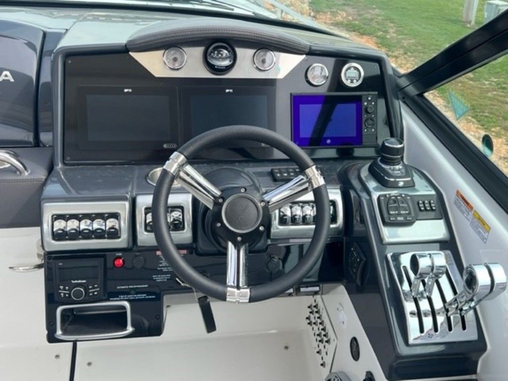 Cockpit- Take control at the helm with the stylish, versatile 350 Crossover Bowrider cockpit and dash. Here you’ll find double-helm seating for you and a companion. Each seat is individually adjustable, so you can sit, stand and rest in either an upright position or move fore and aft to participate in conversations or take in the surrounding scenery.