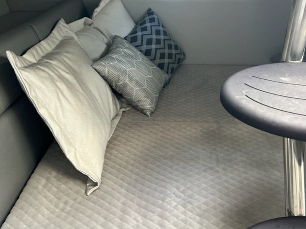 Cabin- The 350 Bowrider with a cabin is a must-have if you plan to use your boat for overnight trips. You’ll sleep soundly on the permanent, full-size memory foam bed and enjoy plenty of headroom to move around the cabin or entertain guests. The double settee and high-end private aircraft galley styling will make you feel right at home.