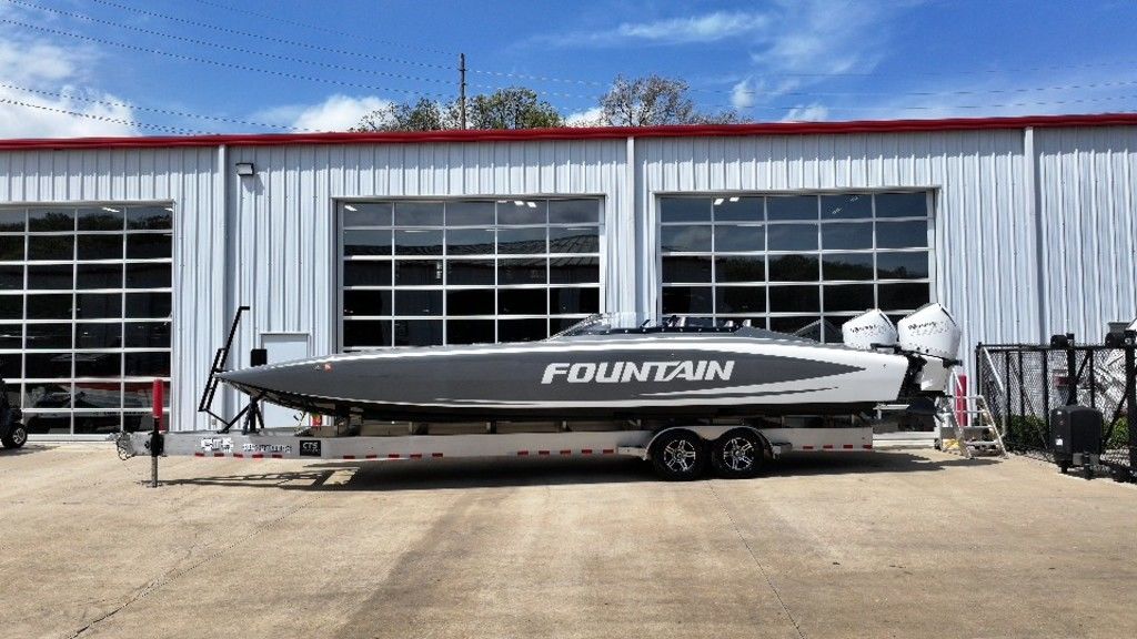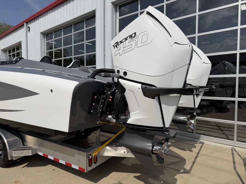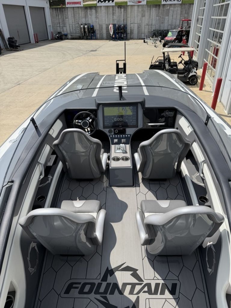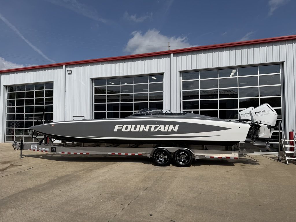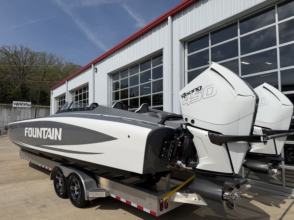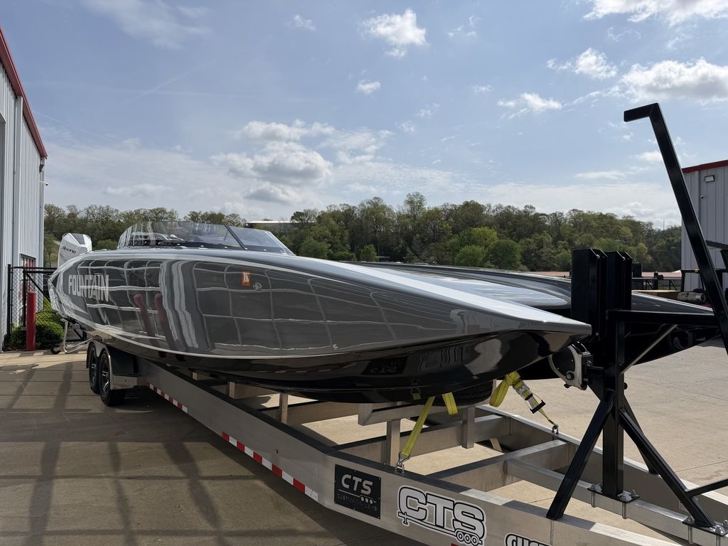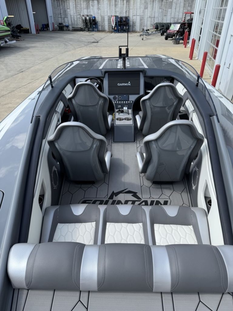 2023 Fountain Thundercat 34 powered by Mercury Racing 450 R, Garmin Gps, Mercury Vessel View, Billet controls, Billet switches, Remote battery switches, Sea deck flooring, Clever props, JL audio sound system, 7 person seating, hatch storage compartments, Battery charger, Cockpit cover, CTS aluminum trailer included