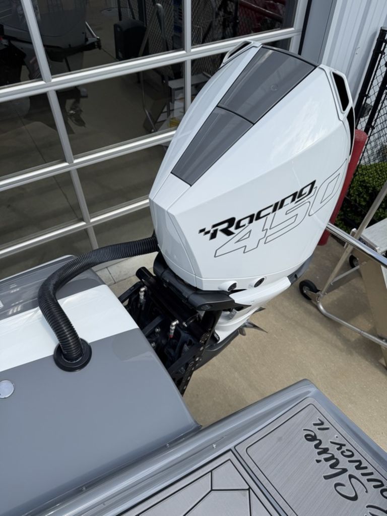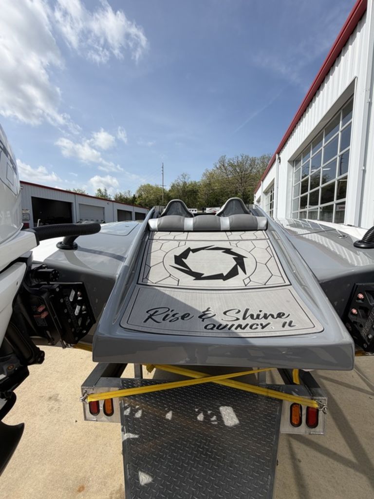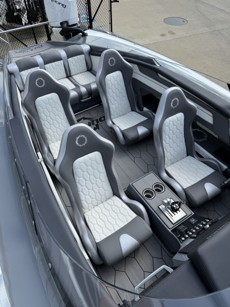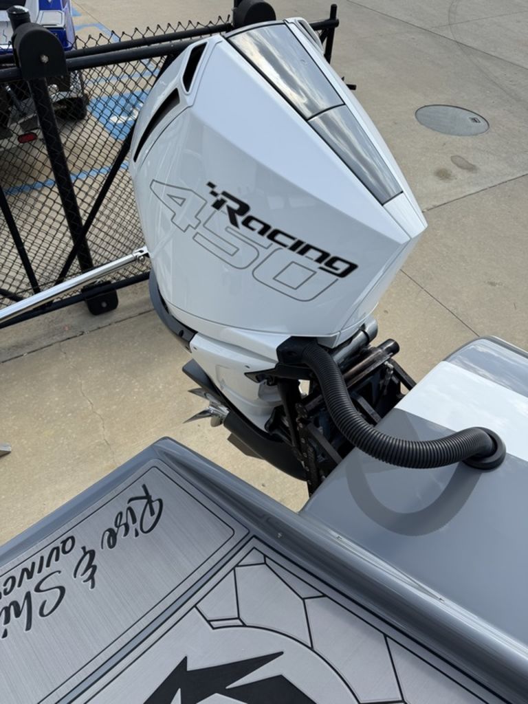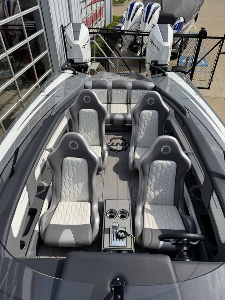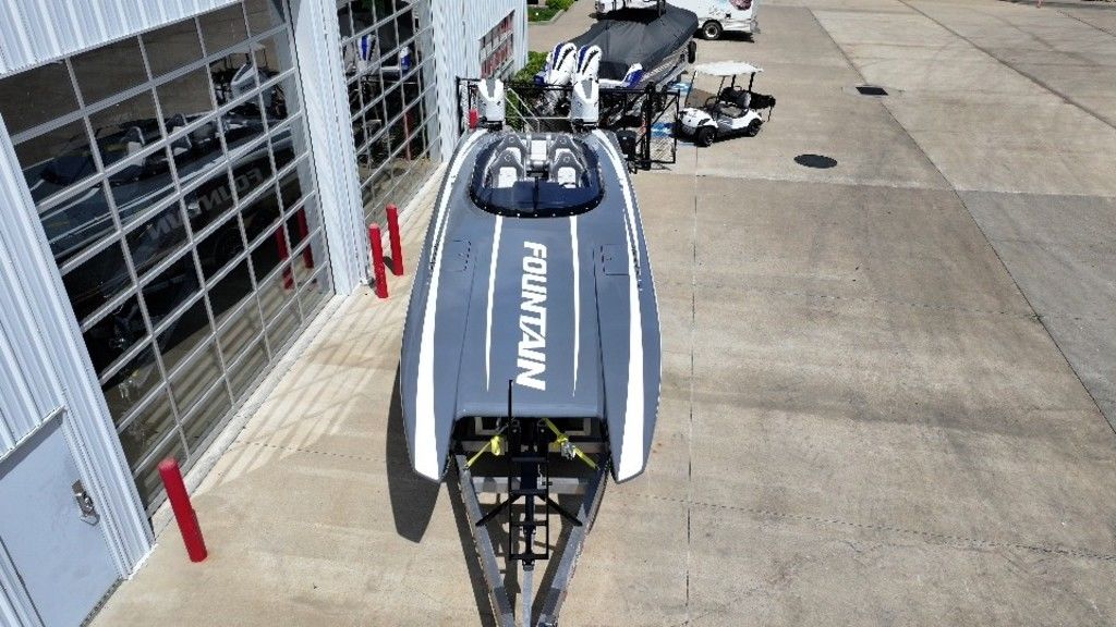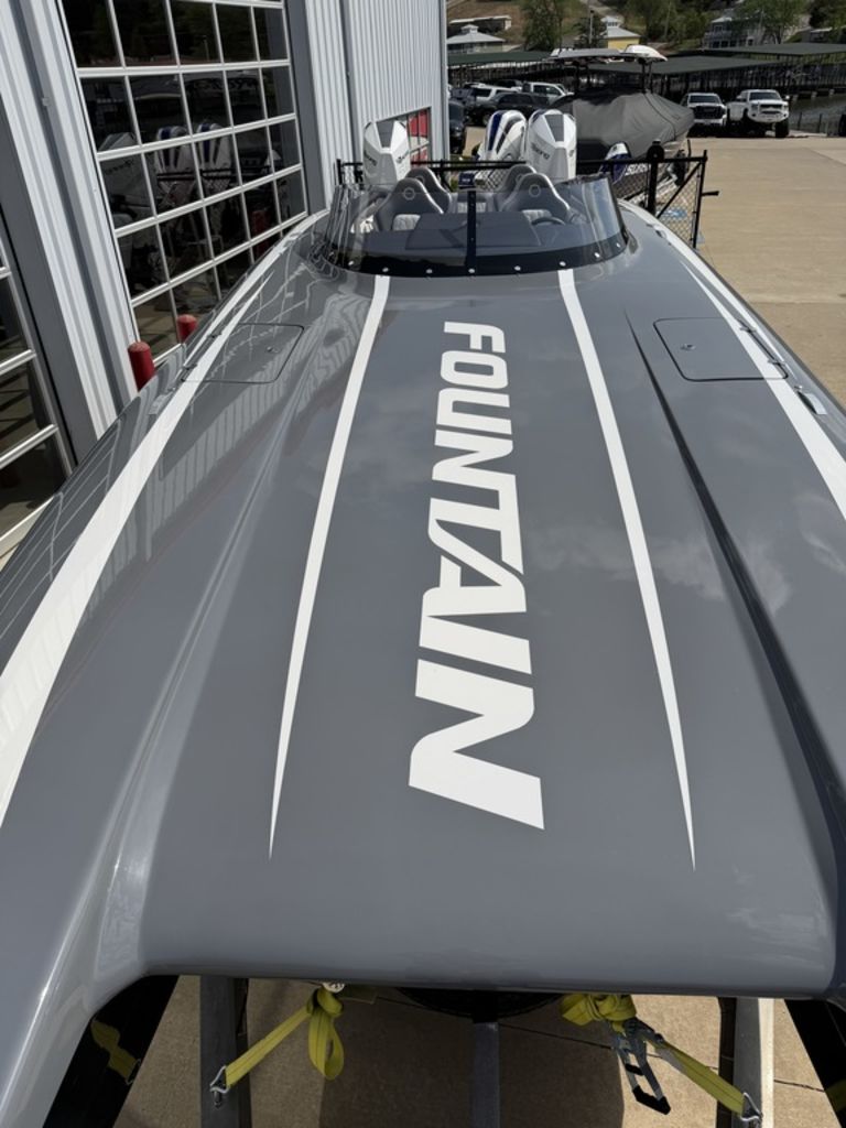 2023 Fountain Thundercat 34 powered by Mercury Racing 450 R, Garmin Gps, Mercury Vessel View, Billet controls, Billet switches, Remote battery switches, Sea deck flooring, Clever props, JL audio sound system, 7 person seating, hatch storage compartments, Battery charger, Cockpit cover, CTS aluminum trailer included