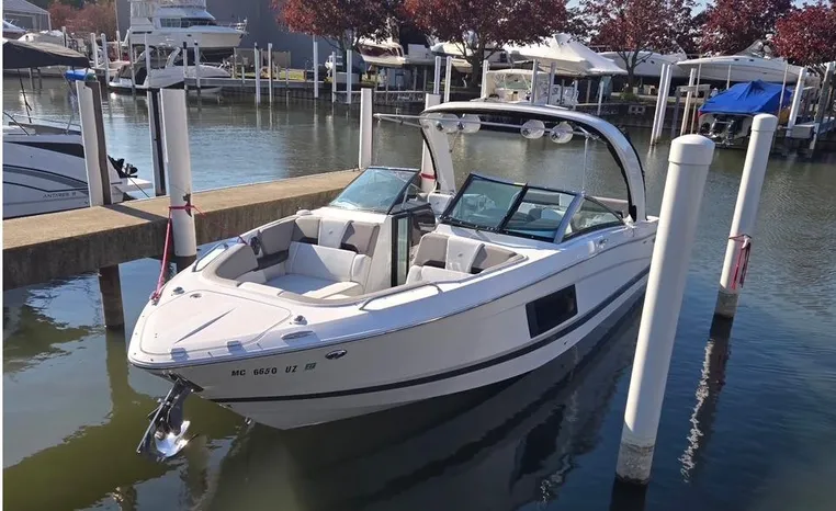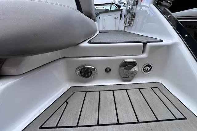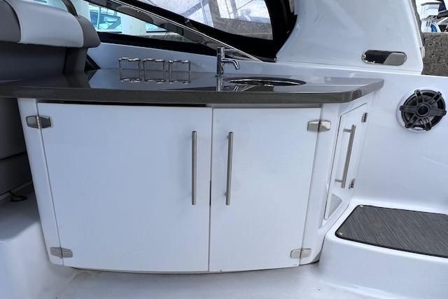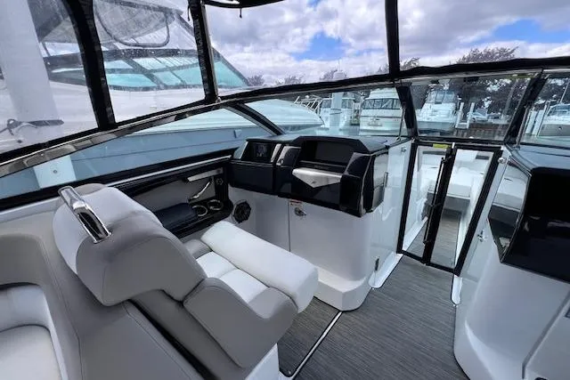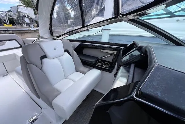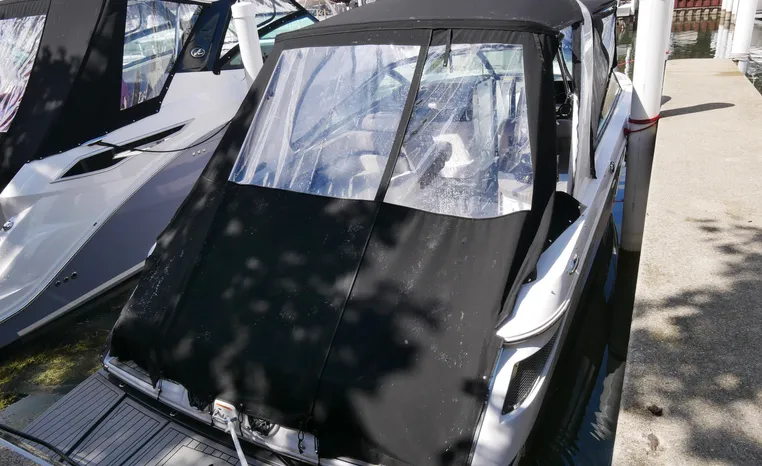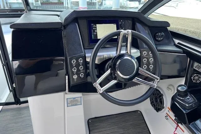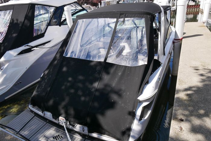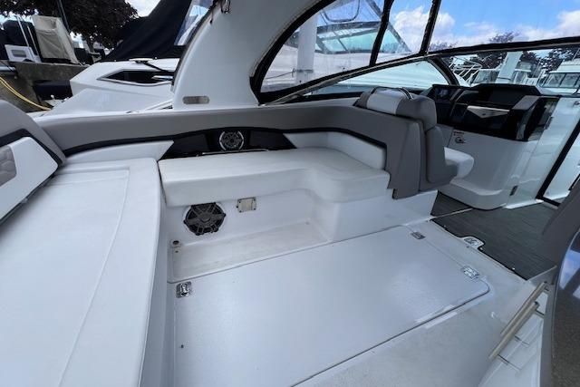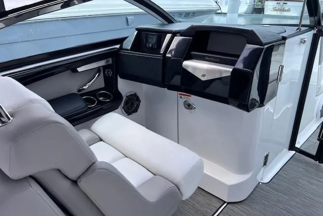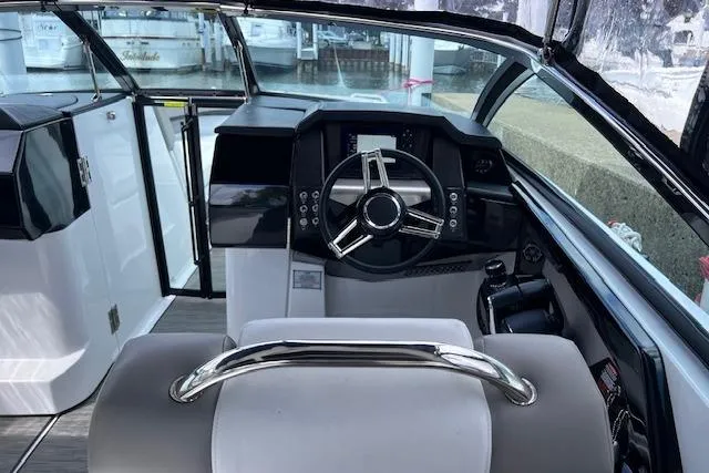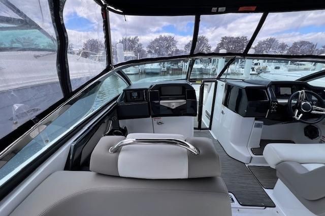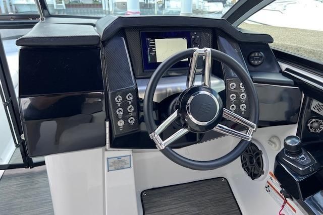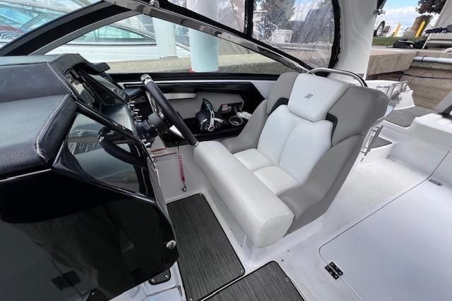 Freshwater / Great Lakes boat since new this vessel features Twin MerCruiser 6.2-litre 300-hp Gas Engines with Bravo III Sterndrives and less than 30 original hours! This vessel features an array of impressive options, including VesselView 703 Joystick Piloting with SmartCraft®-capable multi-engine propulsion system, which accesses Auto Pilot controls with a complete set of advanced steering functions that make any boater look like a seasoned pro. Around the docks, Joystick Piloting makes steering the boat as simple as pushing the joystick whichever way you want to go. With the push of a button, the Skyhook digital anchor locks in your position using GPS, then works with the engines and drives to maintain position and heading regardless of wind or current. This HD Touchscreen unit also incorporates a Chartplotter, Depth, Speed, Trim, Engine Status and Fuel Level.