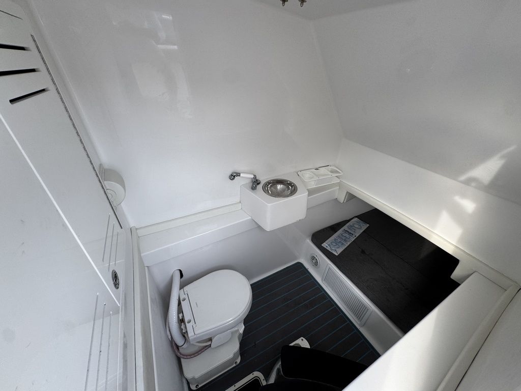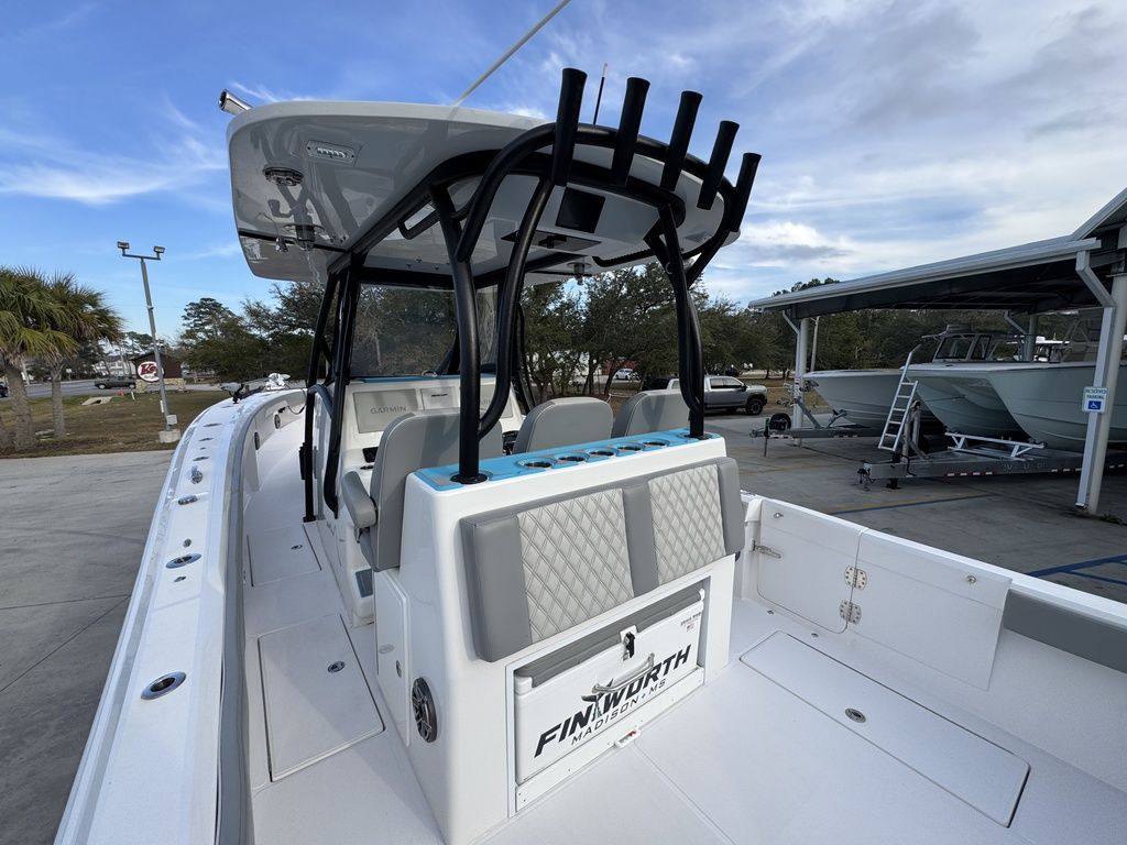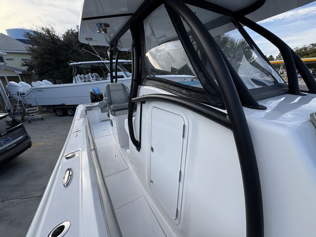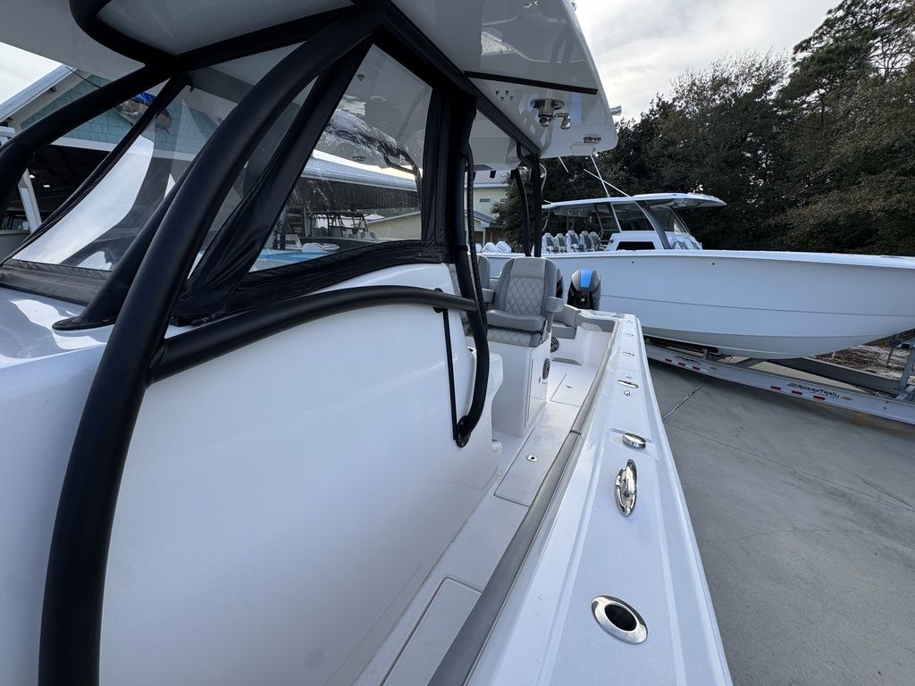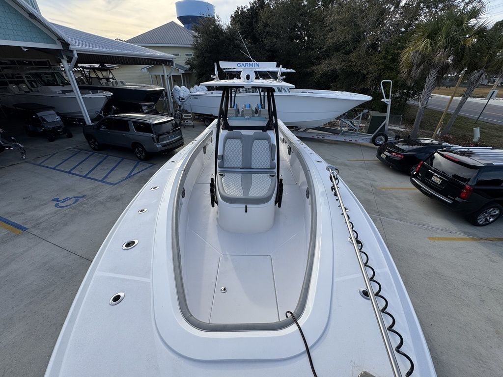 At 36'6", and a 10'6" beam, she is bigger than most other boats in her class. Sporting a deep V, big flared bow, and high-performance step bottom, she will run further and faster than others in her class. She also will allow plenty of shade and cool air in her center console cabin. Equipped with a stand-up head, shower, large berth, and optional air conditioning, she is as accommodating as many boats that are much larger.