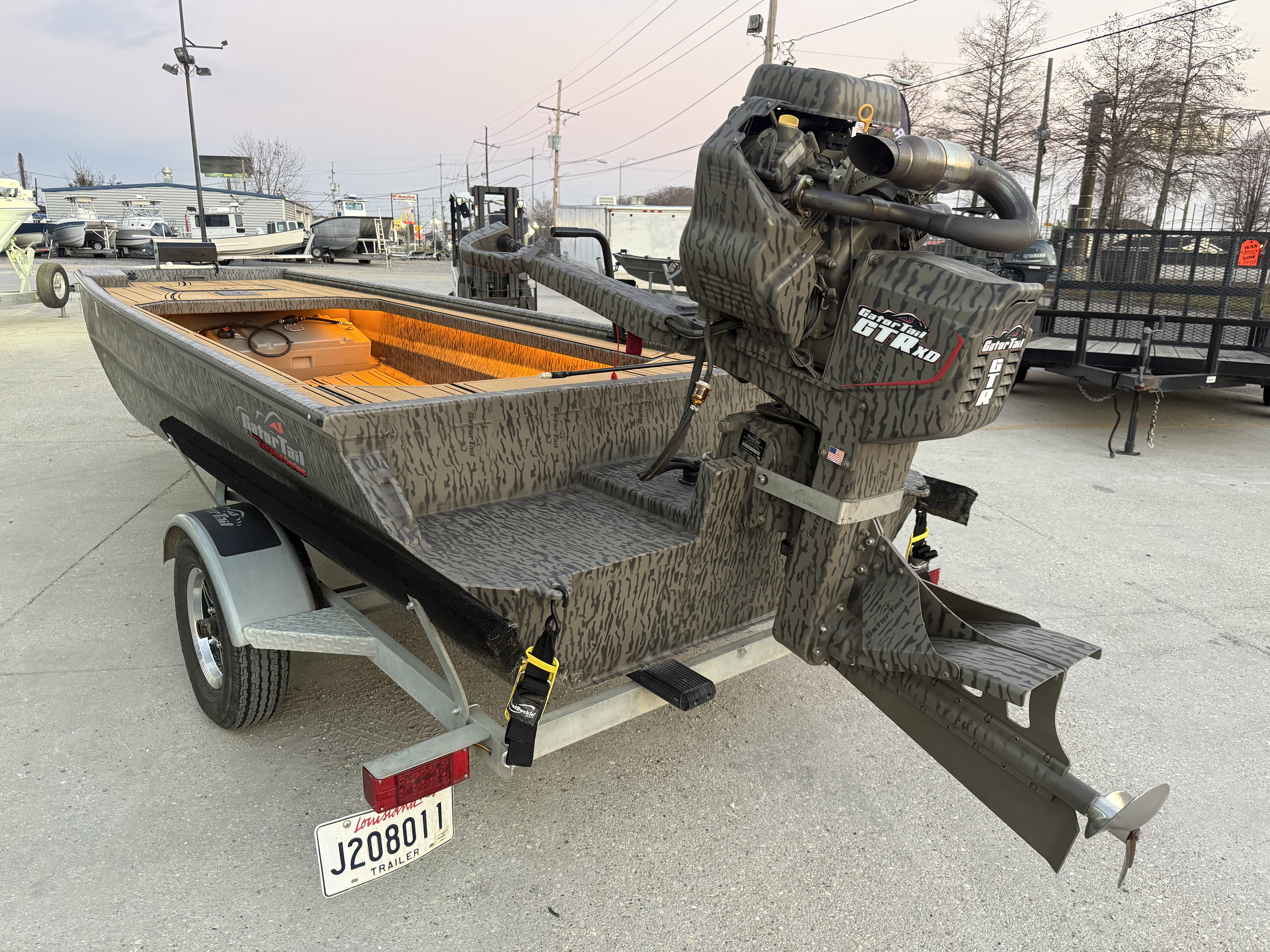 Introducing the stunning 2026 Gator Tail 1854 Extreme, a remarkable aluminum fish boat designed for both performance and durability. With an overall length of 18 feet, this new vessel boasts a modified vee hull shape, ensuring excellent stability and maneuverability on the water. Powered by a robust GATORTAIL GTR40LXD outboard engine, delivering 40 horsepower, this boat is equipped for thrilling adventures. The stainless steel 2-blade propeller enhances efficiency and responsiveness, making it perfect for fishing expeditions or leisurely outings. Crafted from high-quality aluminum, the Gator Tail 1854 Extreme is built to withstand the rigors of marine environments while providing a lightweight yet sturdy platform. This boat is an ideal choice for enthusiasts seeking a reliable and versatile fishing experience, combining modern engineering with practical features for a seamless journey on the water.