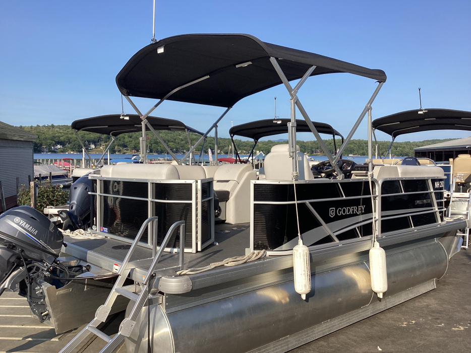 The Godfrey Sweetwater 1886 C is a powerboat made from aluminum that is often used for day-cruising, watersports, and freshwater fishing. Godfrey Pontoon Boats, the company that makes Sweetwater, has been a leader in the luxury pontoon industry since 1958. They are known for making the world's first aluminum pontoons.