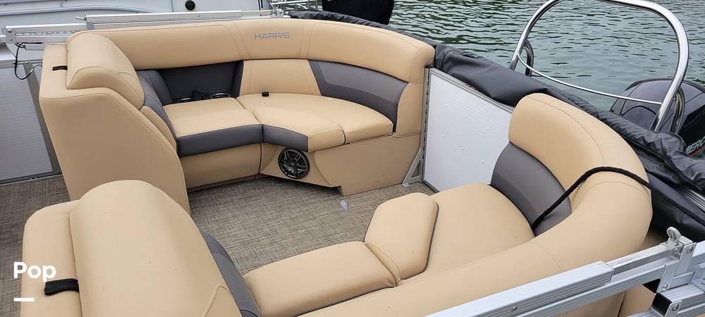 Experience comfort and performance on the water with this 2023 Harris Cruiser 230 Tritoon, powered by a 150 HP Mercury engine.