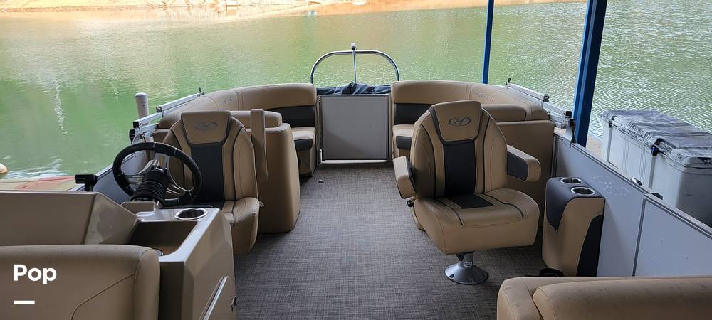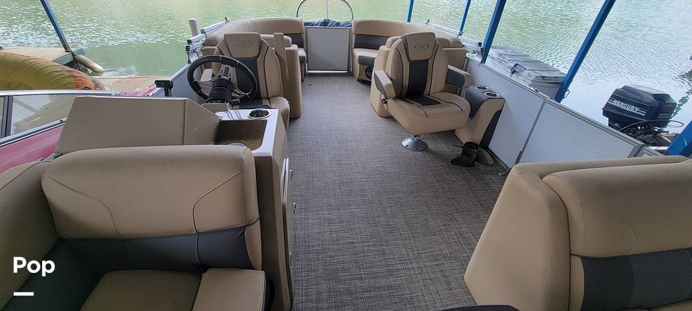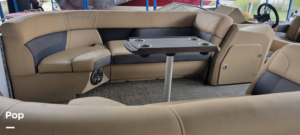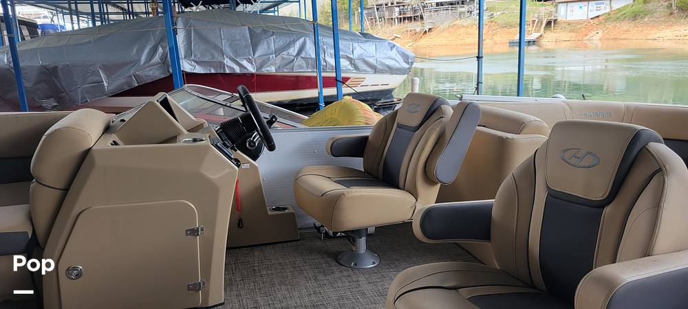 Experience comfort and performance on the water with this 2023 Harris Cruiser 230 Tritoon, powered by a 150 HP Mercury engine.
