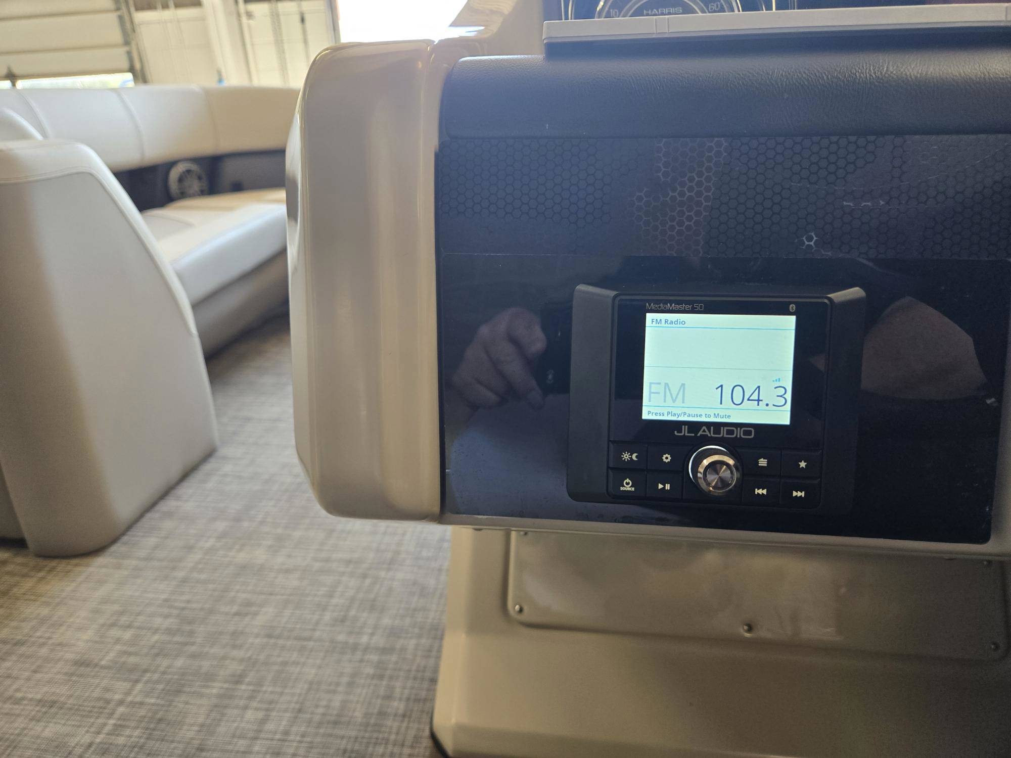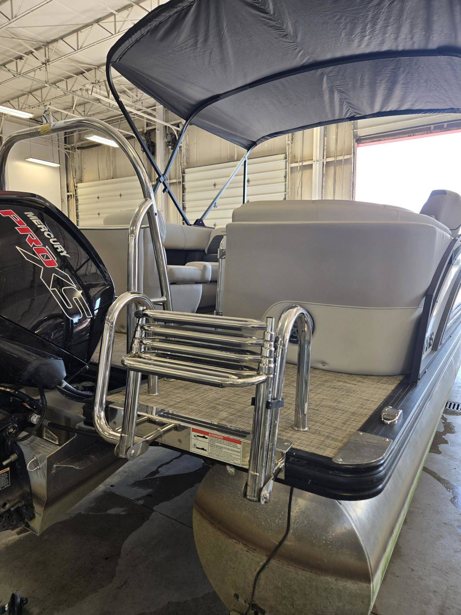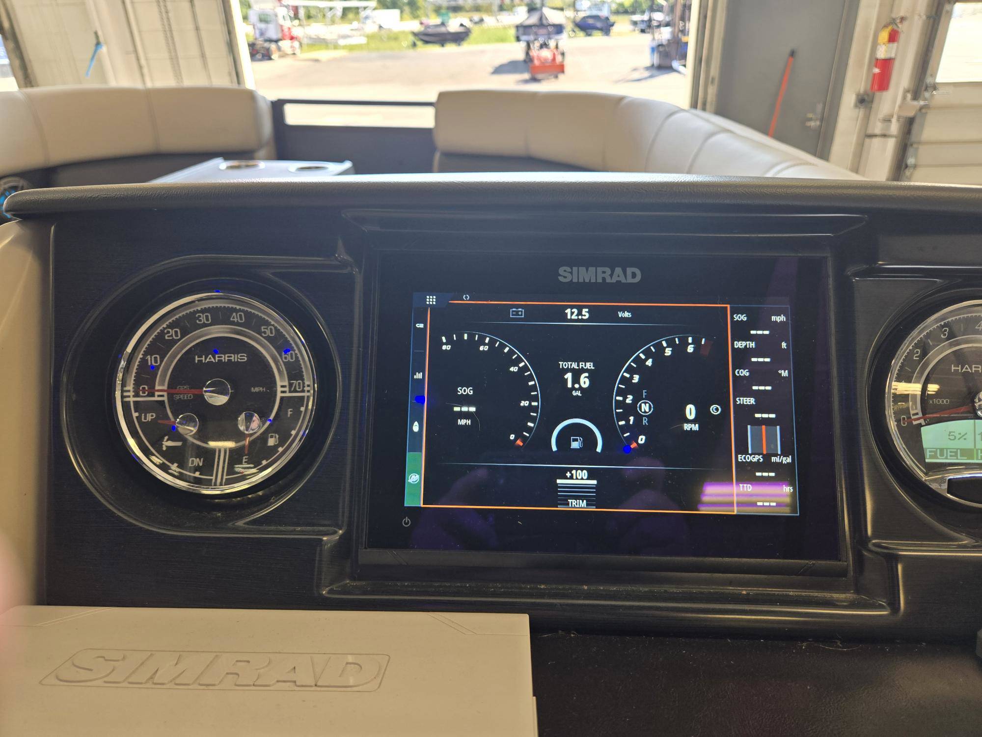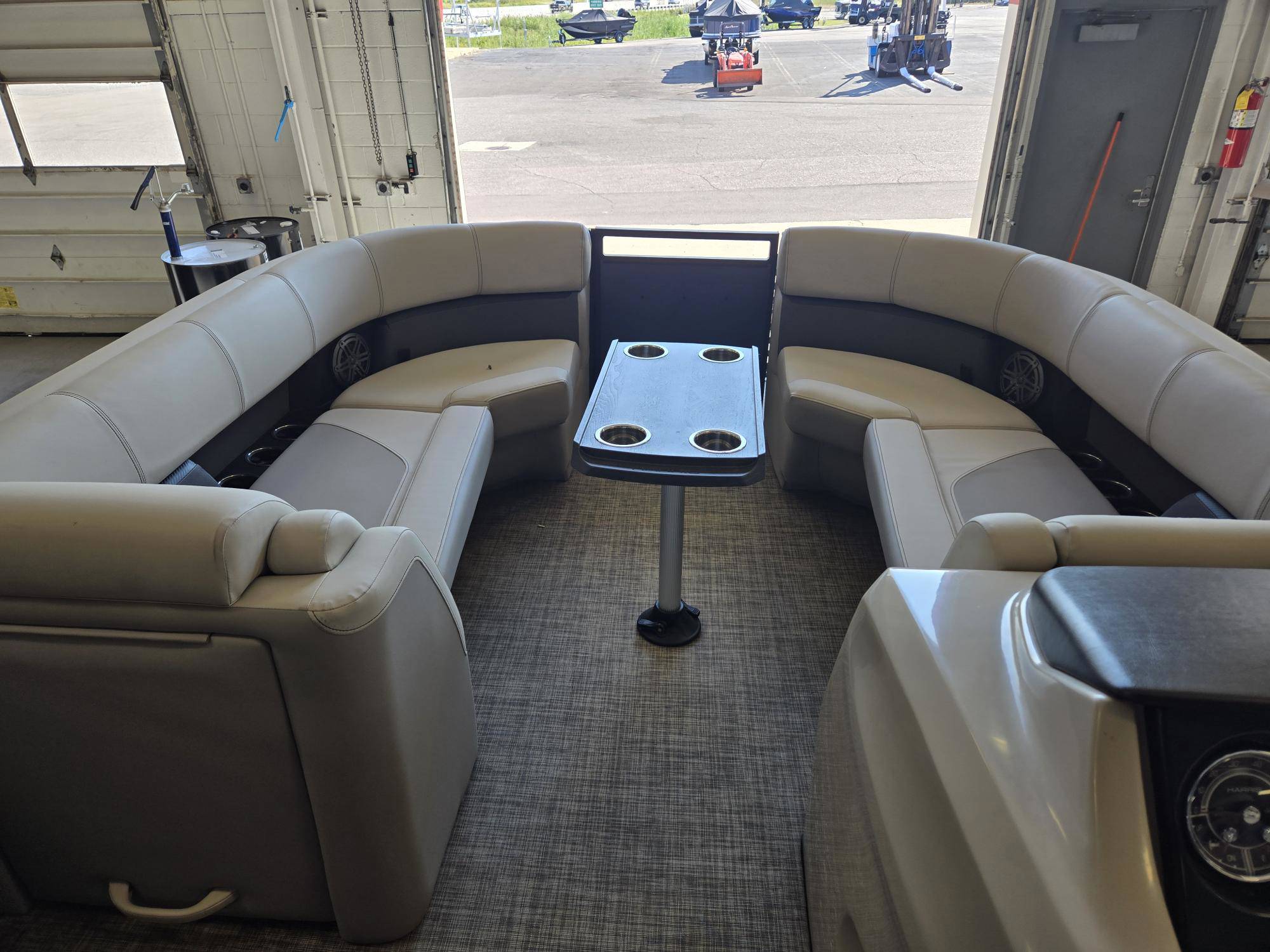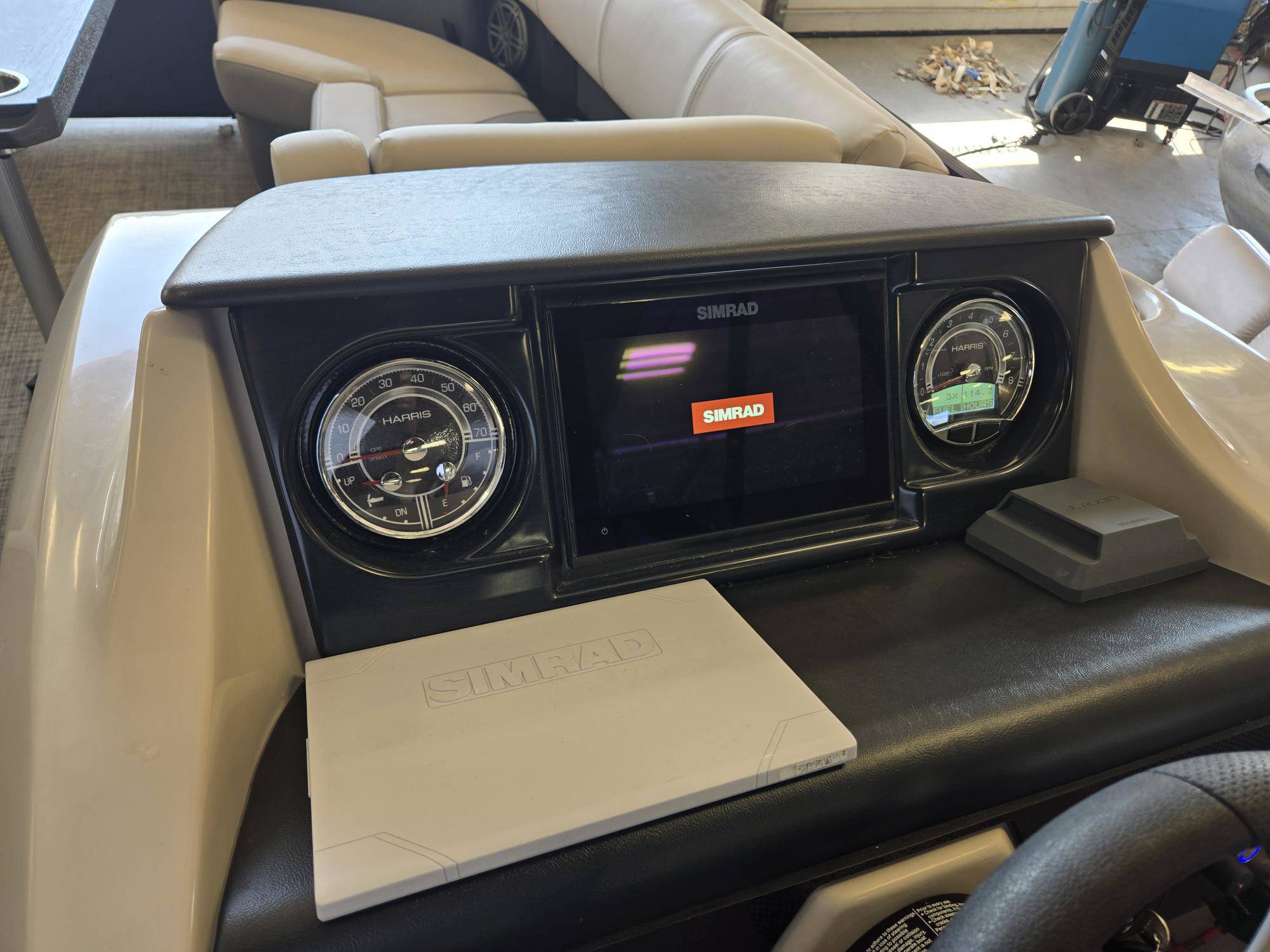 Clean and inspected with ultra low hours!Center Walk Through with Dual Helm chairsThis pontoon comes powered by a Mercury 115hp Pro XS Four StrokeUpgrades from factory include: Interior lighting package, Simrad GO9, and Electric power bimini topFor additional information call us today at 800-875-2620 and select the location nearest you