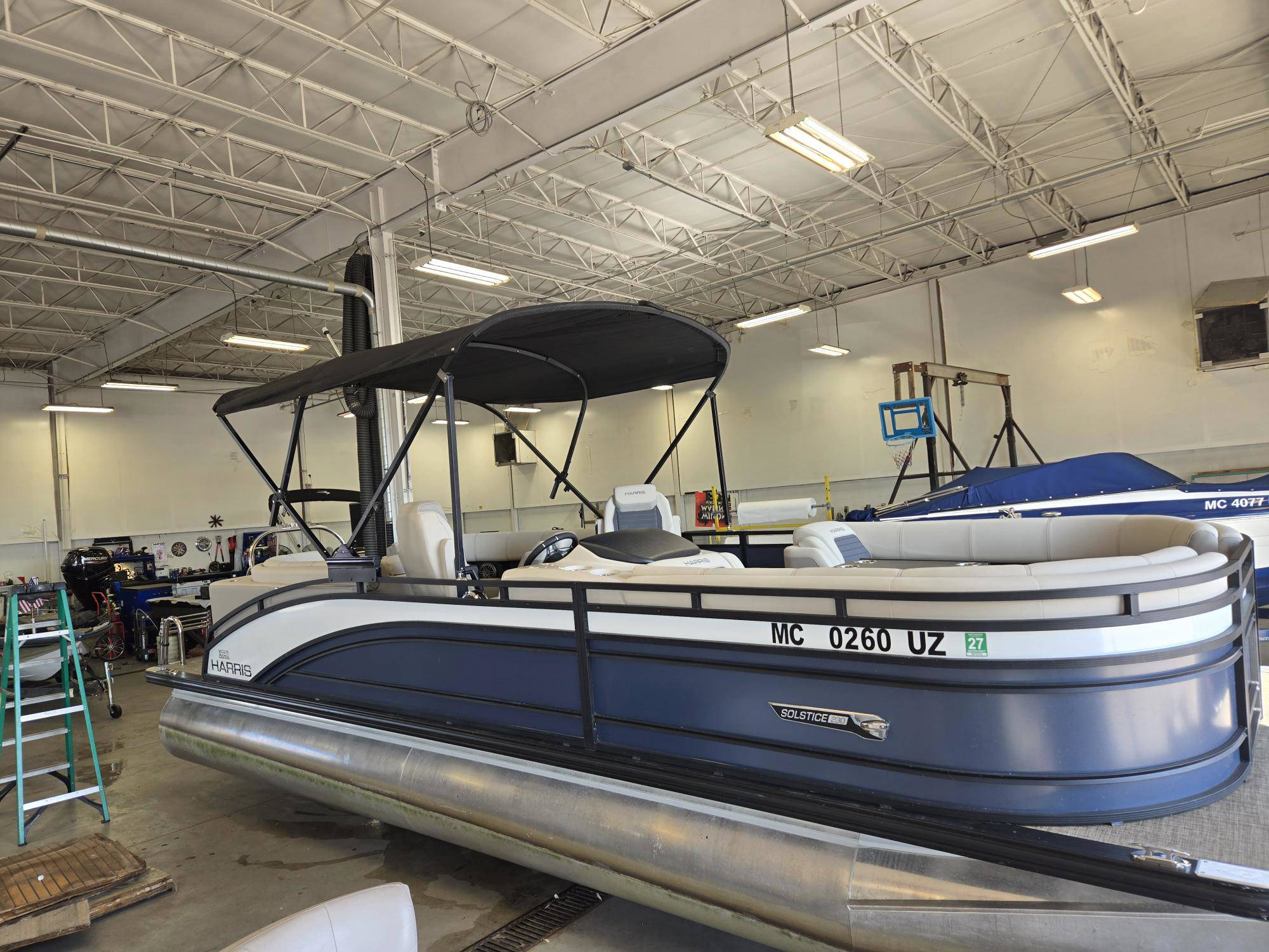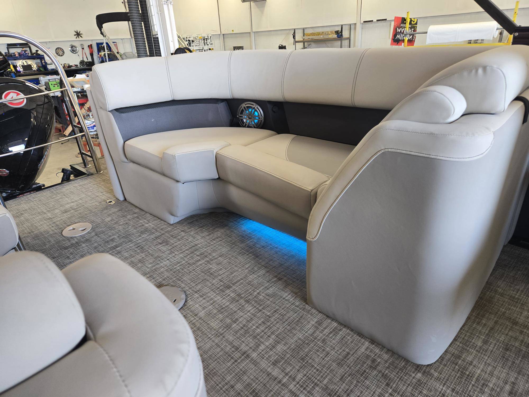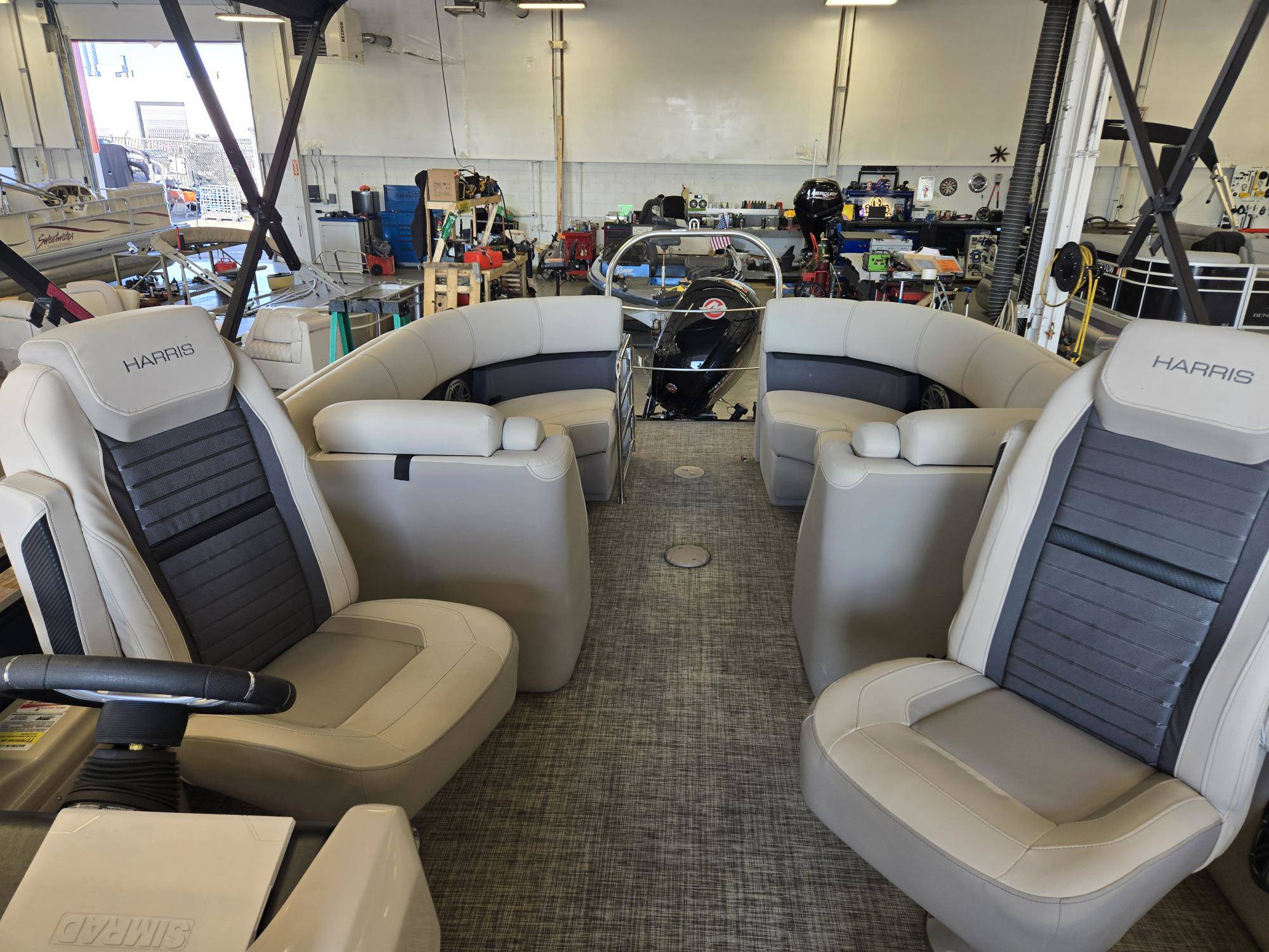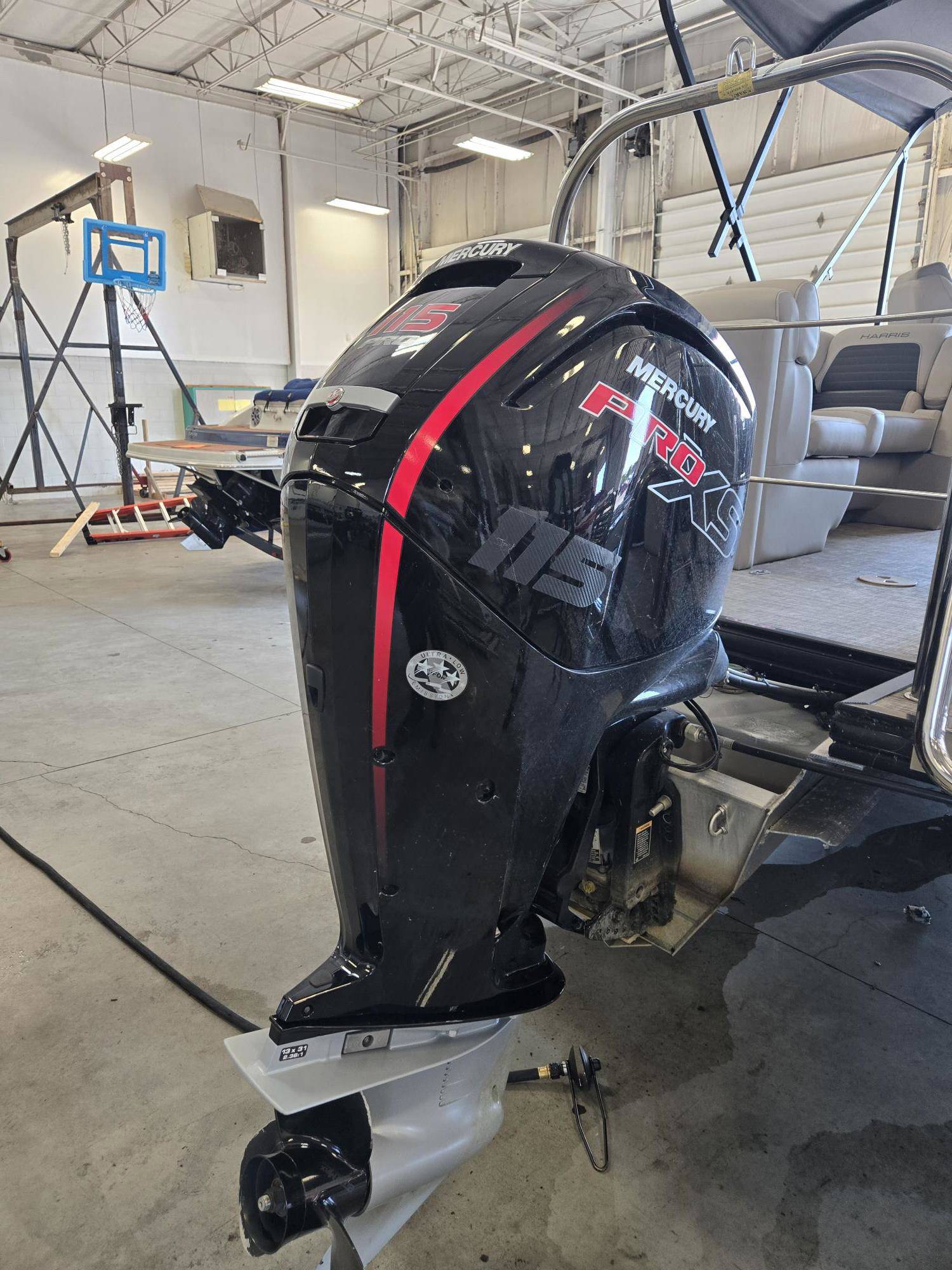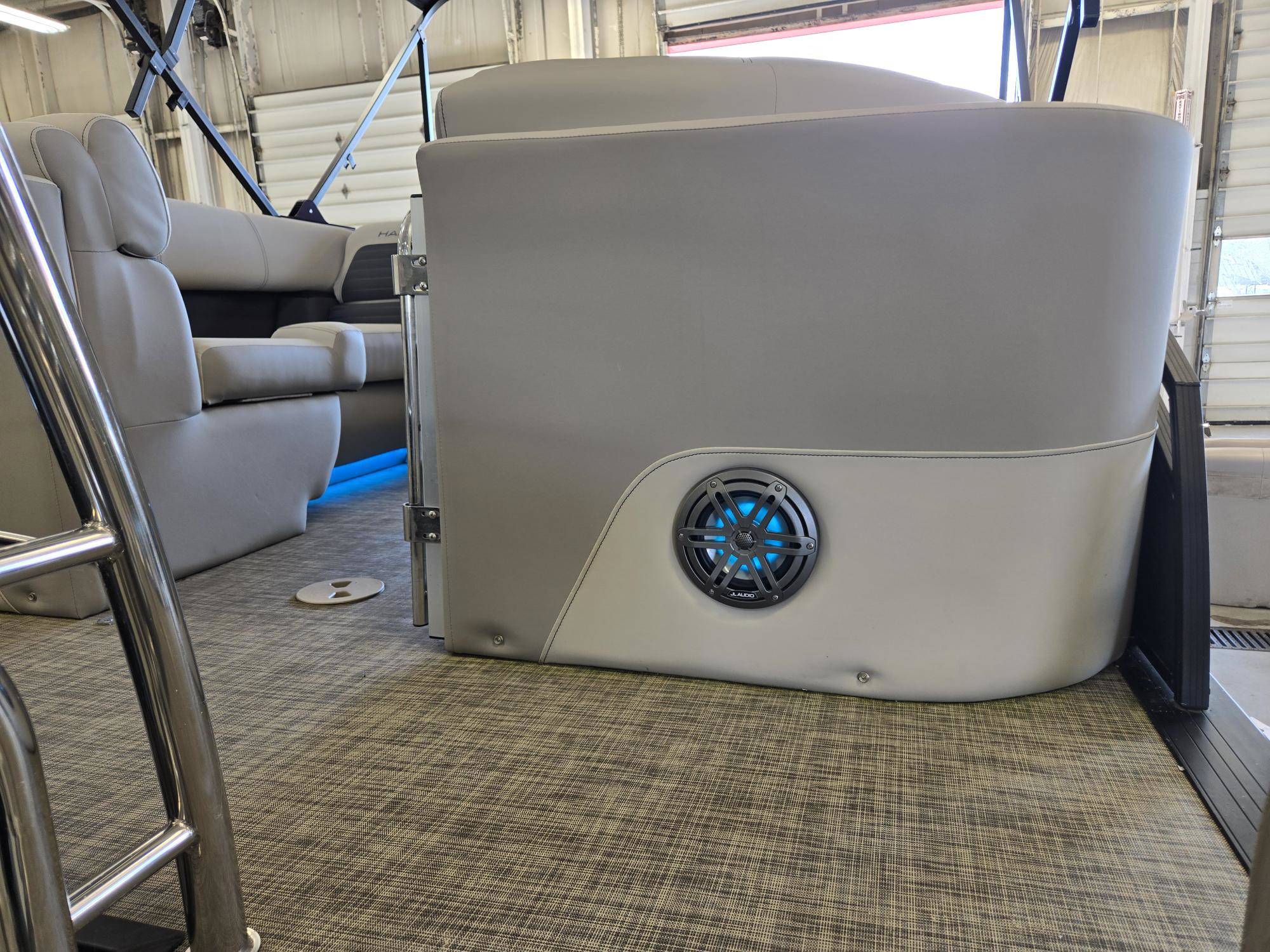 Clean and inspected with ultra low hours!Center Walk Through with Dual Helm chairsThis pontoon comes powered by a Mercury 115hp Pro XS Four StrokeUpgrades from factory include: Interior lighting package, Simrad GO9, and Electric power bimini topFor additional information call us today at 800-875-2620 and select the location nearest you