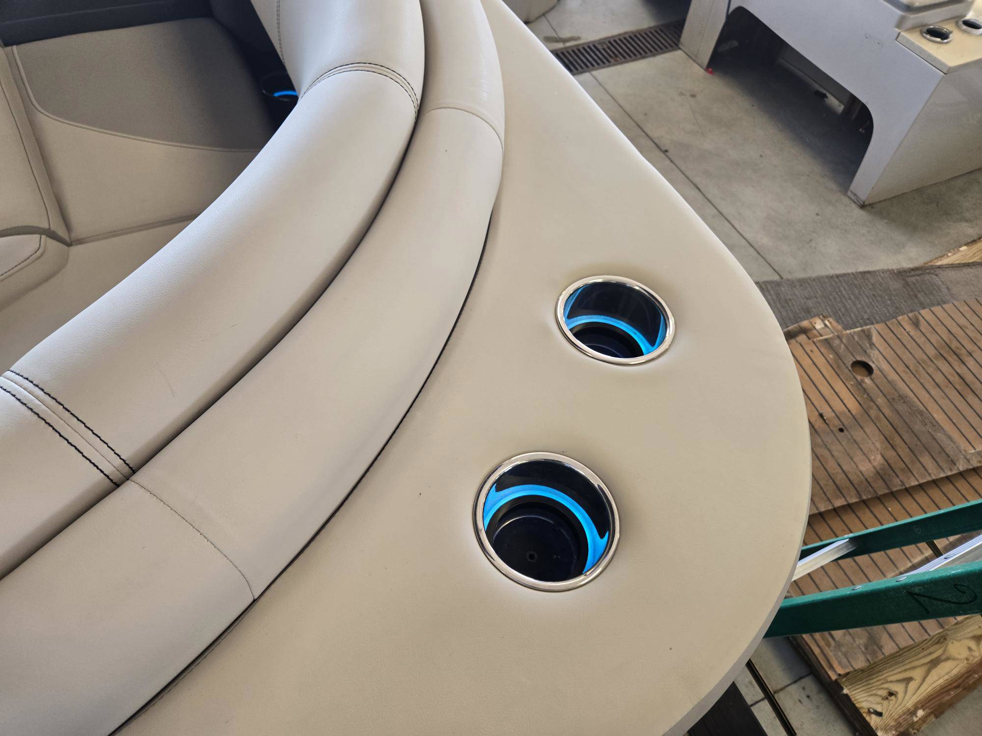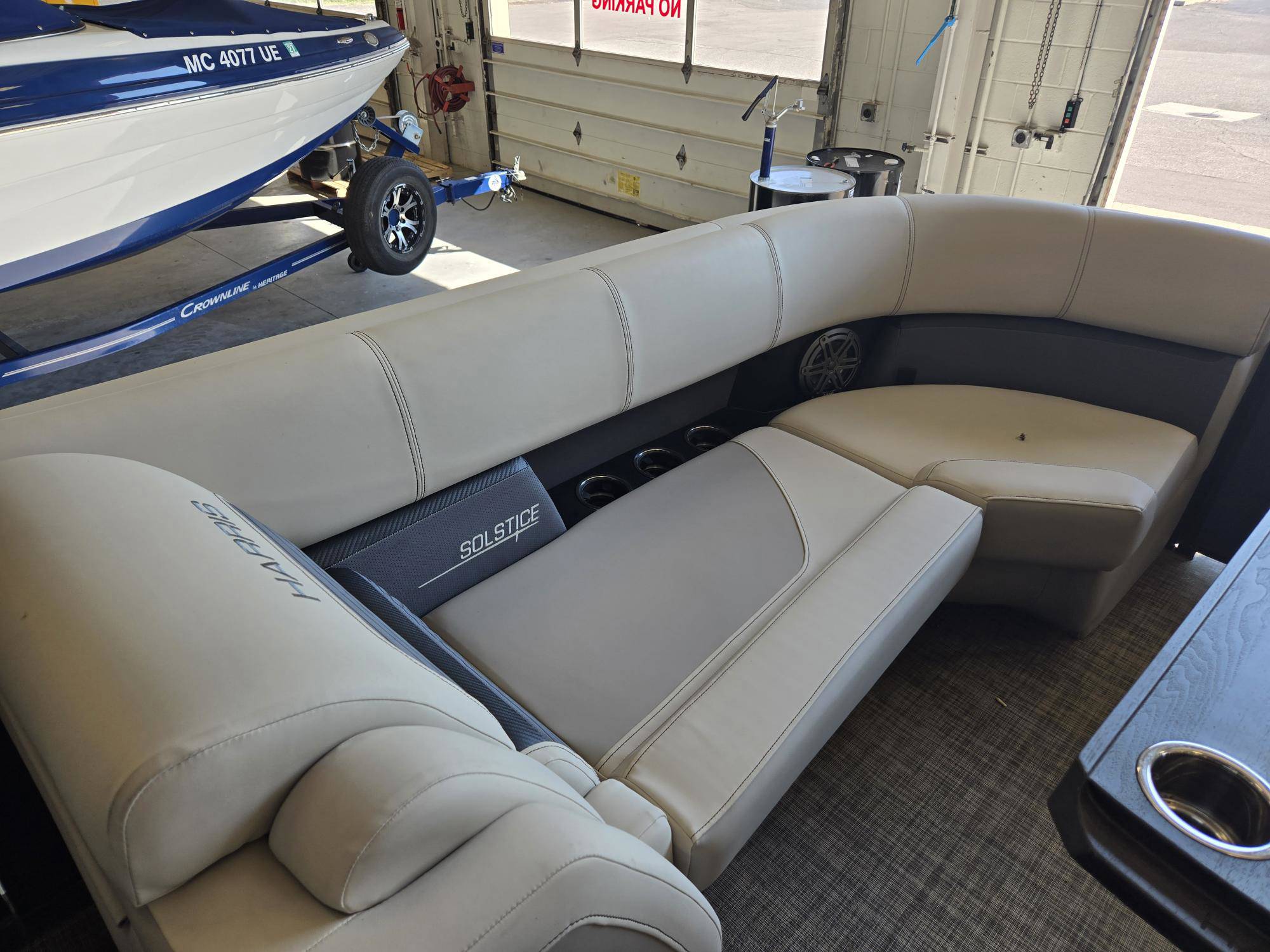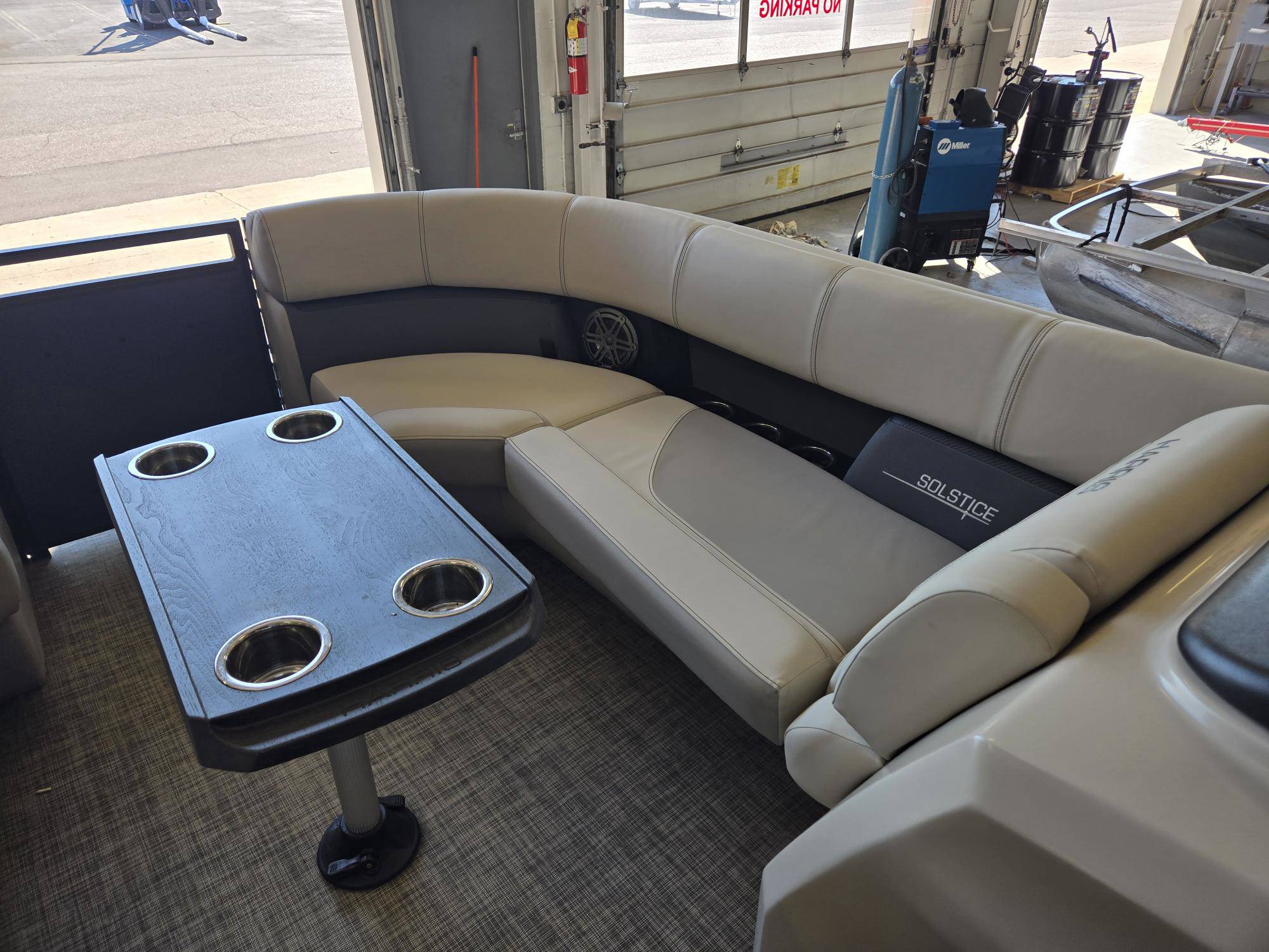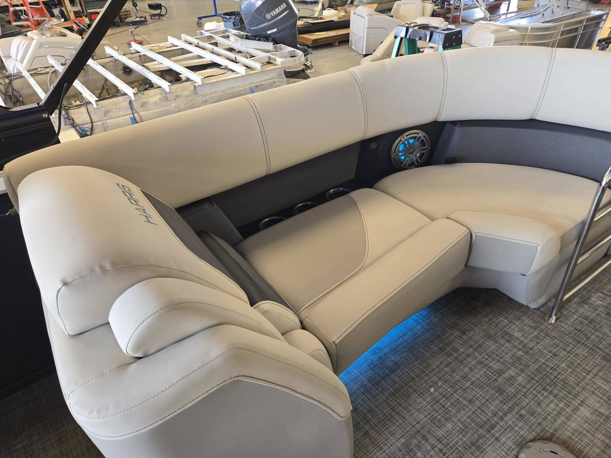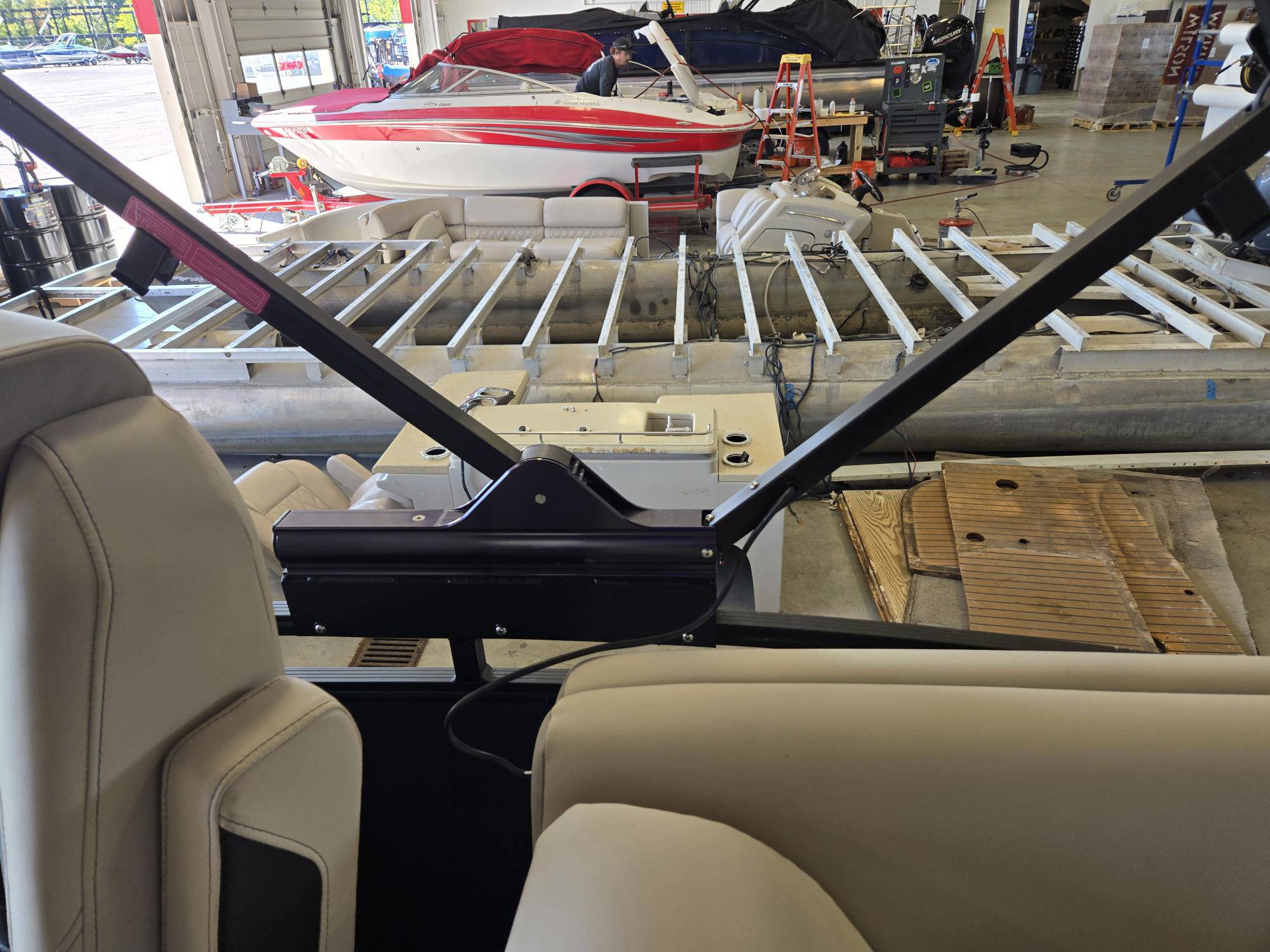 Clean and inspected with ultra low hours!Center Walk Through with Dual Helm chairsThis pontoon comes powered by a Mercury 115hp Pro XS Four StrokeUpgrades from factory include: Interior lighting package, Simrad GO9, and Electric power bimini topFor additional information call us today at 800-875-2620 and select the location nearest you