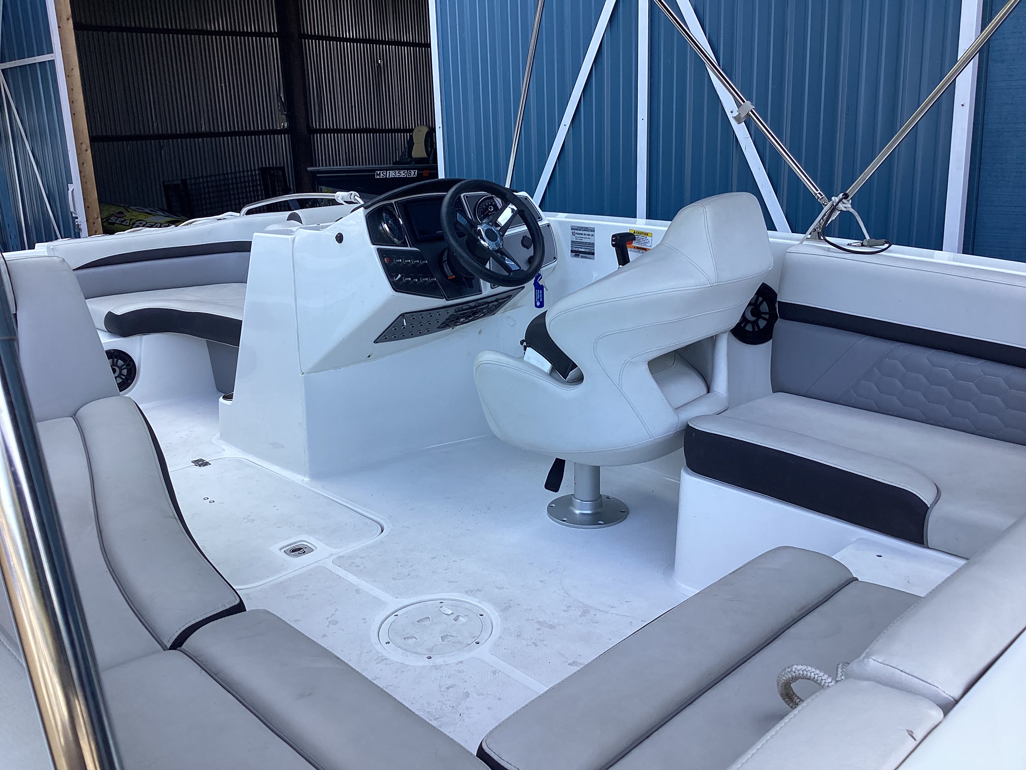 This boat proudly served in the marina’s rental fleet for a few summers, and has been well maintained by our award winning service department. While it may have more hours on it than other boats its age, there’s plenty of good times on the water to be had – think of it as buying a durable car at 25,000 miles. Furthermore, in addition to several years remaining on the Yamaha motor warranty, the sale price includes a bow-to-stern extended warranty package, and the boat fully qualifies for financing options, enabling boaters to get on the water at a low monthly payment. Some customers use this turnkey opportunity as a worry-free way to get on the water with lower costs, or get more boat for the money.