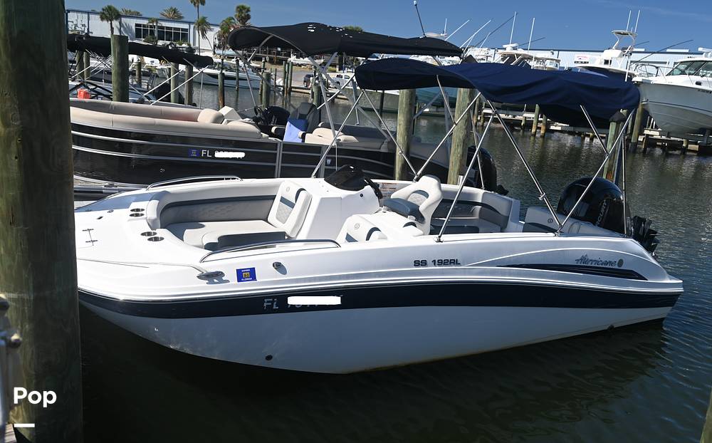 This 2023 Hurricane SS 192 RL is turn-key and ready for fun in the Sun! There is plenty of room for family and friends. The boat seats up to 10 adults. It is powered by a Mercury 150XL four-stroke outboard engine, which provides plenty of power for family watersports. Mercury outboard under warranty until 12-5-2025.