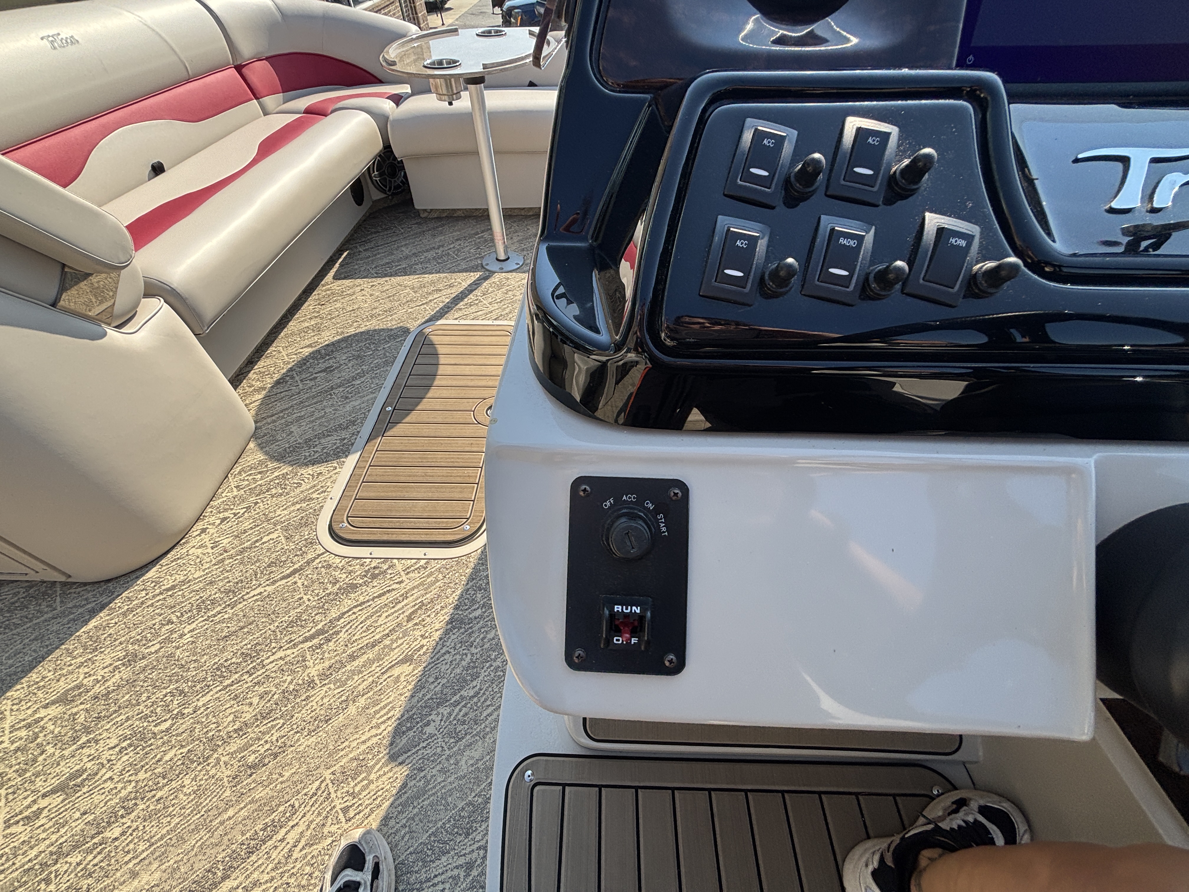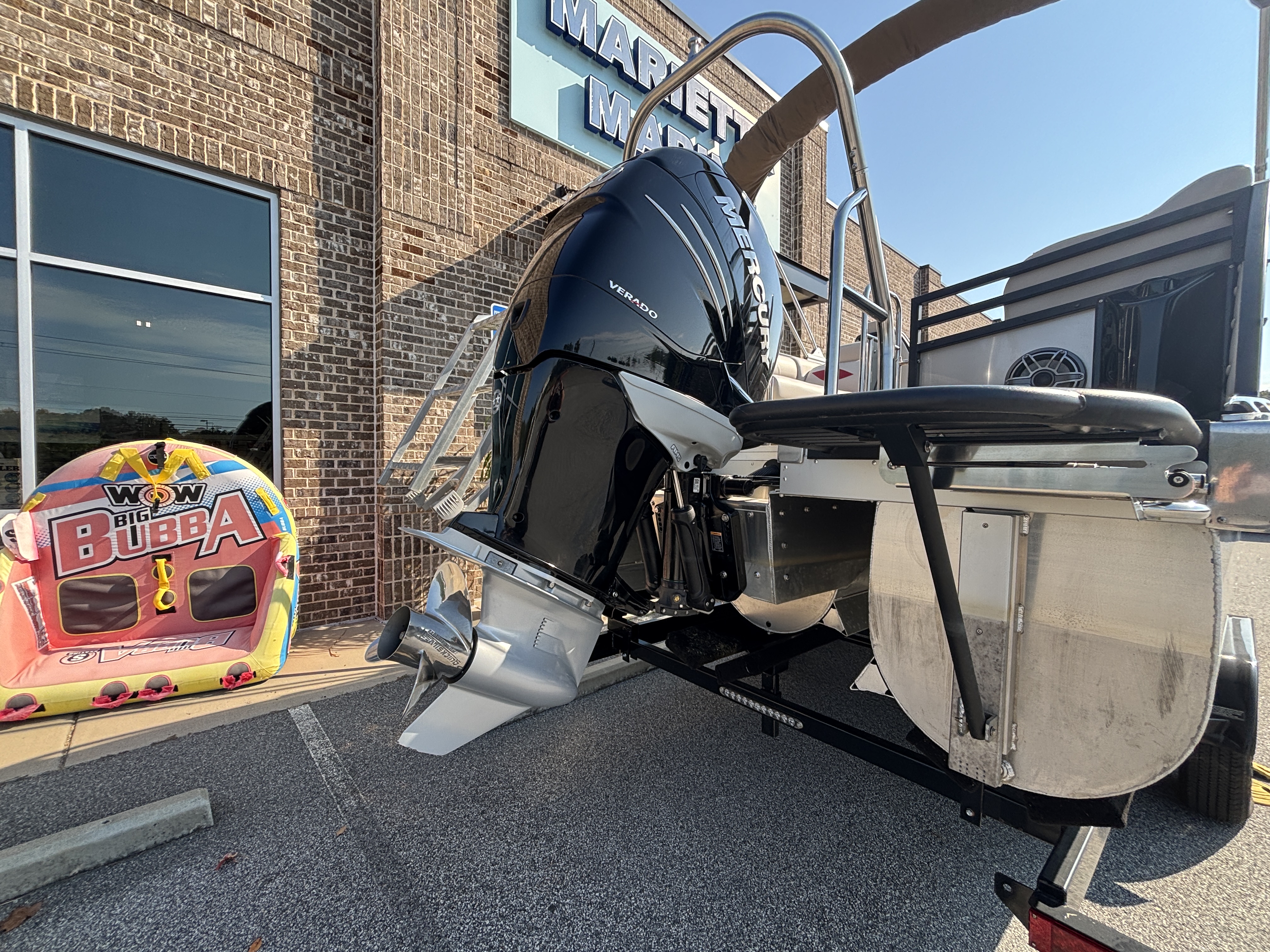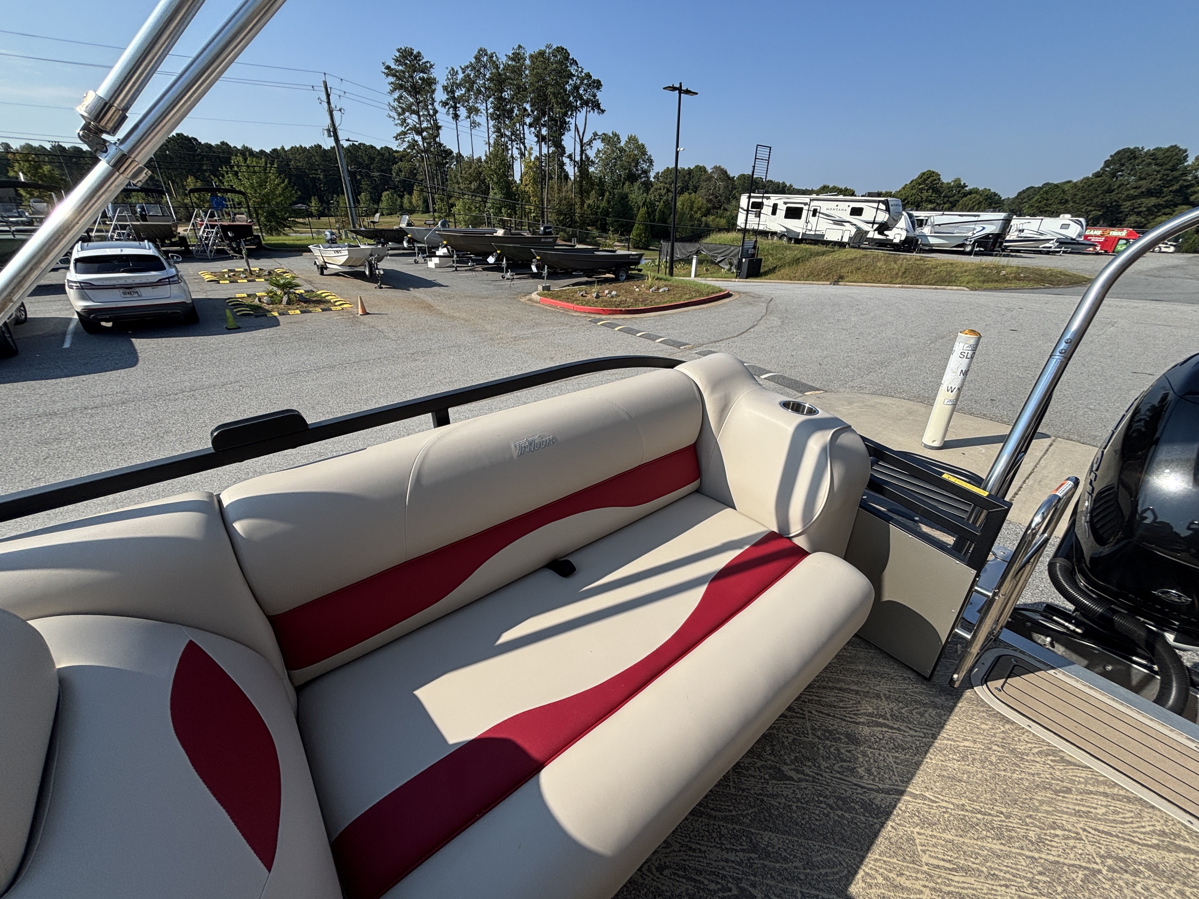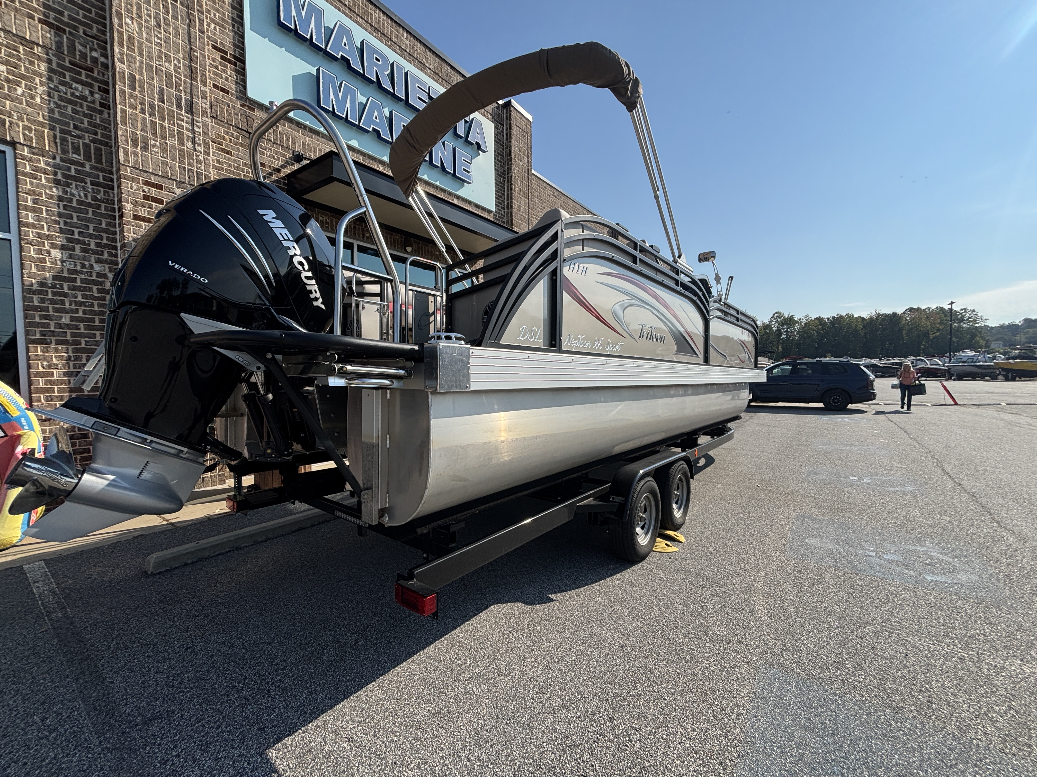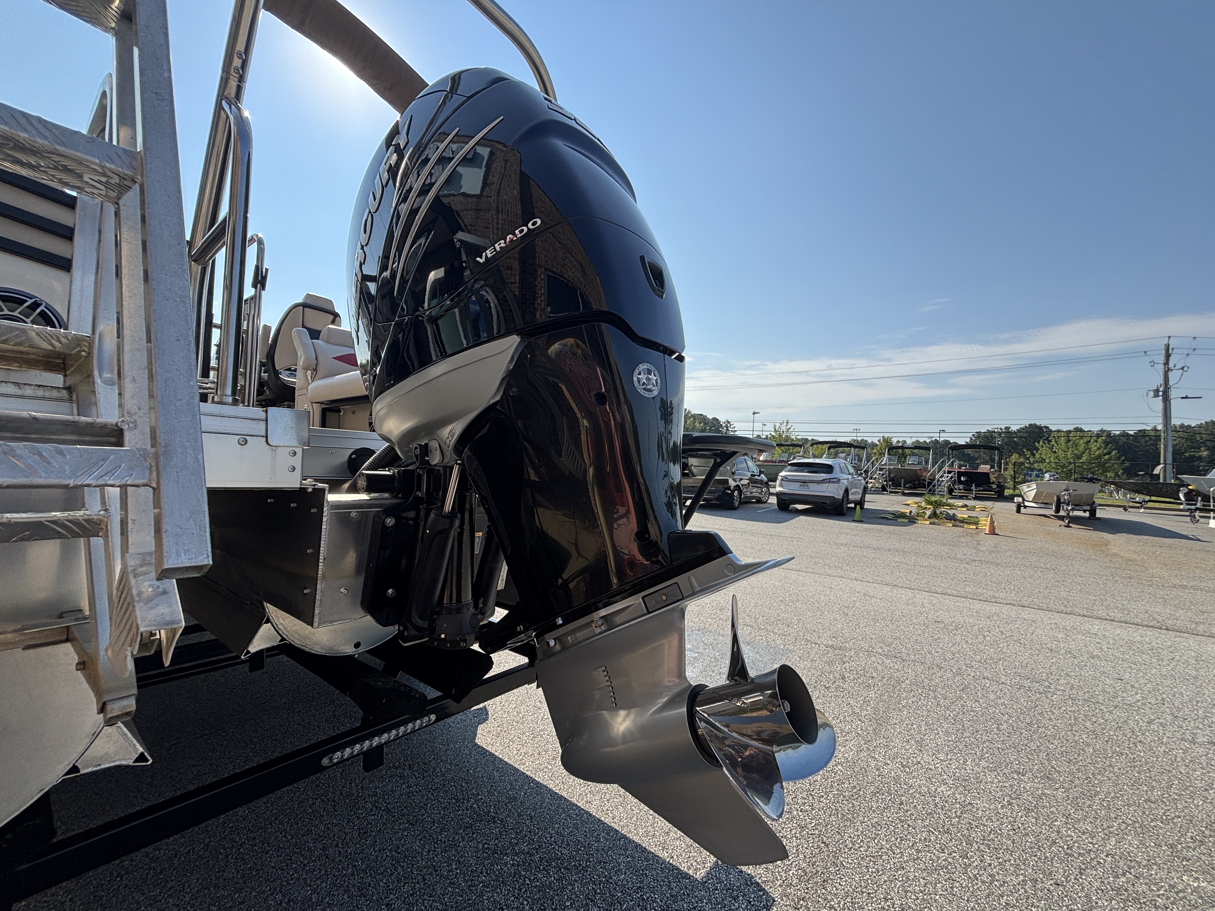 ~25' TriToon Sport High Tide Hull Dual Stern Lounge w/Mercury Verado 350 w/Hydraulic Steering, Power Assist and Lifting Fins