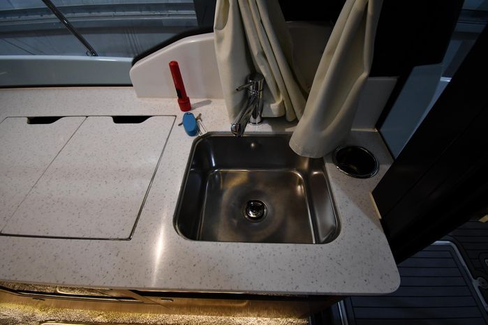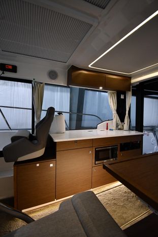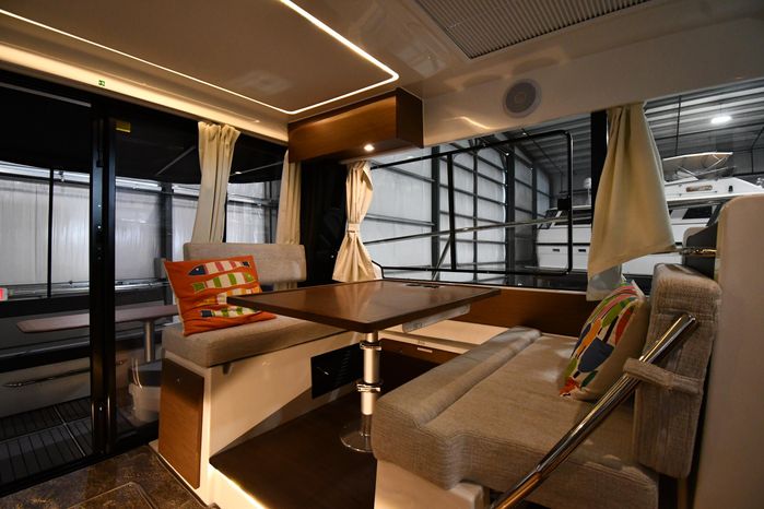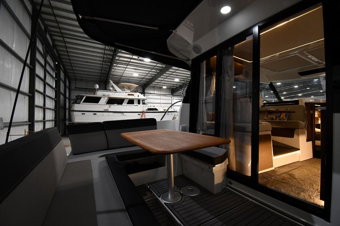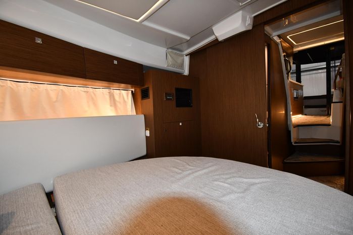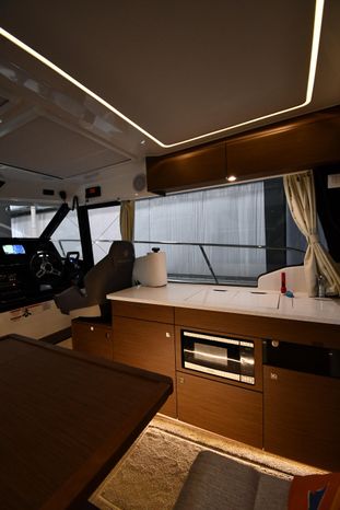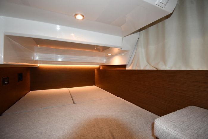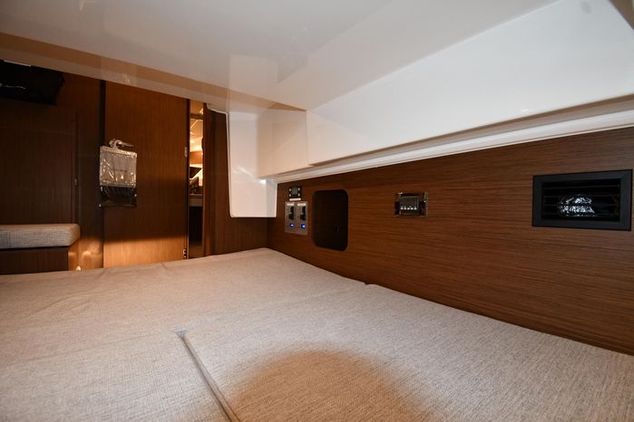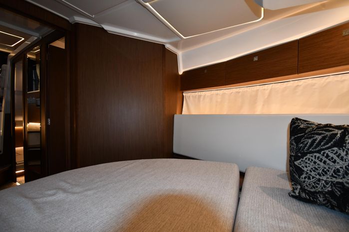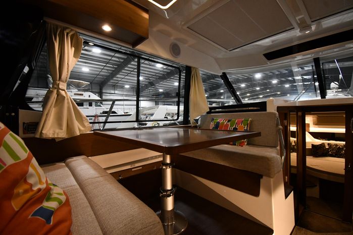This 2023 Jeanneau NC 1095 features large windows in the hull, and a generous owner's forward stateroom which is equipped with voluminous storage. The huge saloon converts in just a few seconds into an additional double berth. The practical galley features a burner and a sink with a countertop, enabling you to enjoy dining in comfort on board with expansive views. From the bright, well-ventilated wheelhouse, you are just a few steps away from the vast cockpit saloon aft, and the promise of exceptional moments in dream locations. And in the aft cockpit, there's a handsome teak table that can be stowed when under way.