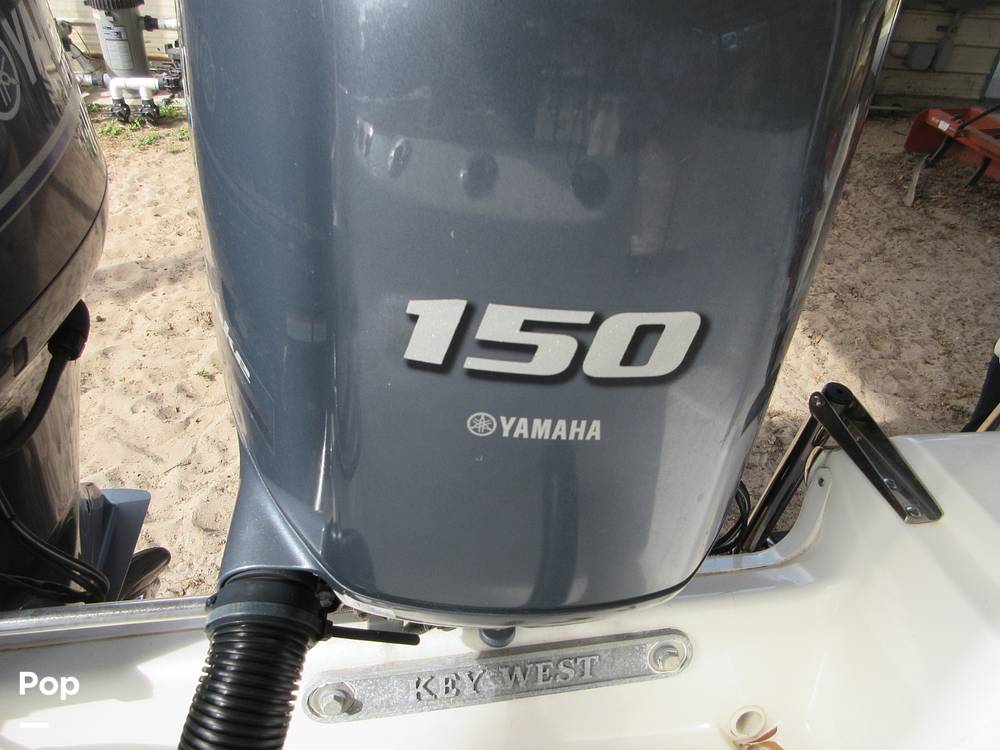 2023 Key West 244 CC (Center Console) is a 24'4" offshore fishing boat with a stepped hull, designed for stability. Powered by twin Yamaha150 hp four-stroke outboards. Also has a three-battery trolling motor that has a remote for stationary control as a power pole. And a Mini Kota battery charging system.