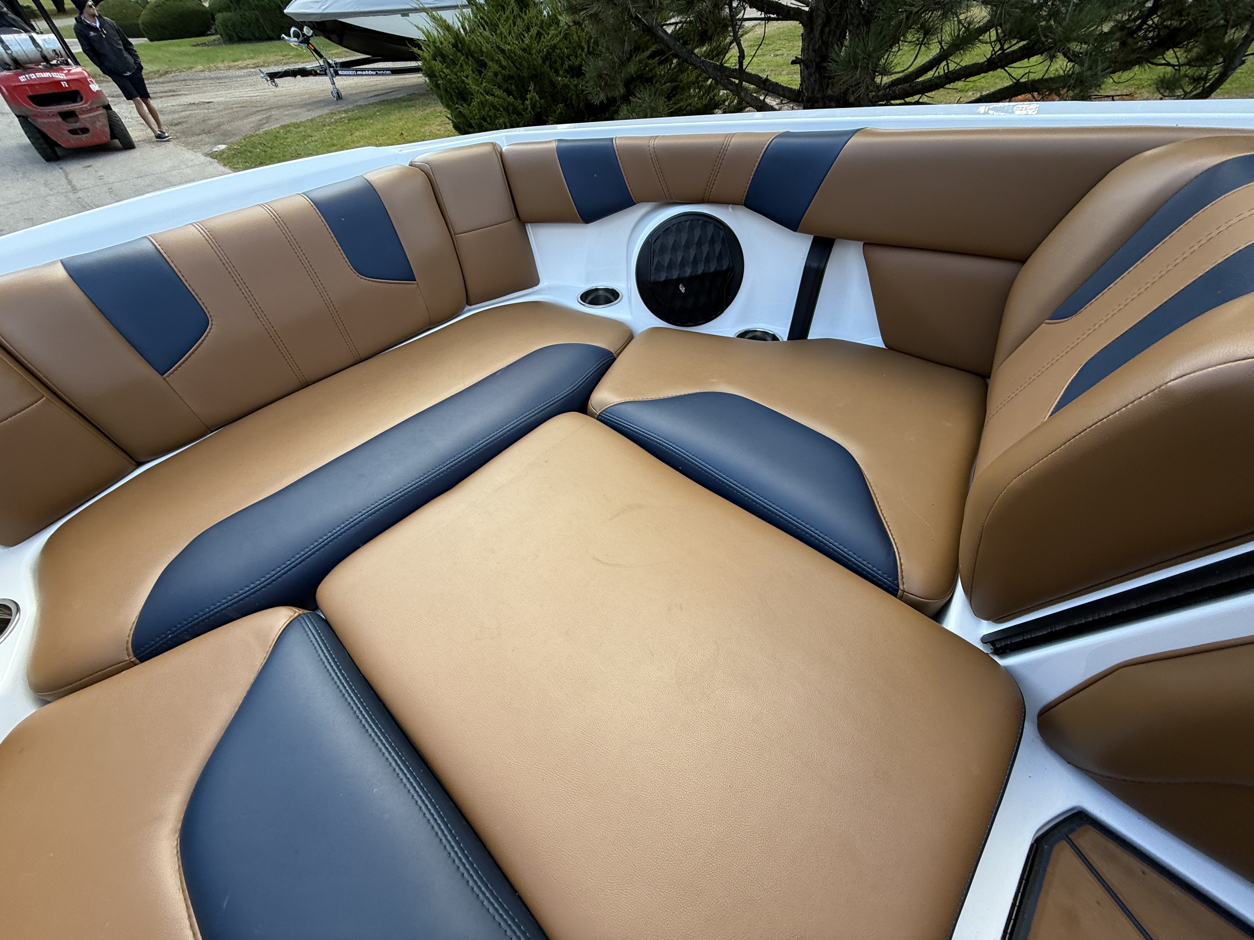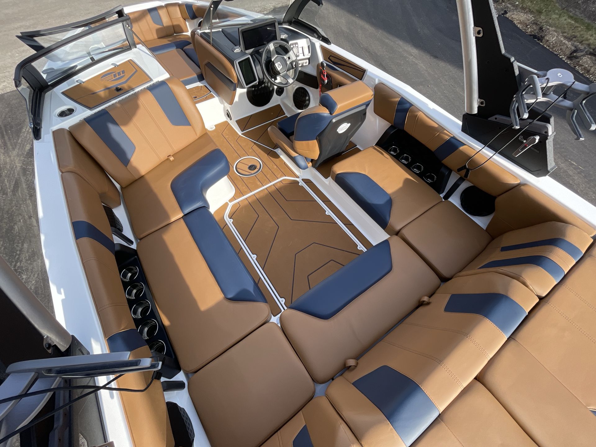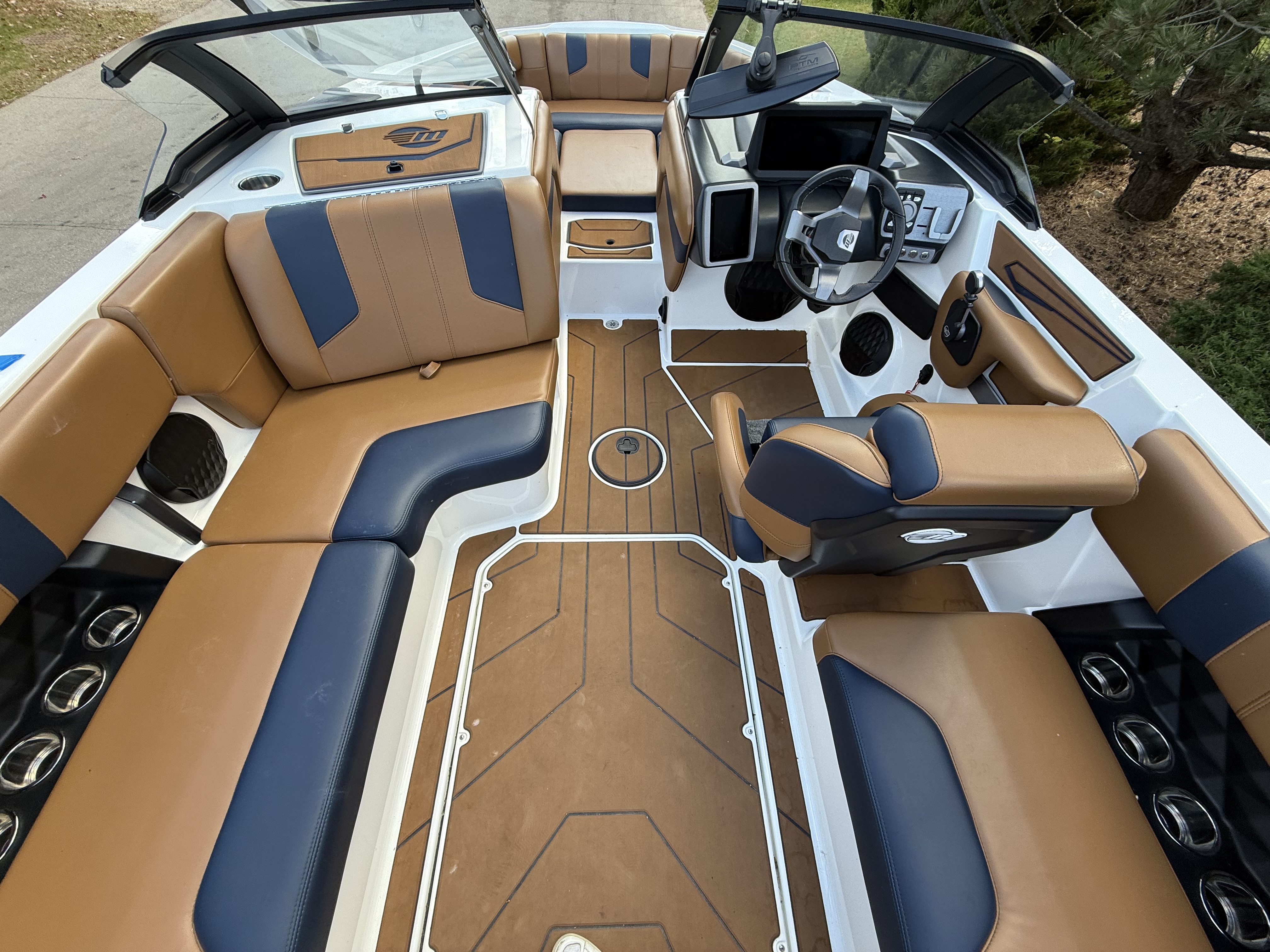 Introducing the ultimate water sports machine - the 2023 Malibu 21 LX with M5Di engine and tandem axle trailer! This stunning boat is a true masterpiece of design, boasting a beautiful zephyr blue and white exterior with a luxurious Sephia interior that will turn heads wherever you go.