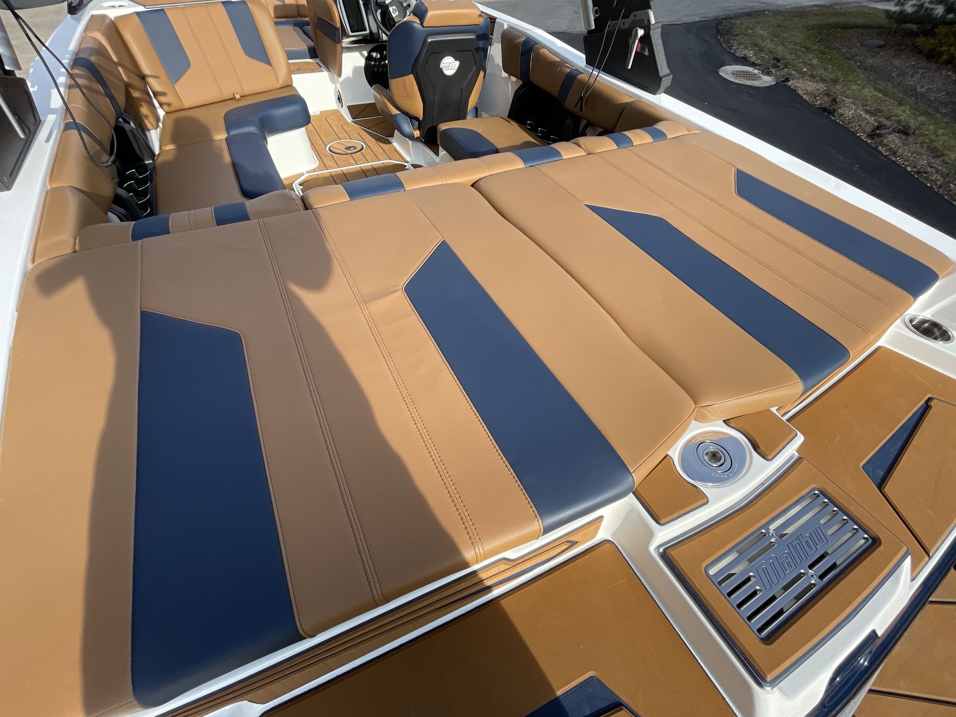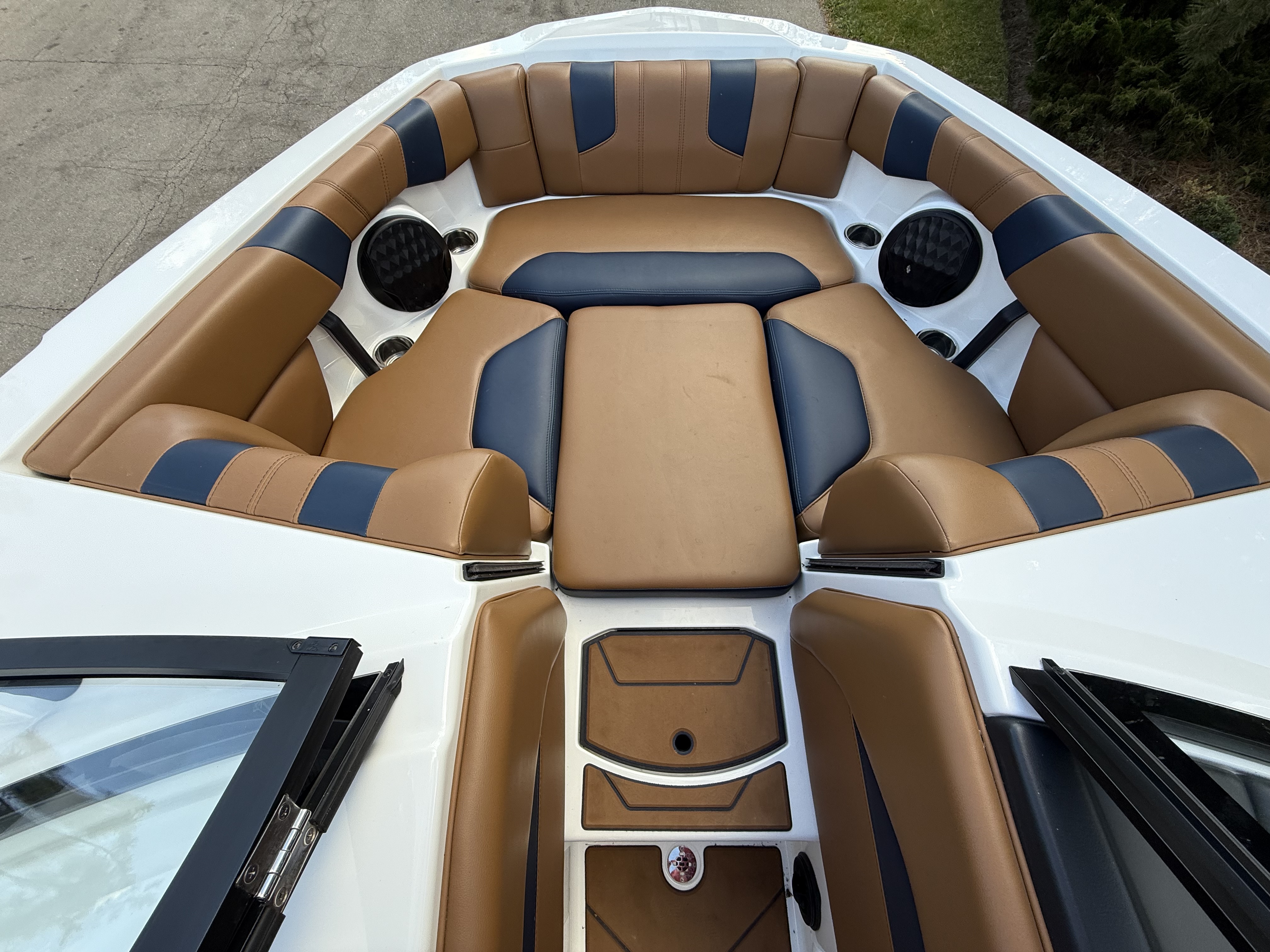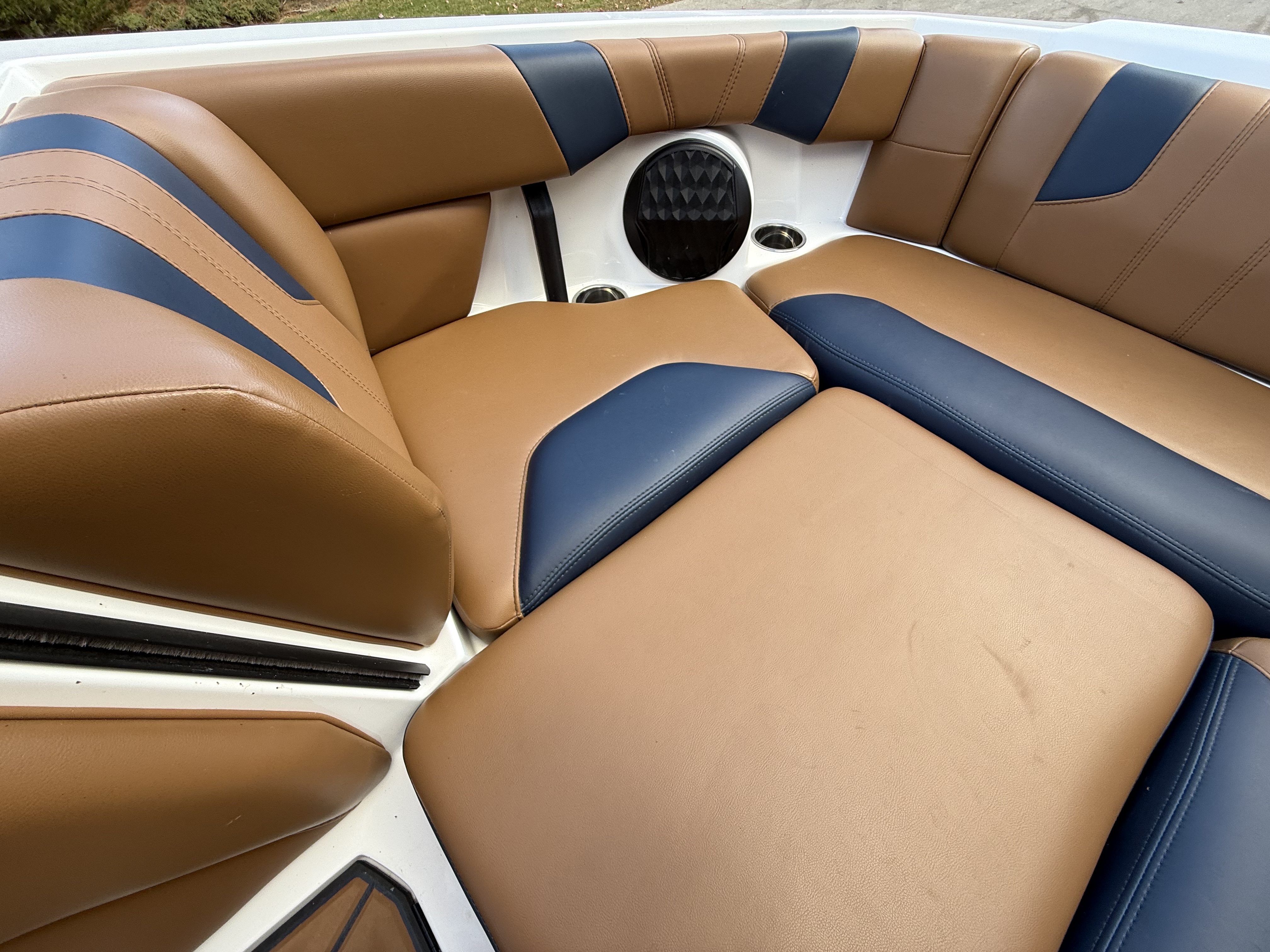 Introducing the ultimate water sports machine - the 2023 Malibu 21 LX with M5Di engine and tandem axle trailer! This stunning boat is a true masterpiece of design, boasting a beautiful zephyr blue and white exterior with a luxurious Sephia interior that will turn heads wherever you go.