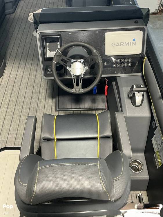 This versatility extends to the Trifold bench, which effortlessly converts from a plush seat to a face-to-face dinette table in seconds. Inside the helm, you are treated to a high-tech captain's experience with a vivid 9-inch Garmin touchscreen and a premium audio system, all wrapped in a sleek, automotive-inspired fiberglass exterior that turns heads at every dock.