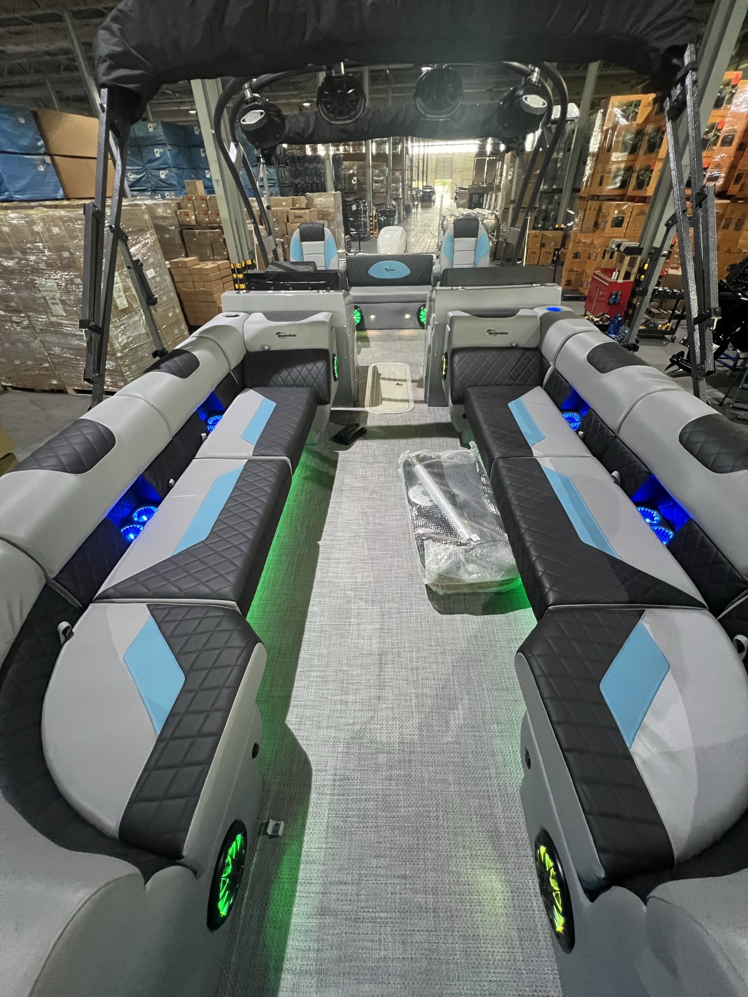 Introducing the NEW 2023 30’ Ultra Lounger! Up to 400HP! In STOCK! 150,250,350,400HP! One of the best sound systems on any tritoon!