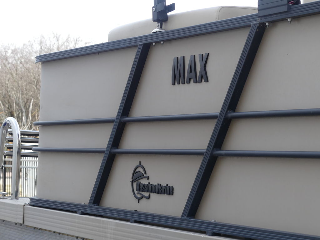 The 2023 Massimo Marine P24 Limited Max is a 24-foot luxury pontoon boat known for blending performance and high-end features, often including a powerful Mercury outboard engine, premium Boss Marine sound system, digital controls, plush seating (like rear loungers), and integrated navigation/fishfinders (Lowrance) for up to 12-14 people, offering a premium, tech-forward experience for cruising, fishing, and watersports.