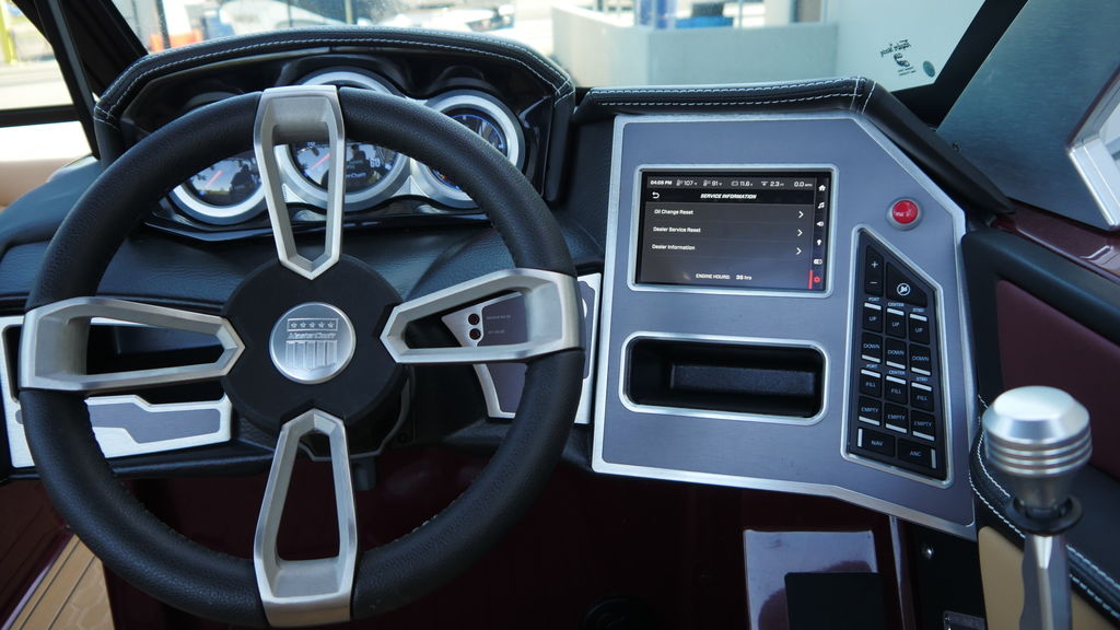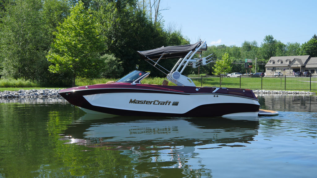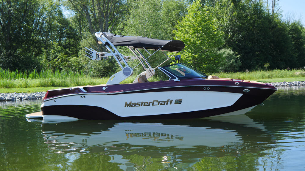 Well equipped with bimini, clamping racks, cool feel vinyl, seadek, Heater, upgraded stereo, 7 inch touch screen, Surfstar, and a matching MasterCraft trailer.