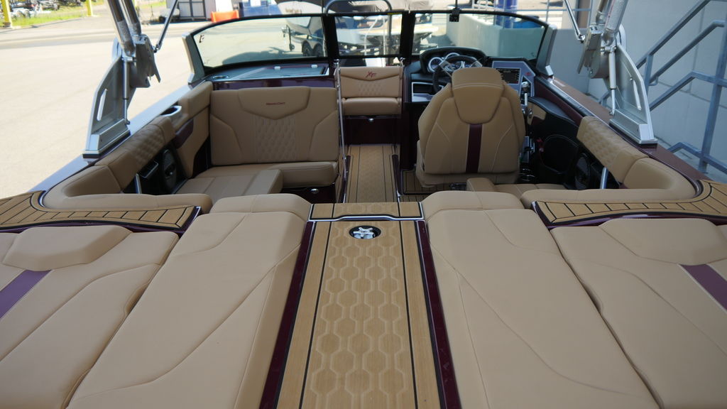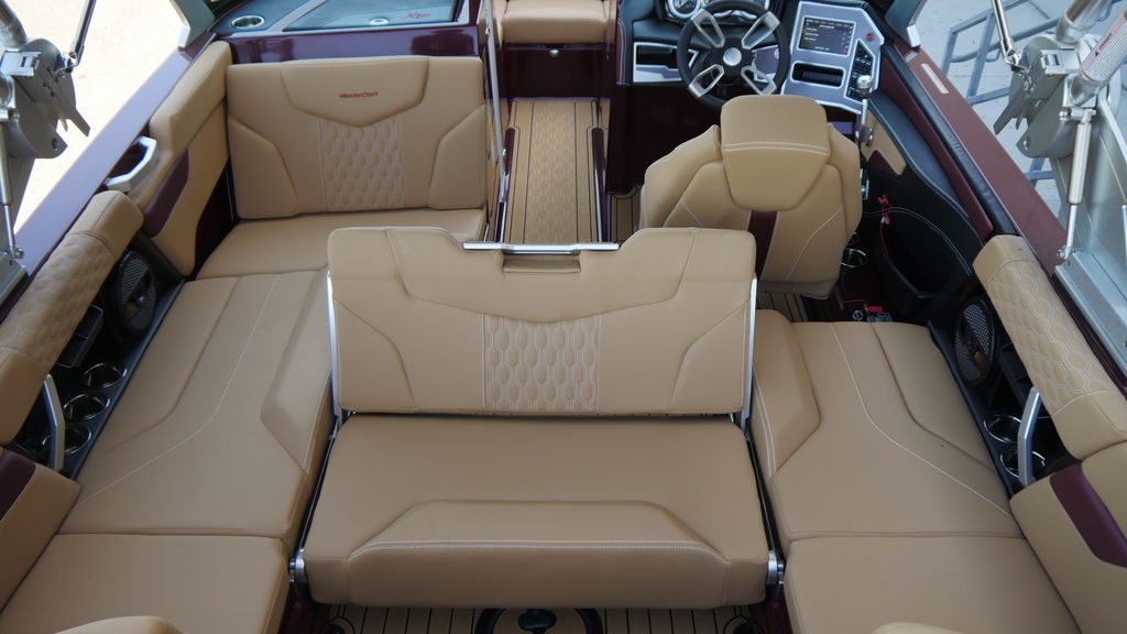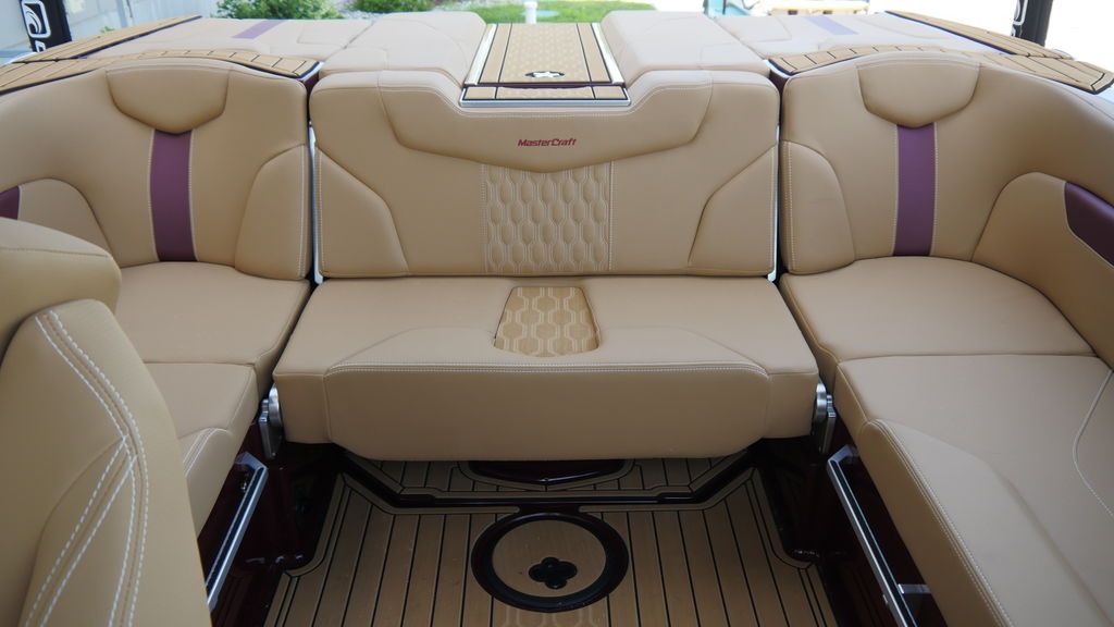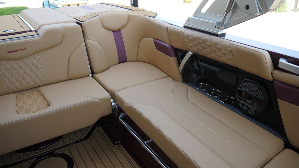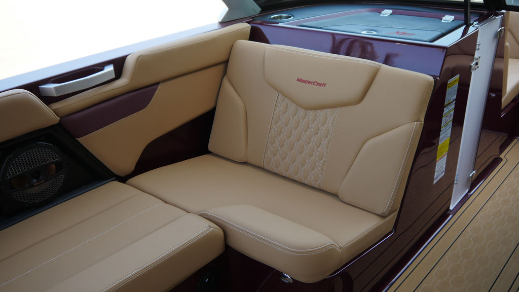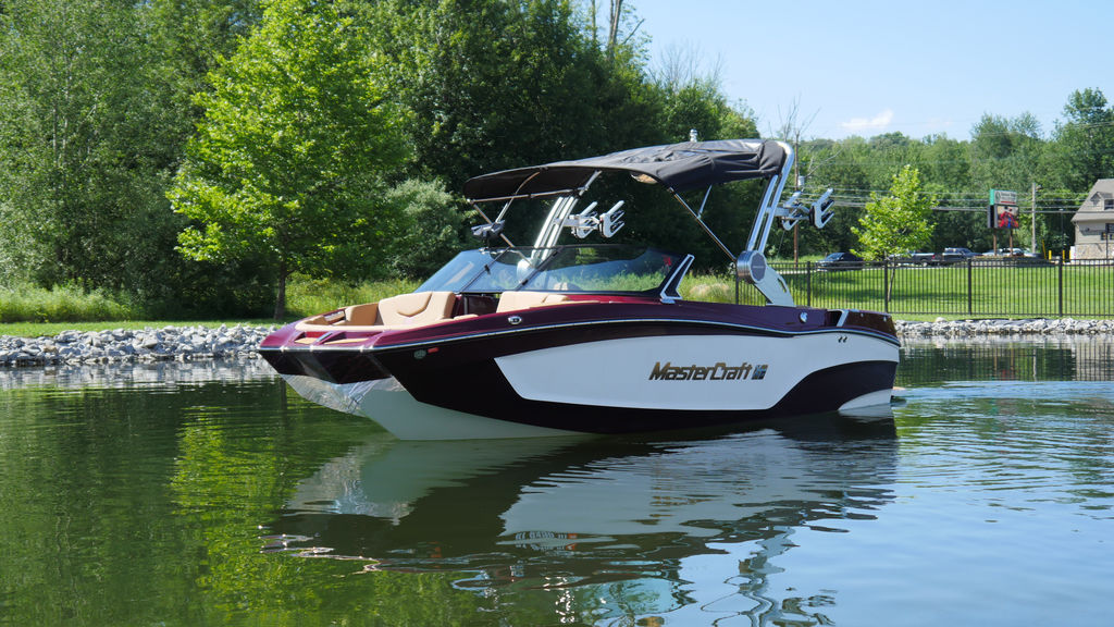This boat has just 35 hours of freshwater use, coming back to us for sale. It's lived on a boat lift on local Culver Lake and was stored indoors during the off season. The engine was just serviced and comes with the MasterCraft warranty, good until 2028.