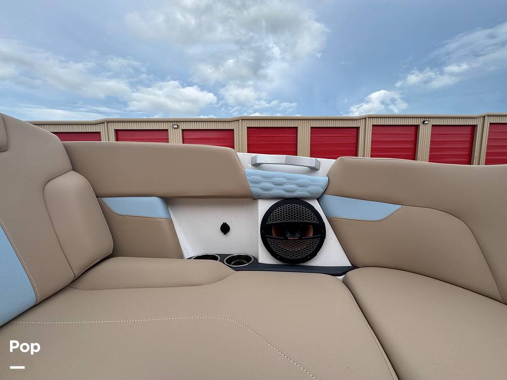 Onboard, it's all about comfort and style. The SeaDek flooring and walkthrough transom make every step a cool breeze, and there's plenty of room for friends with seating for up to 16. Plus, there's a killer stereo system, tower speakers, and even a wireless phone charger to keep the music and energy going all day.