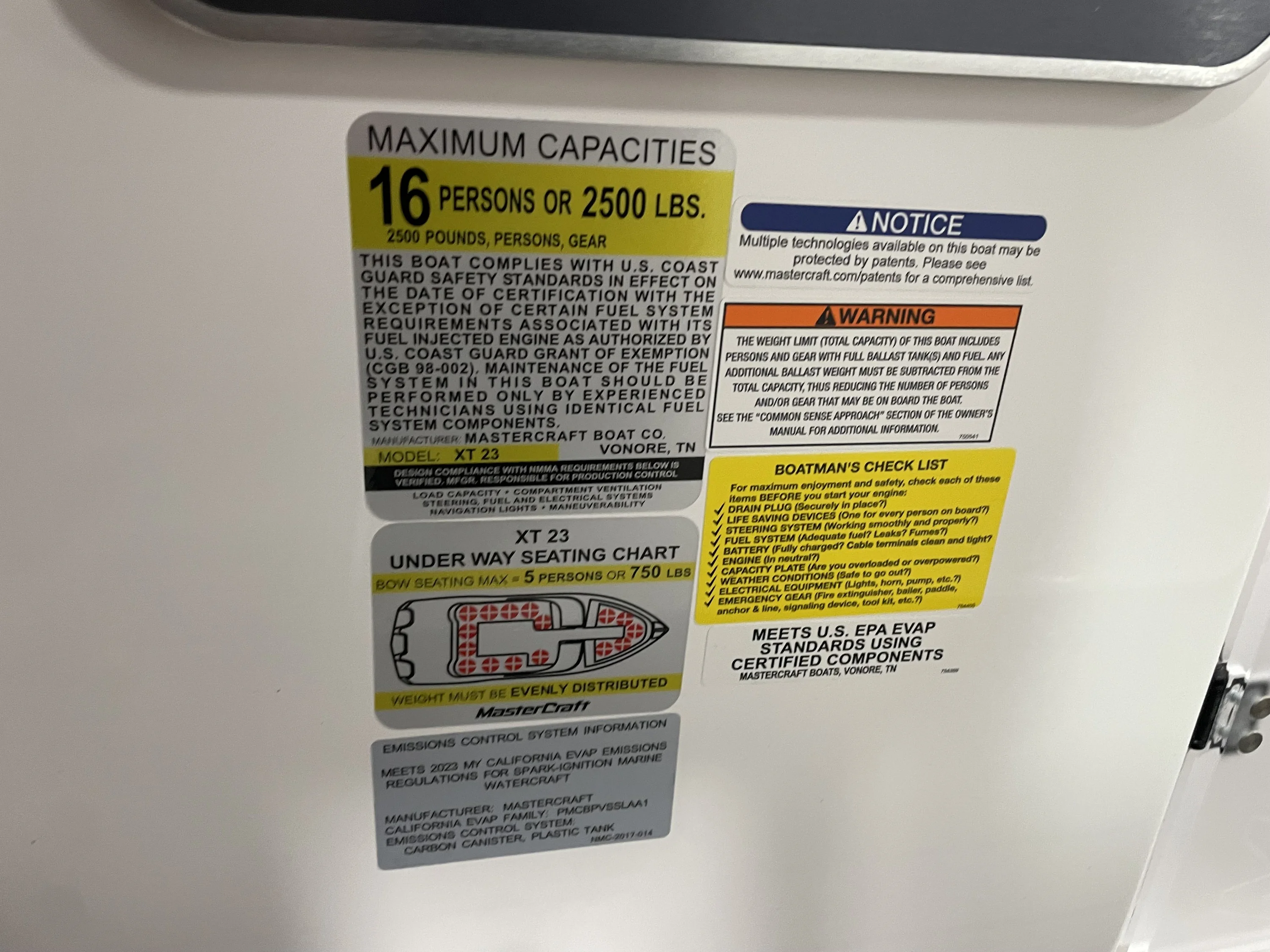 Contact us to findĀ out ALL available savings! All Sale and/or Clearance Prices include all rebates and incentives. Thanks to a unique hull design paired with MasterCraft's integrated SurfStar system, the XT23 leads the industry in the performance of 23-foot models. Beyond your experience behind the boat, you'll find the XT23 is packed with endless options for customization and unwavering reliability. Built with top-quality materials-from the vinyl and cushioning to the ergonomic seat designs-your comfort needs have never been more gracefully met. And feel even more secure knowing smart telematics paired with the MasterCraft Connect app allows you to check on the health of your boat and more. From bow to stern and beyond, this boat offers endless fun for all riders of all sizes and skill levels.